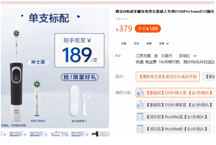 【商品名称】欧乐B D100 电动牙刷 男女款