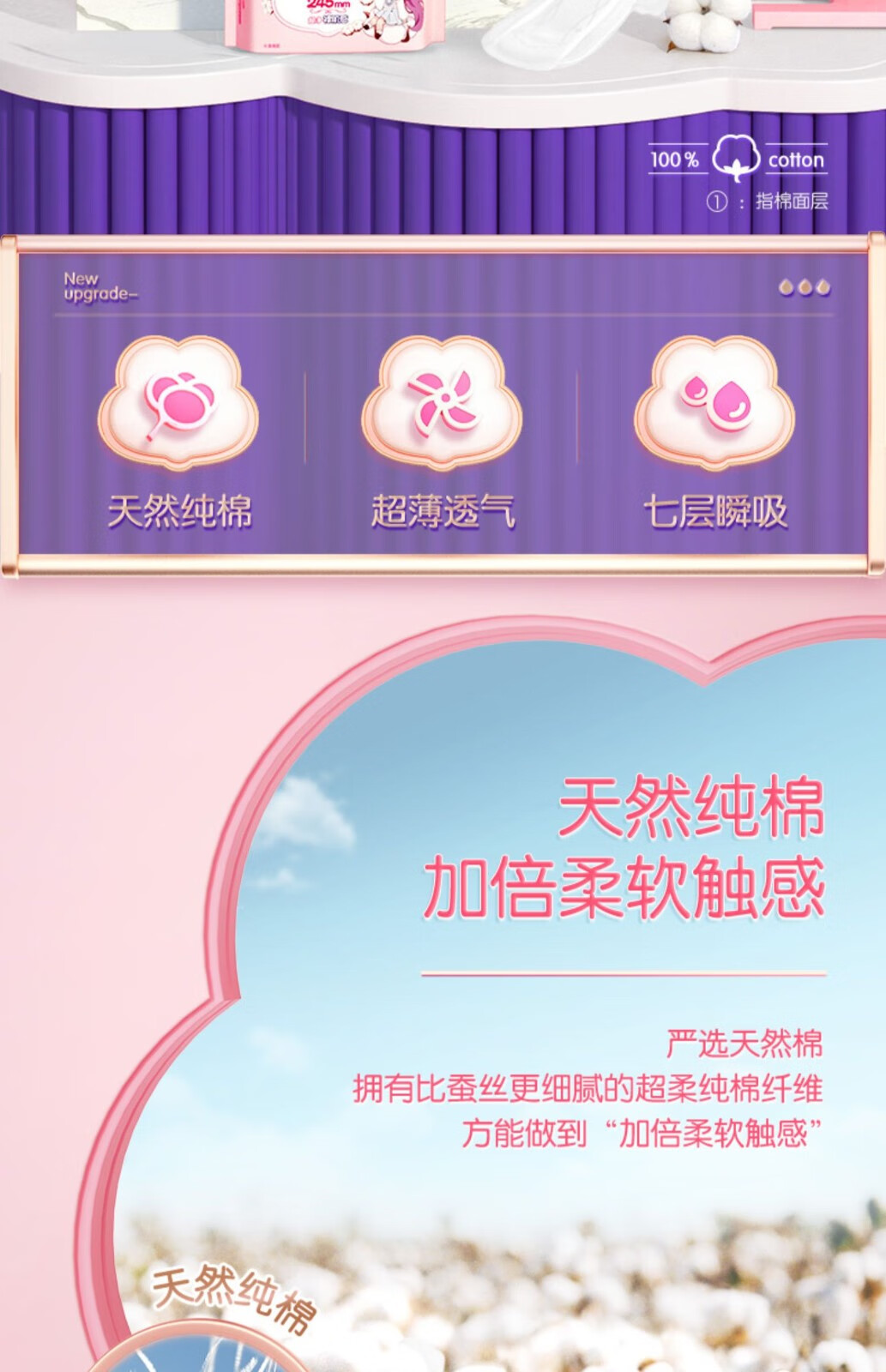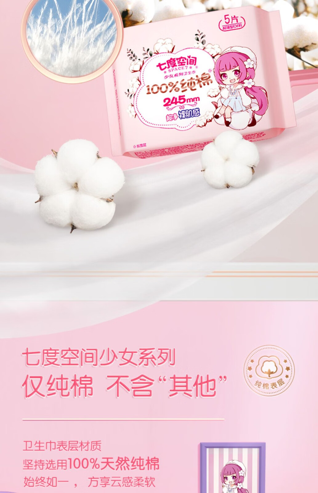 七度空间纯棉超薄245mm日用10片装