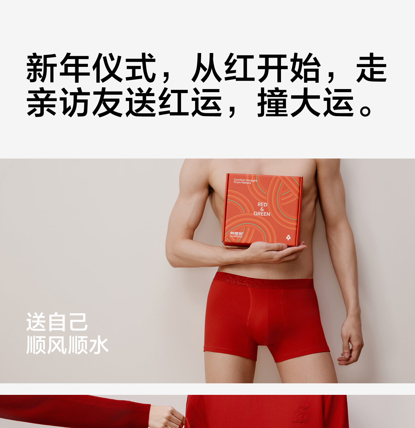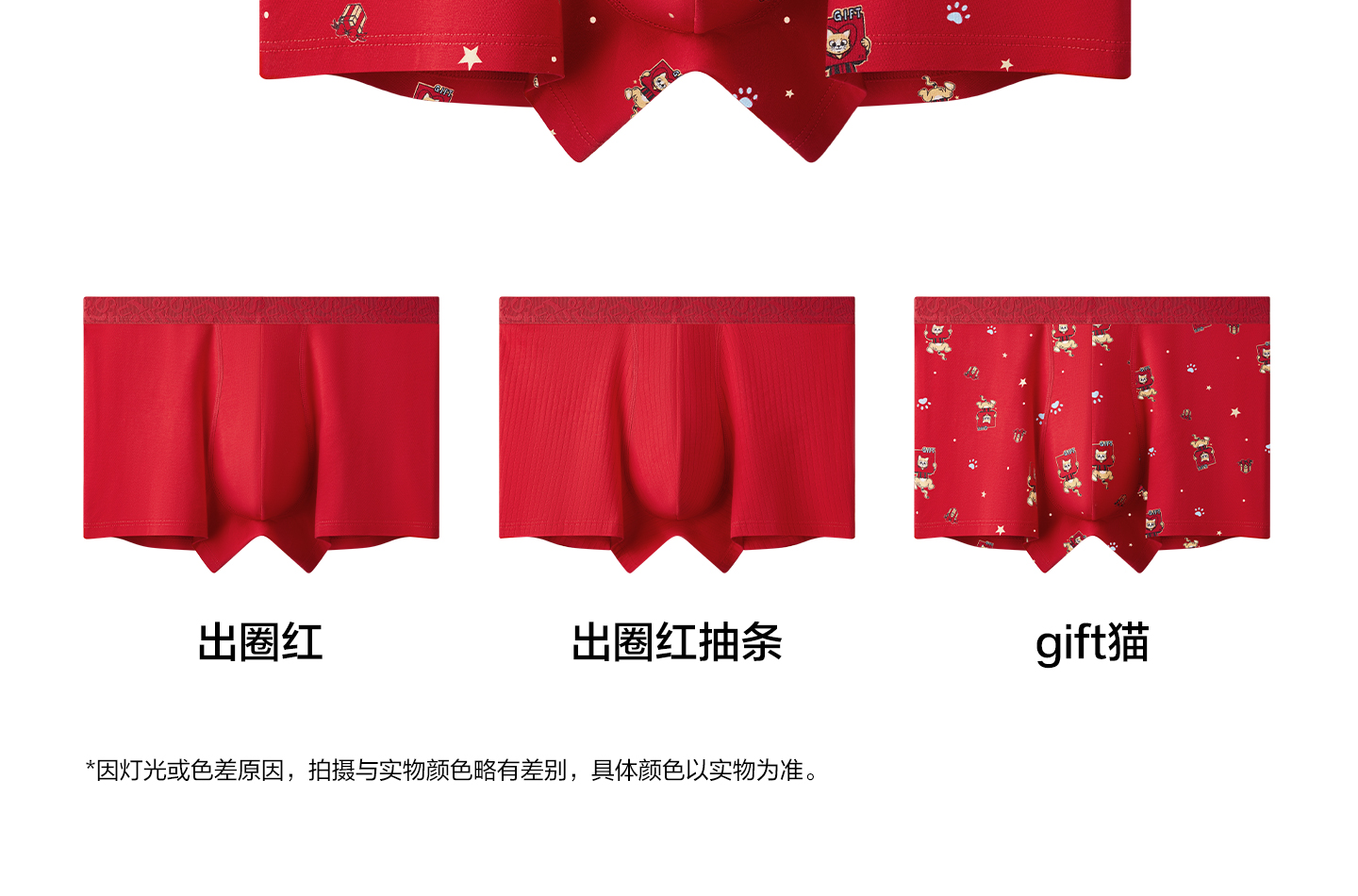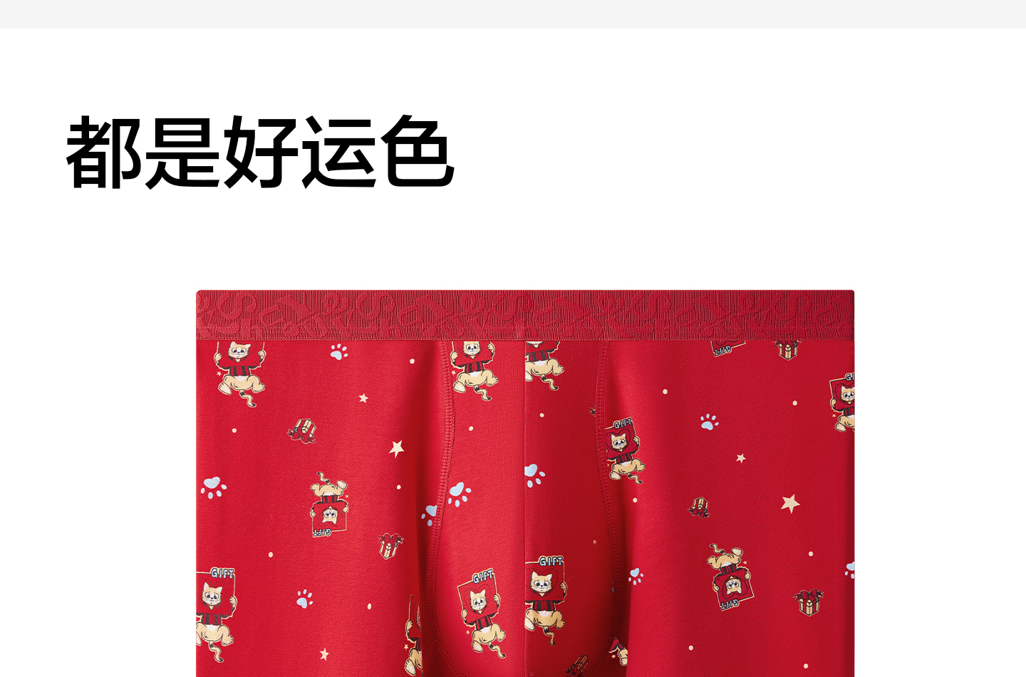 【新品上新】有棵树纯棉透气高档本命年男士红色内裤4条装-U1303