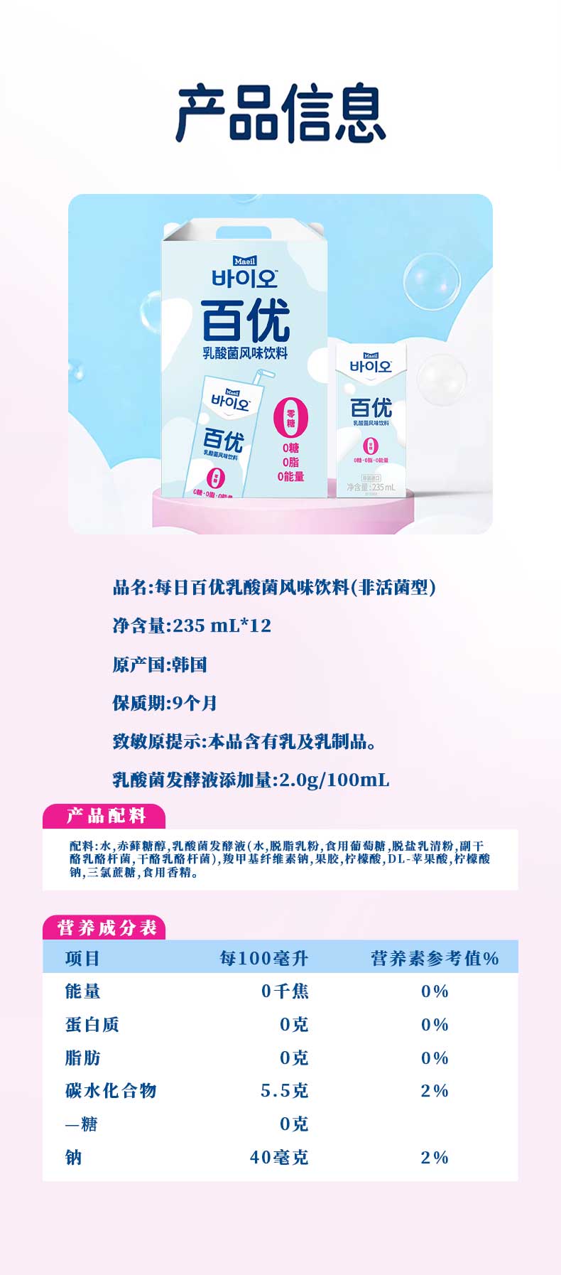 Maeil 每日百优乳酸菌风味饮料(非活菌型) 235ml/盒*12