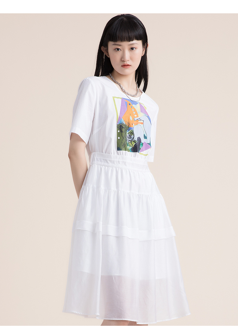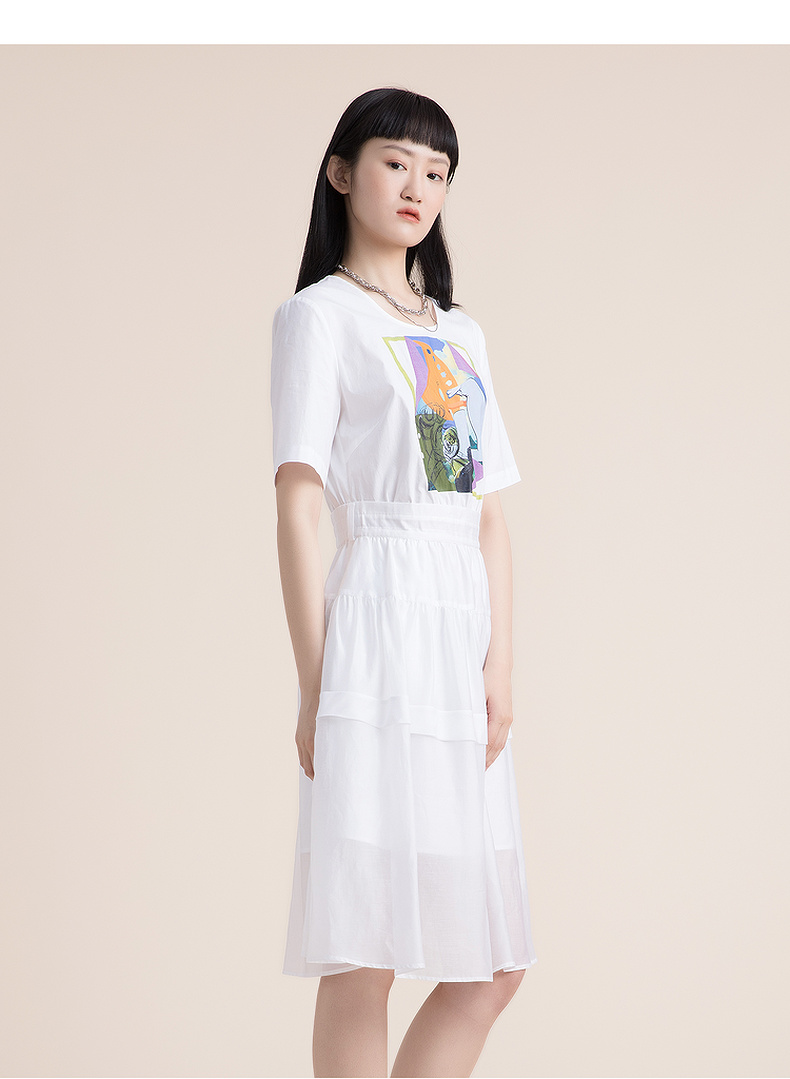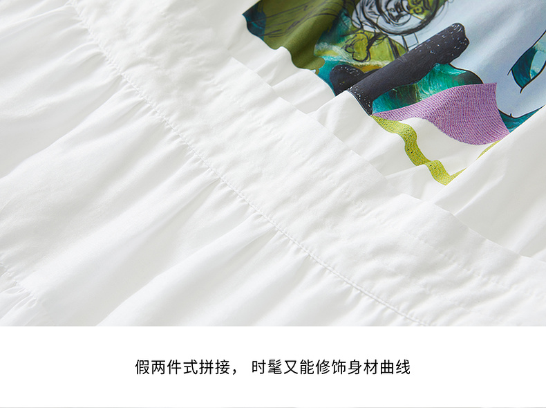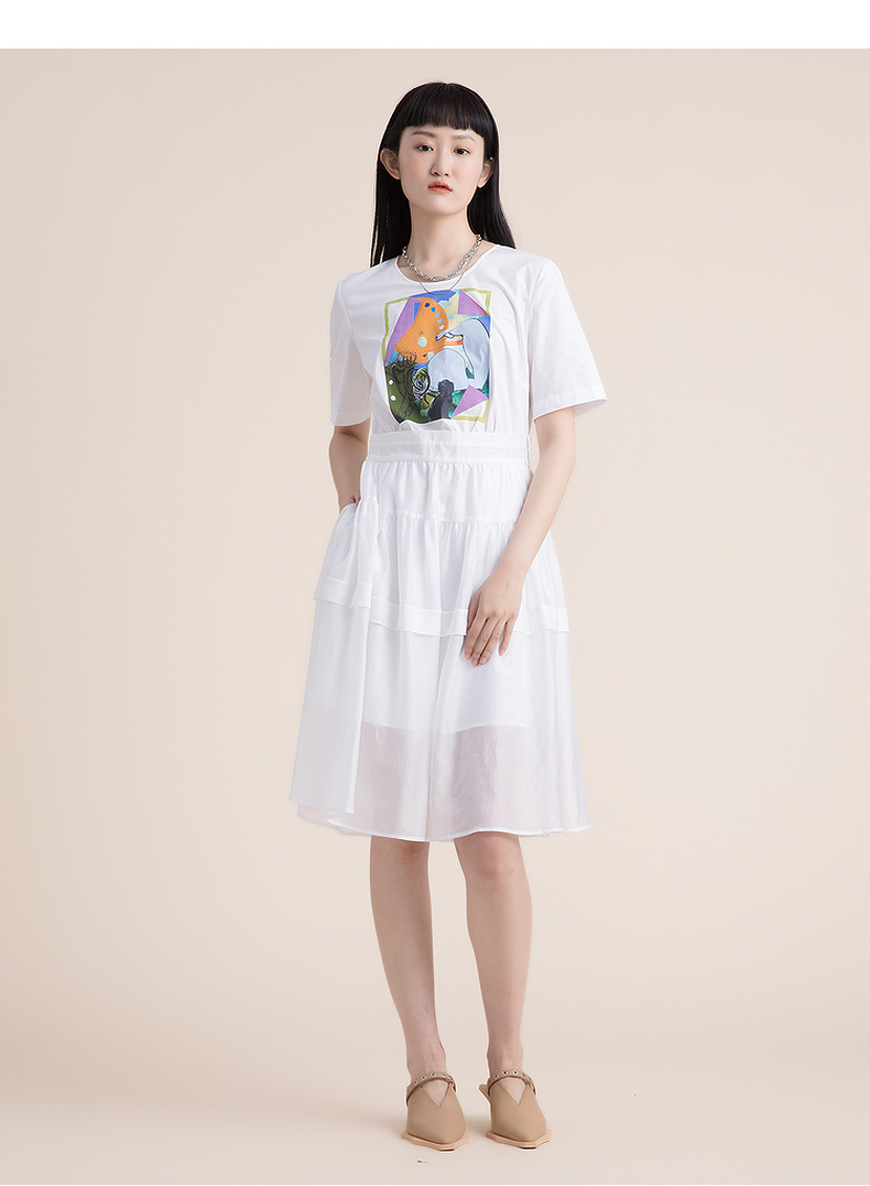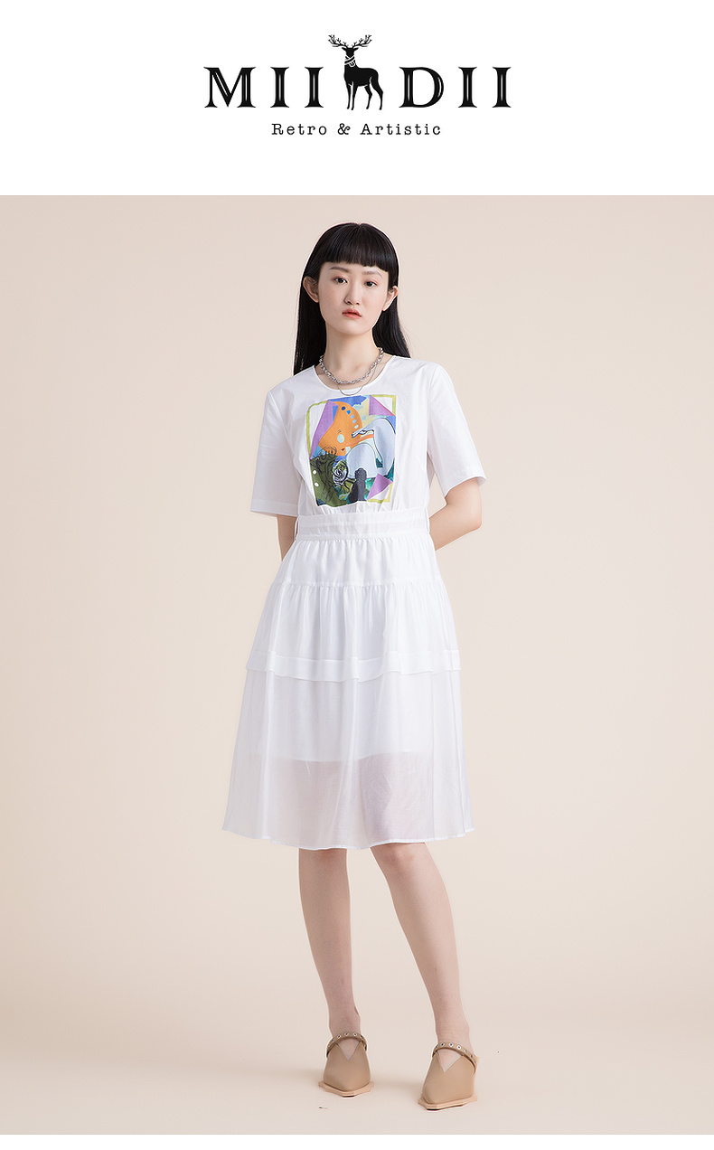 谜底2022夏季新款时髦通勤舒适拼接收腰圆领短袖连衣裙222ML0617