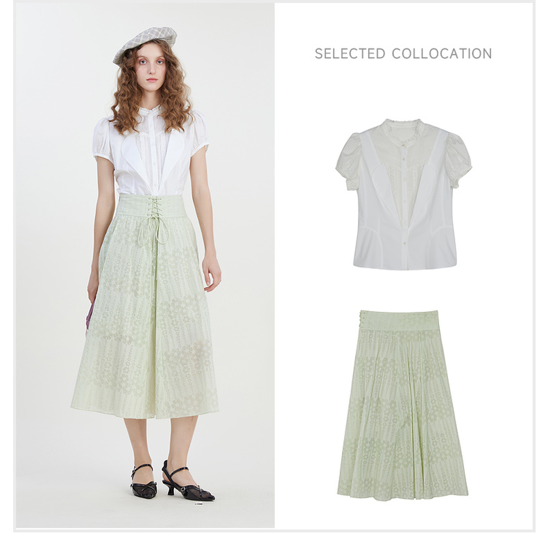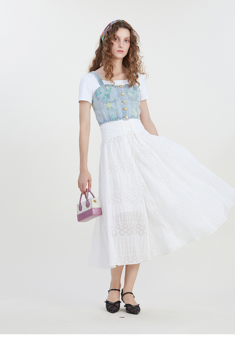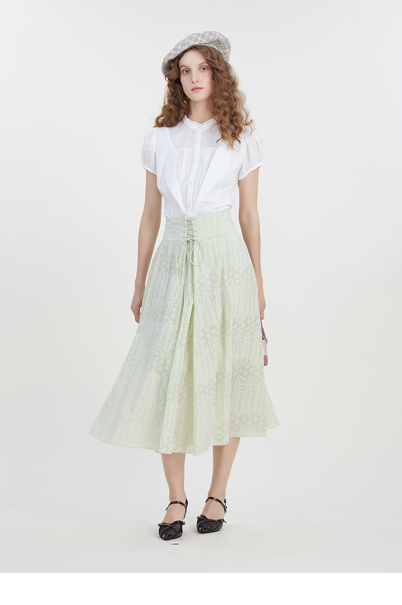 谜底系带半身裙2023夏季新款浪漫提花A型长裙纯棉舒适女232MB0529