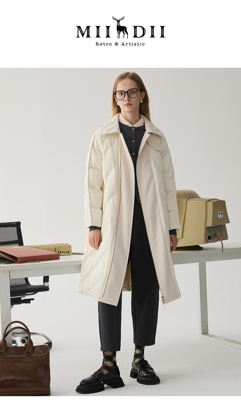 谜底立领大廓形羽绒服女2024冬款时尚气质风衣感鹅绒服244MY1459
