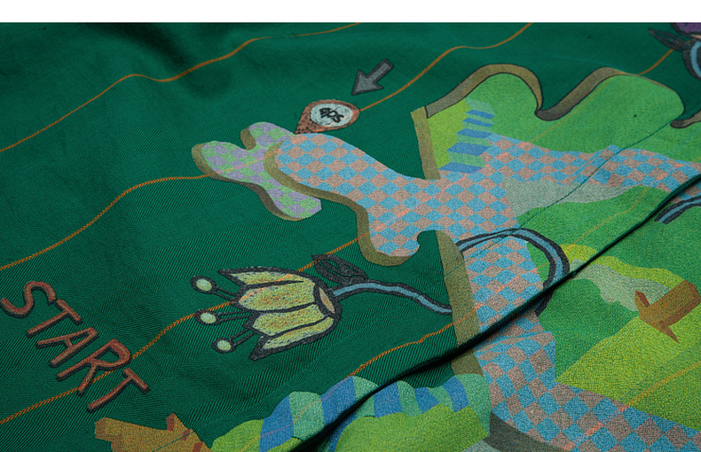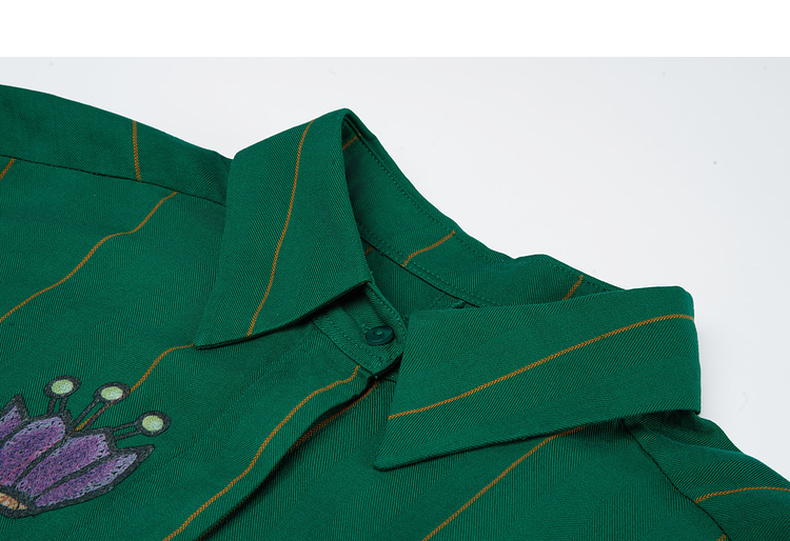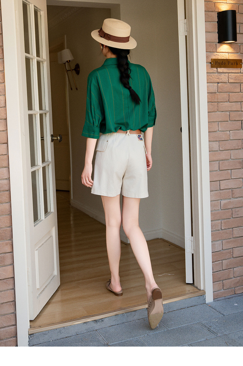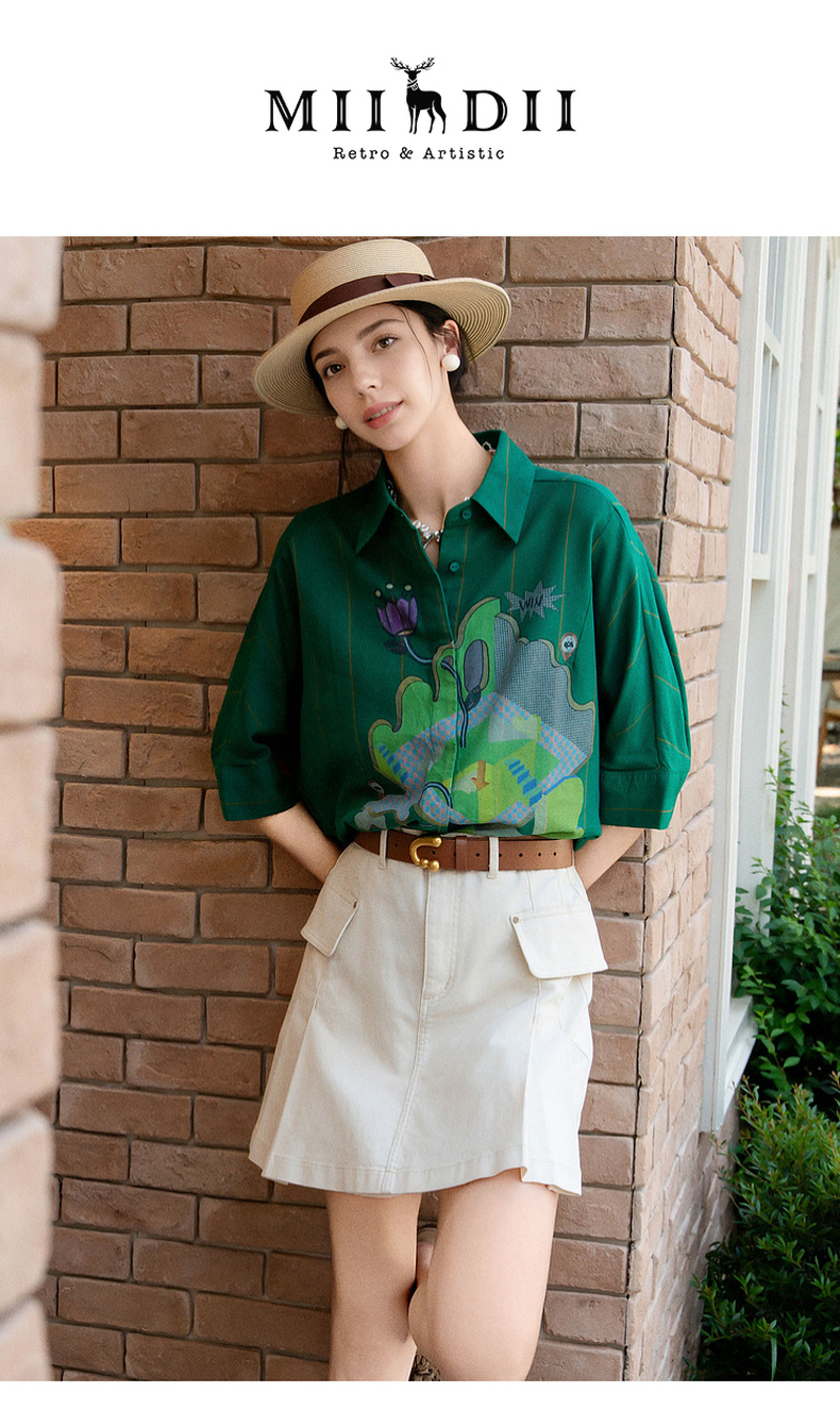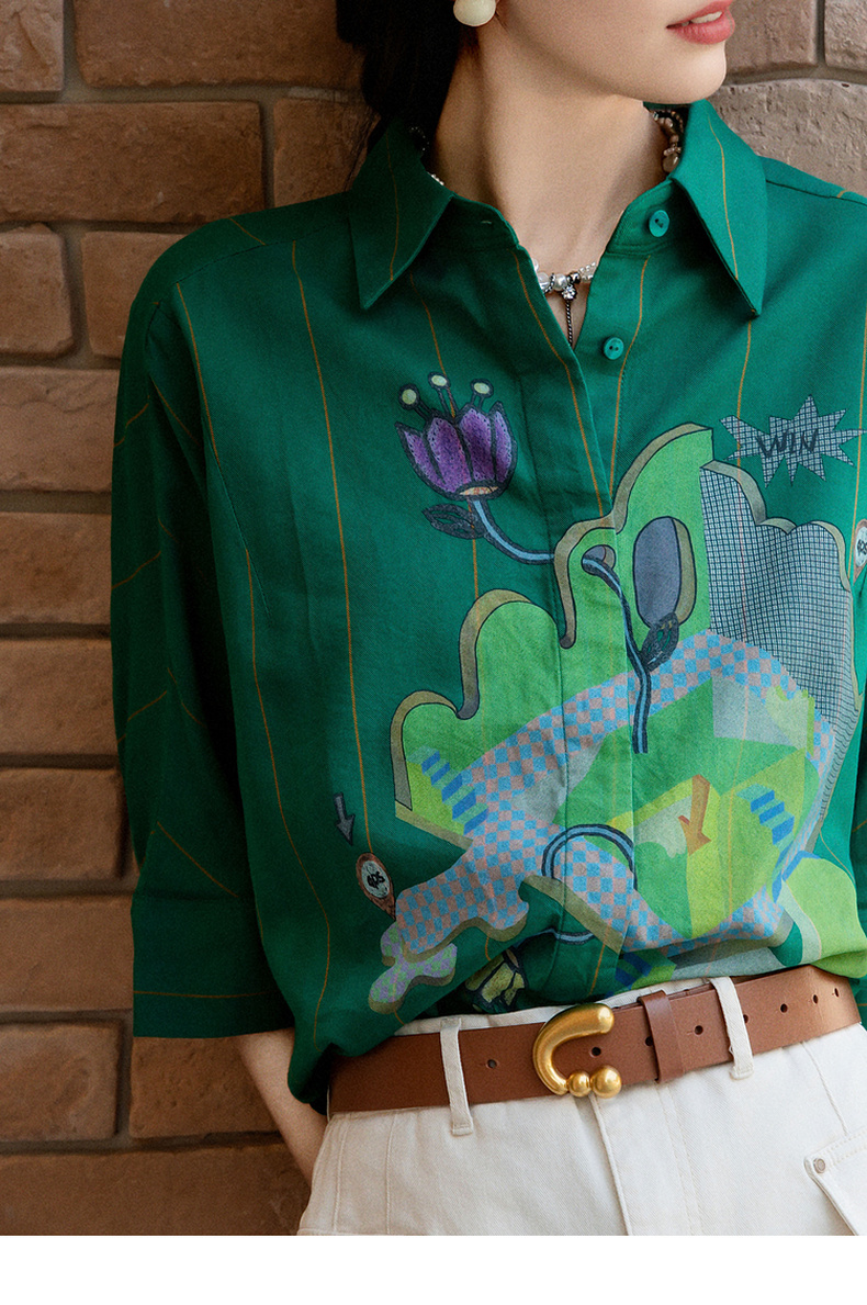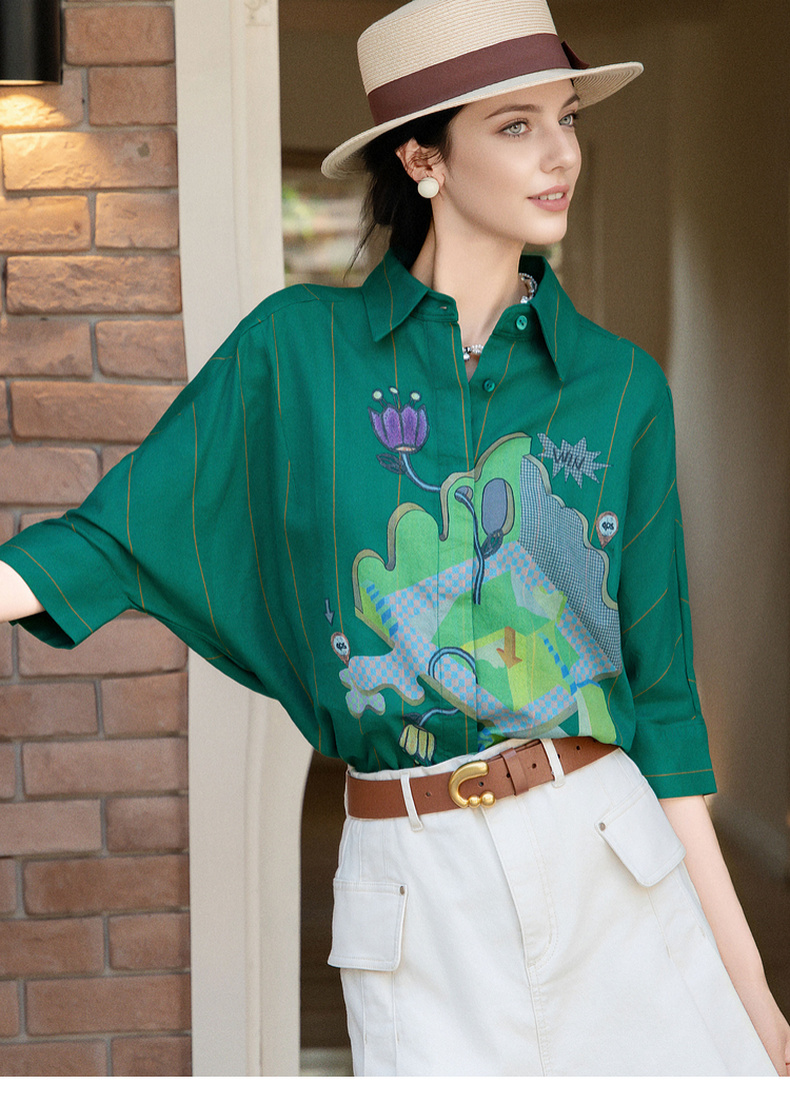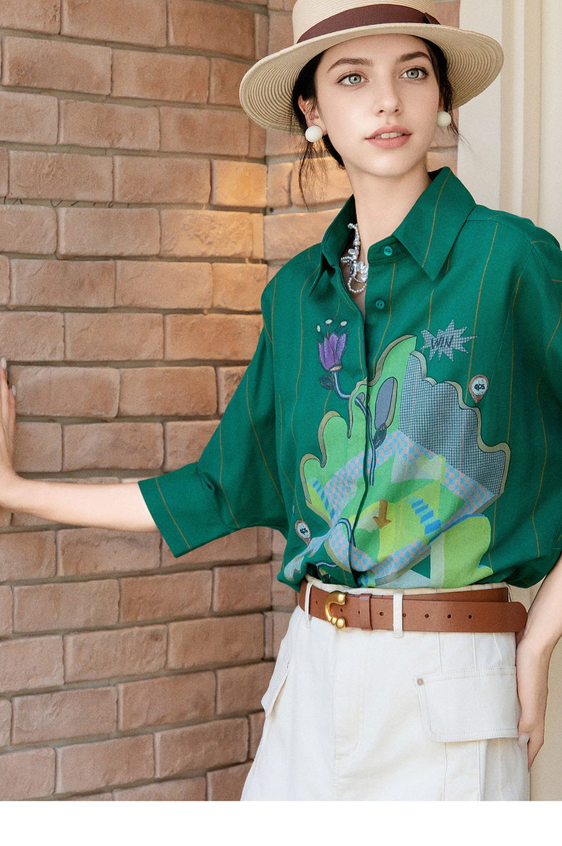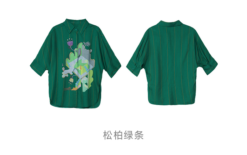 谜底大廓形印花衬衫分袖女2025夏季新款复古风条纹衬衣256MC6210