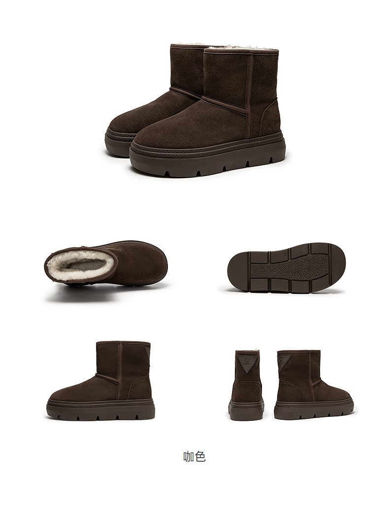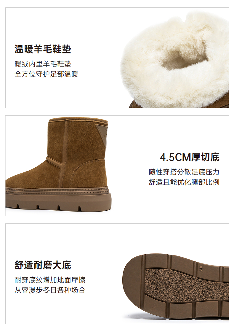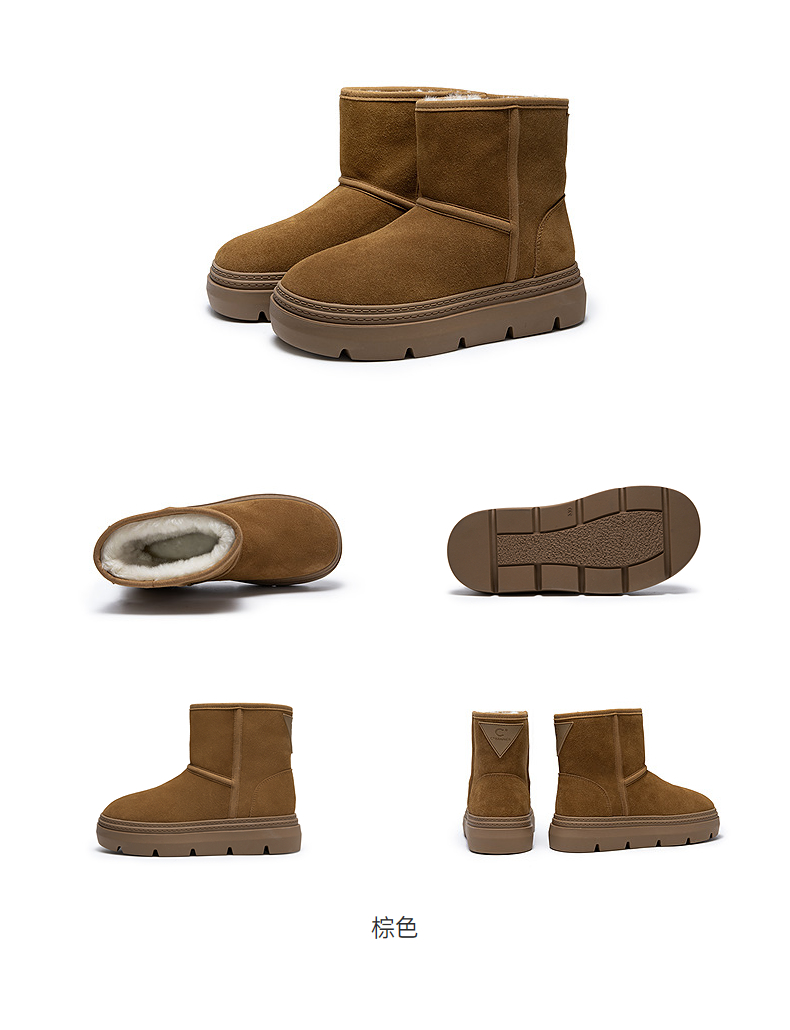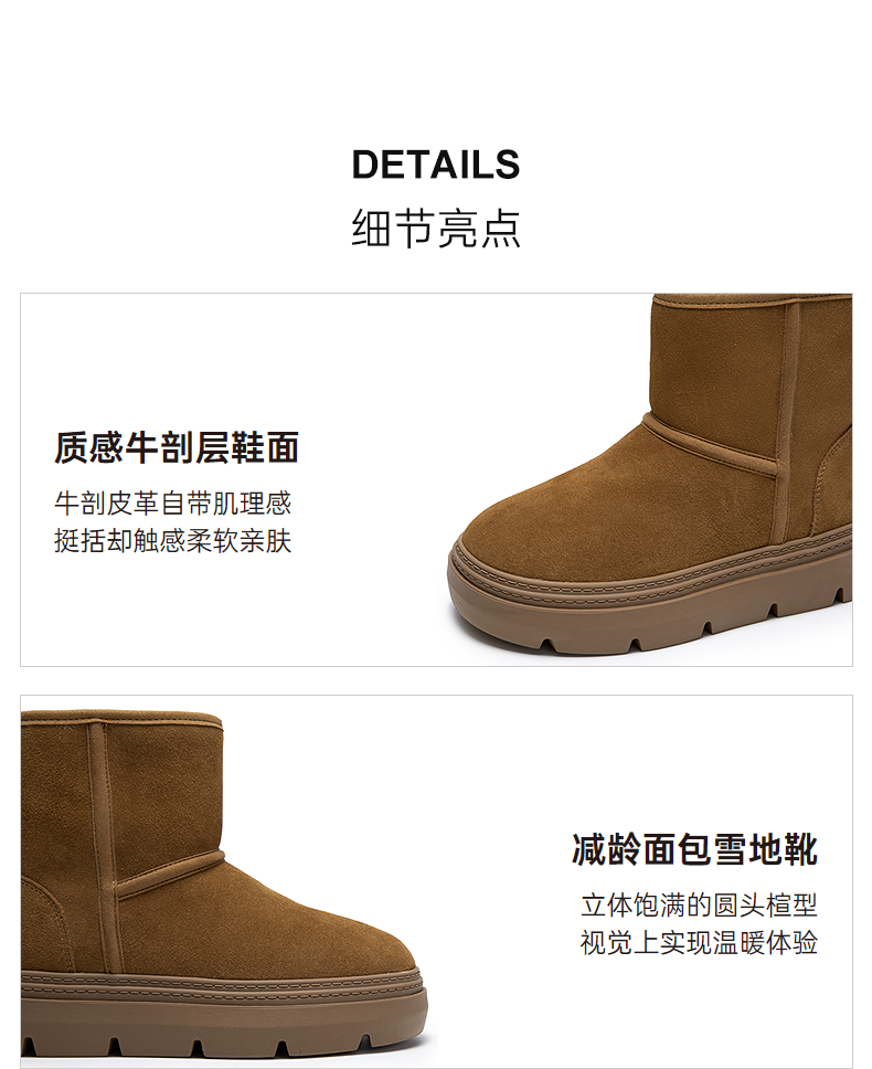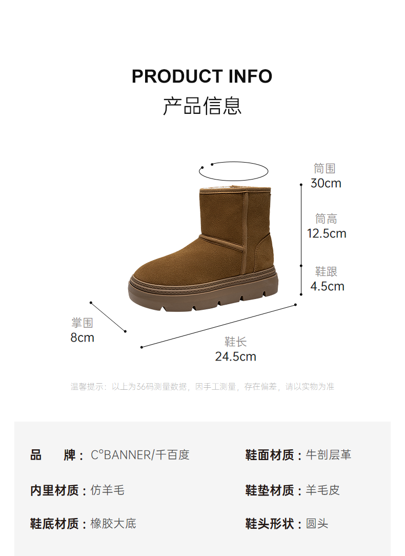 千百度厚底时尚雪地靴女加绒复古短靴保暖增高棉鞋A25770711