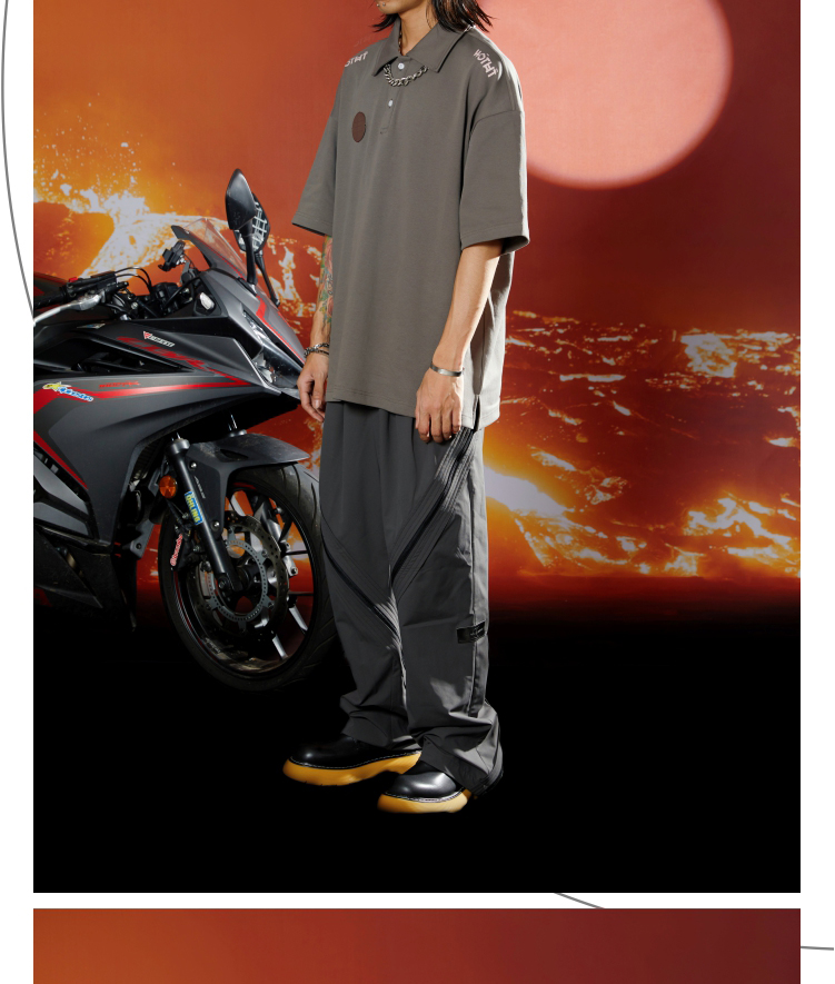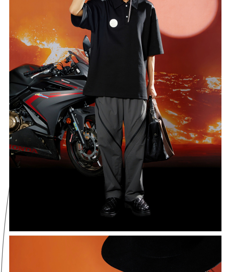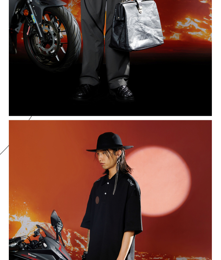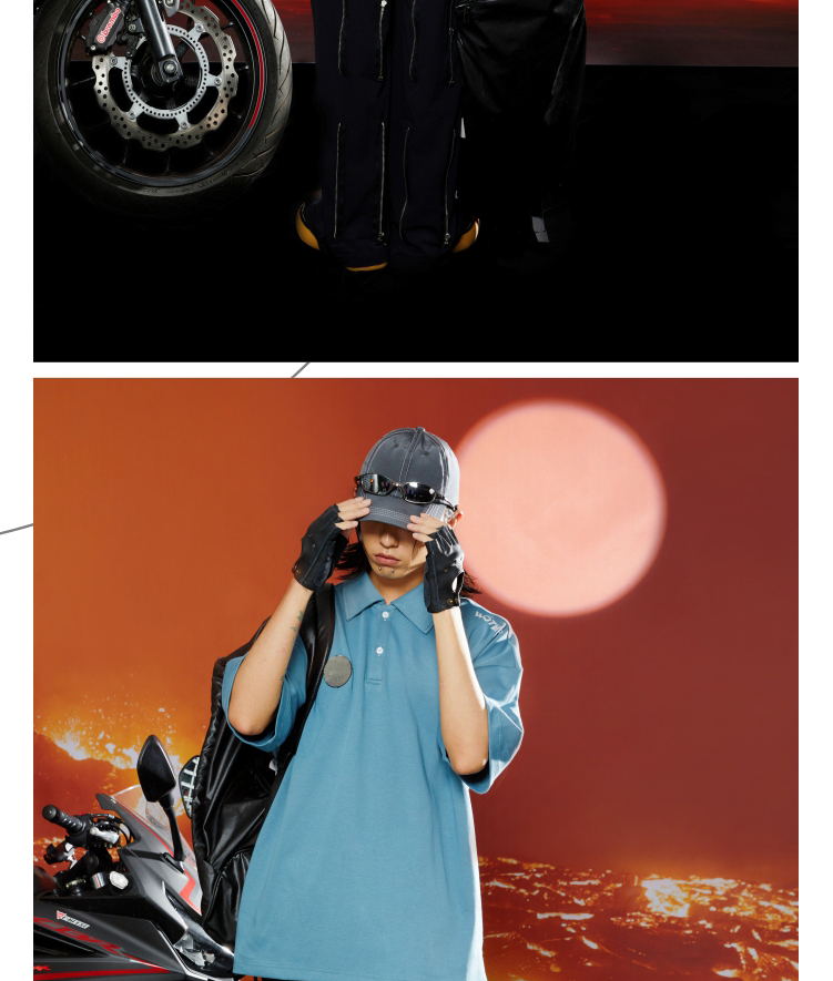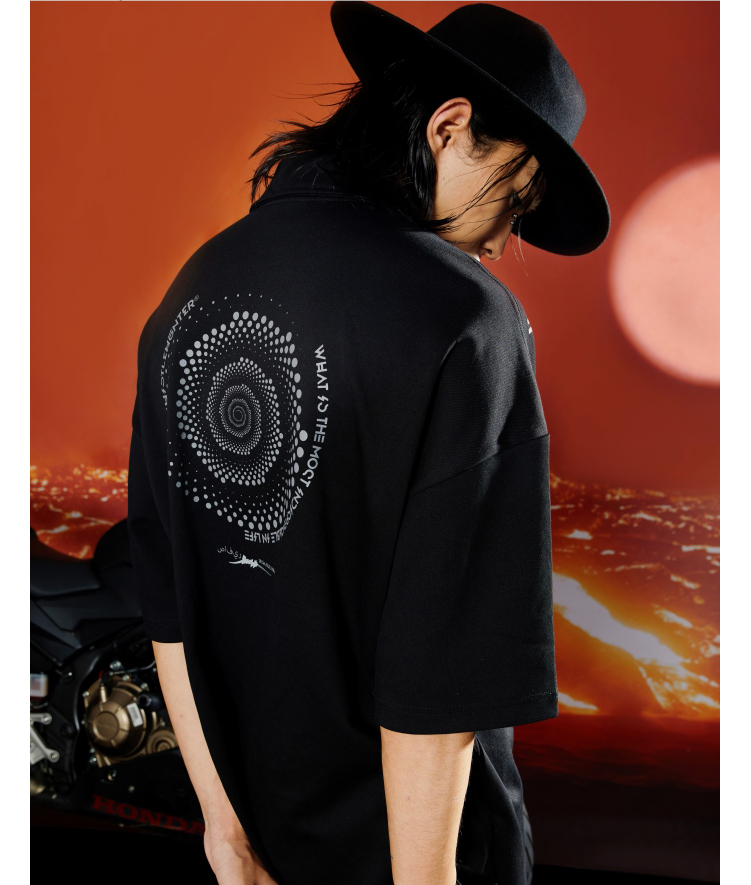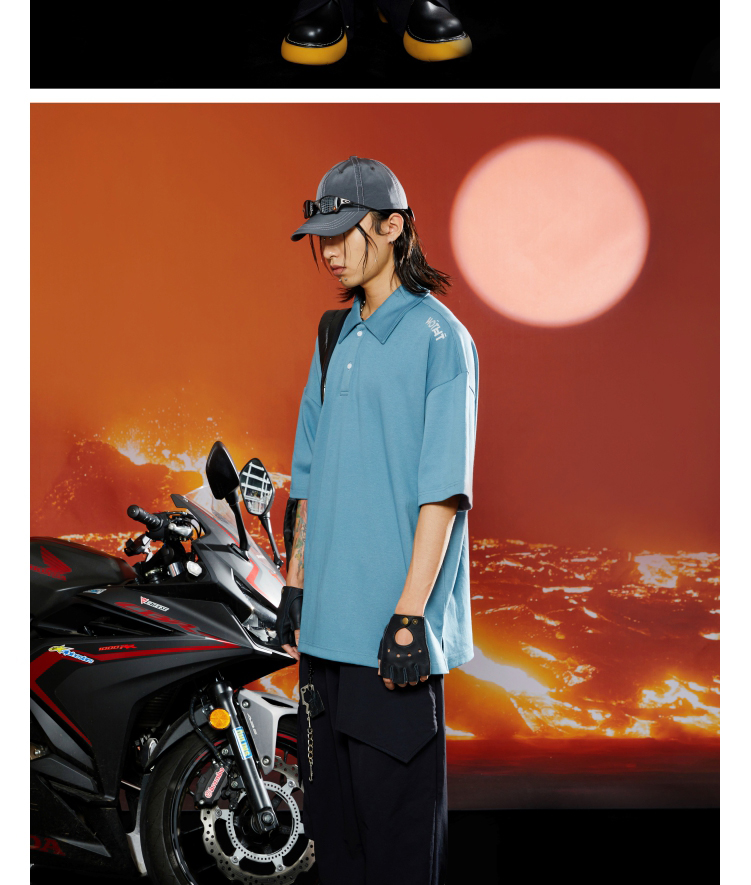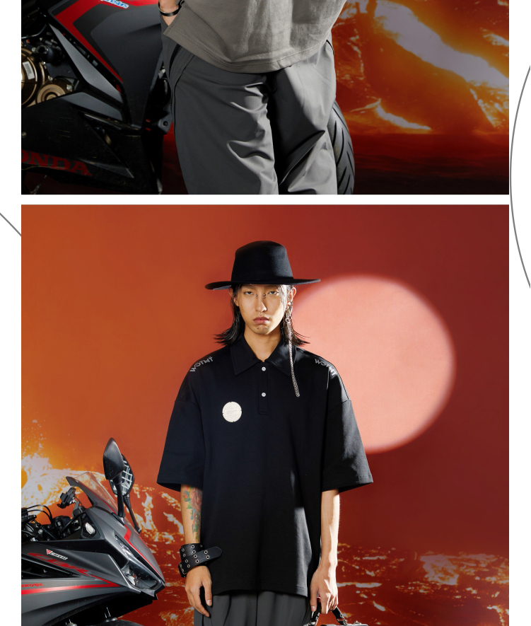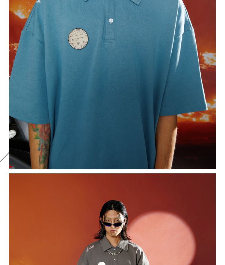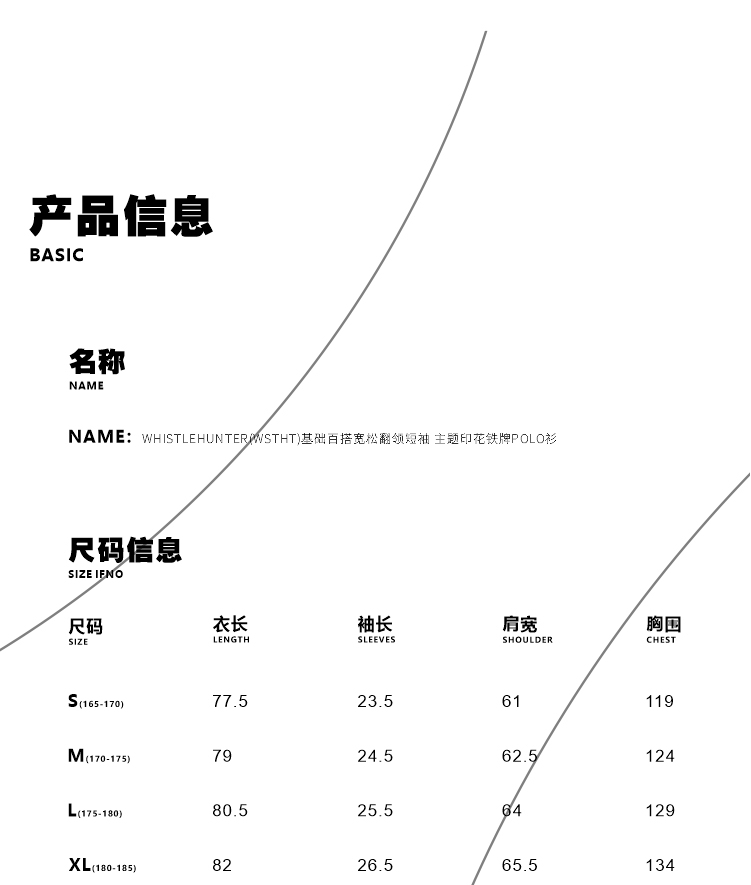 WHISTLEHUNTER(WSTHT)基础百搭宽松翻领短袖 主题印花铁牌POLO衫