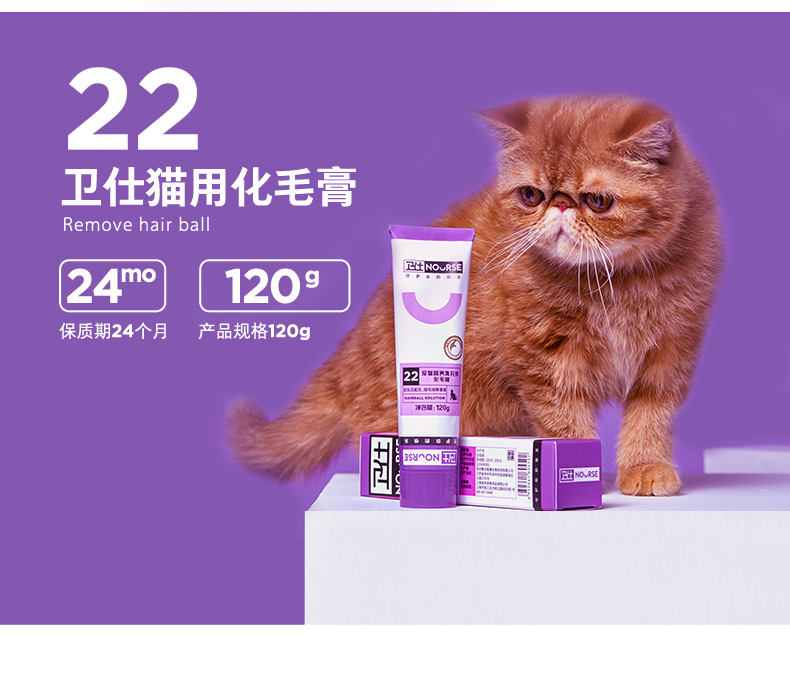 卫仕猫用化毛膏120g 宠物成幼犬猫咪营养膏排除毛球补充营养 吐毛球 调理肠胃