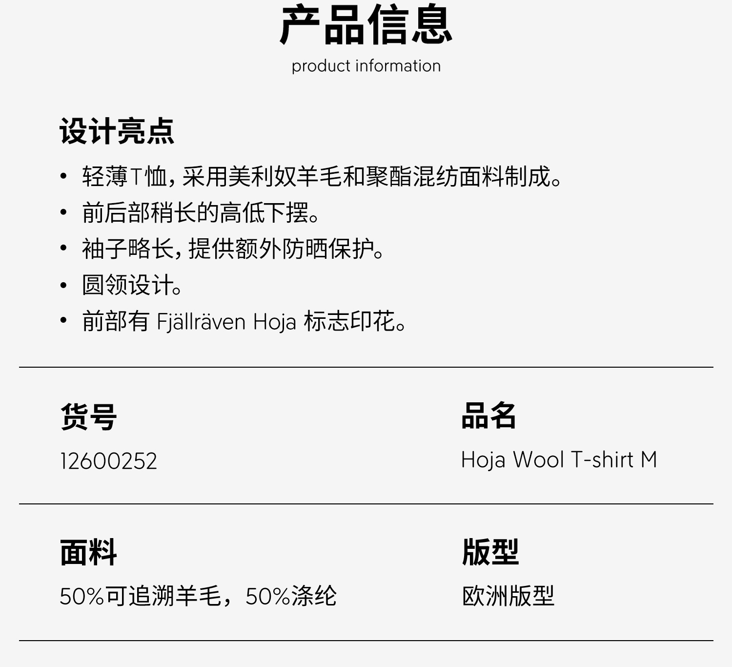 北极狐 25年新款hoja户外骑行运动短袖T恤 情侣羊毛T恤12600252