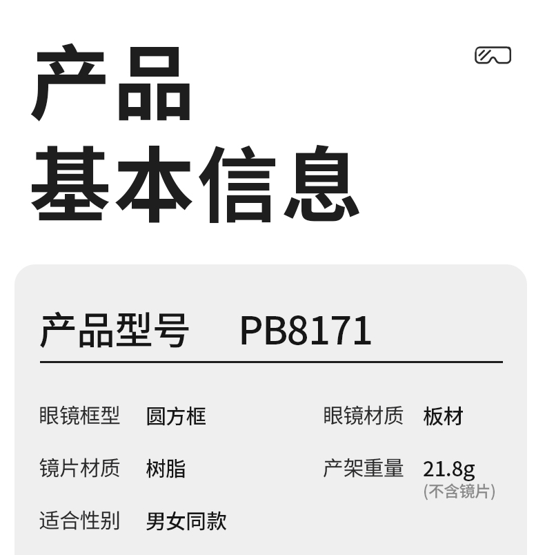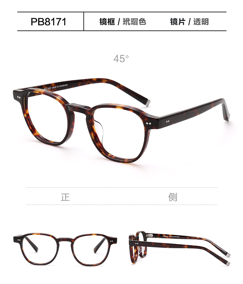 普莱斯光学镜架PB8171 经典板材 男女同款 四色可选
