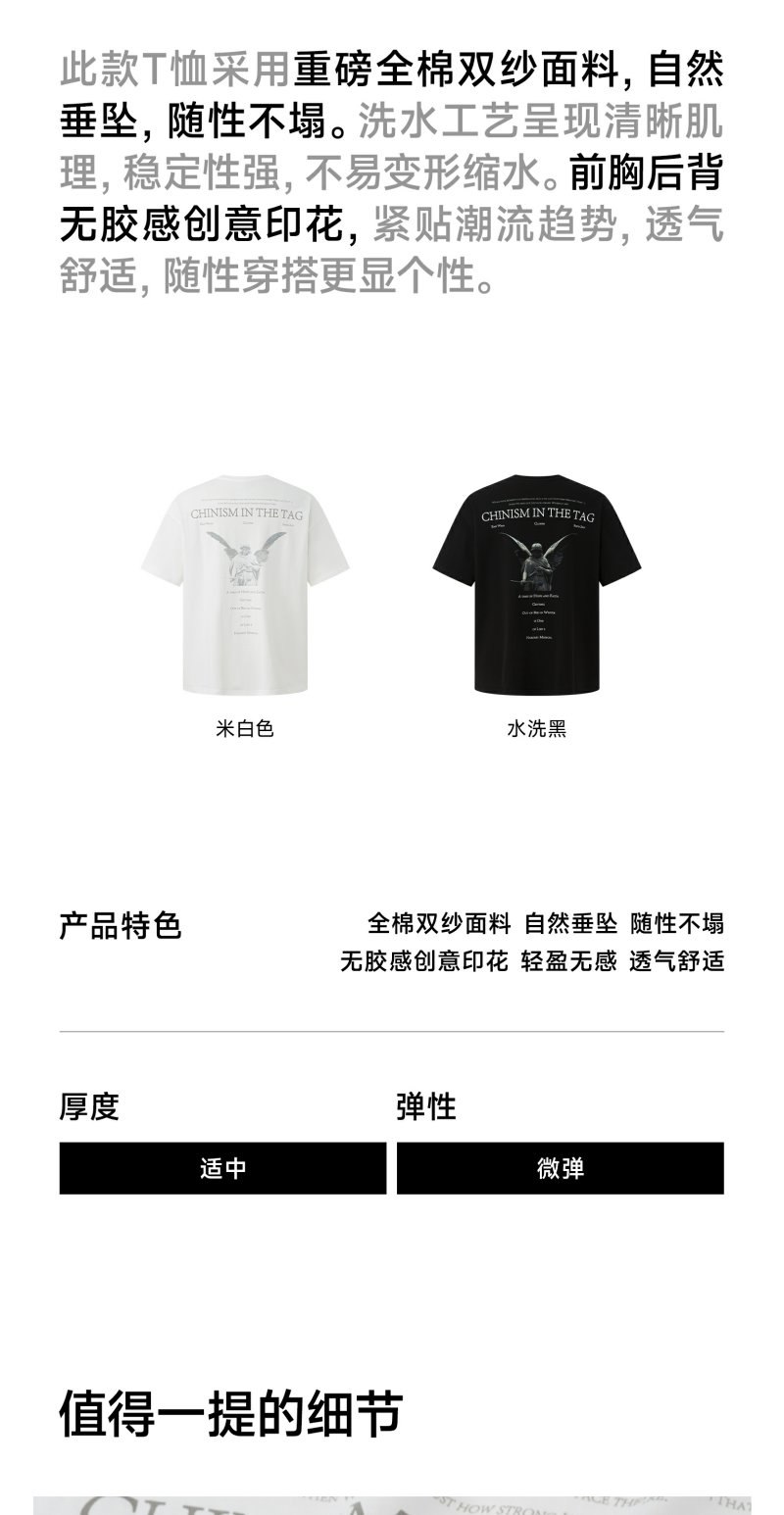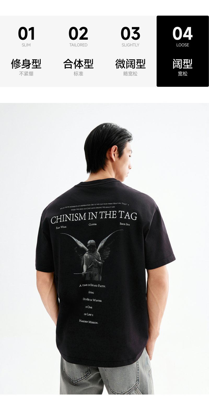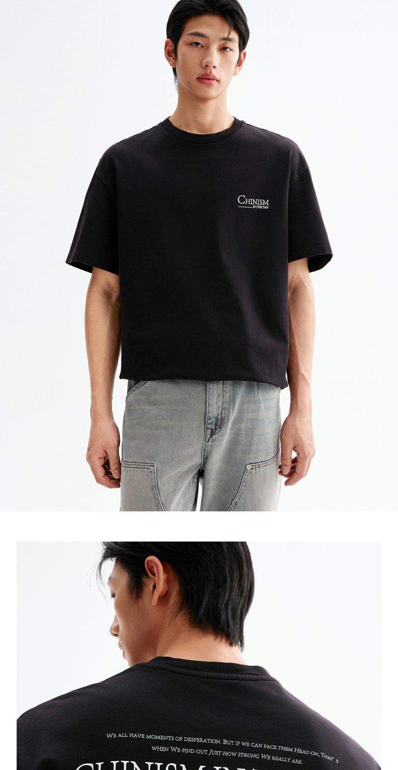 CHINISM赤尘 印花重磅短袖T恤男2025新款男士美式黑色纯棉半袖