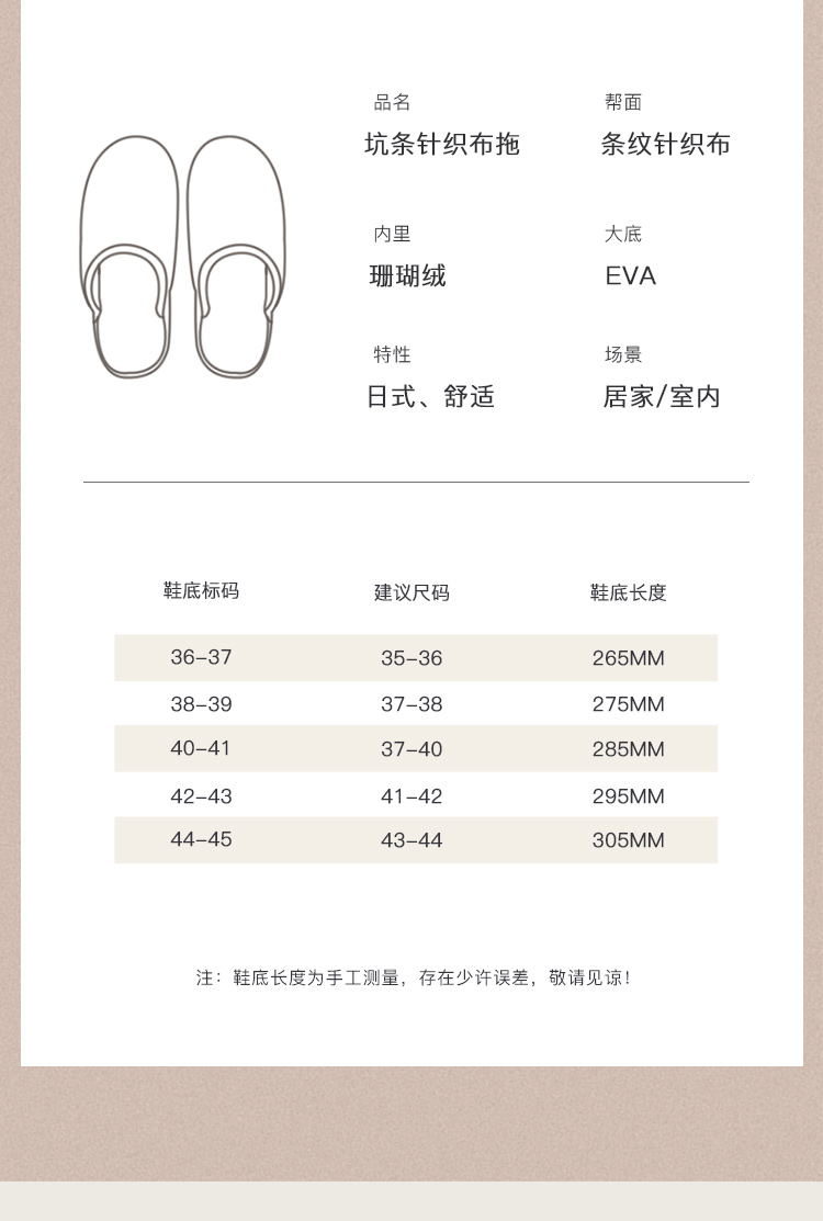 居家日式拖鞋 亚麻内里 /珊瑚绒内里 60D 海绵中底不塌陷 居家必备
