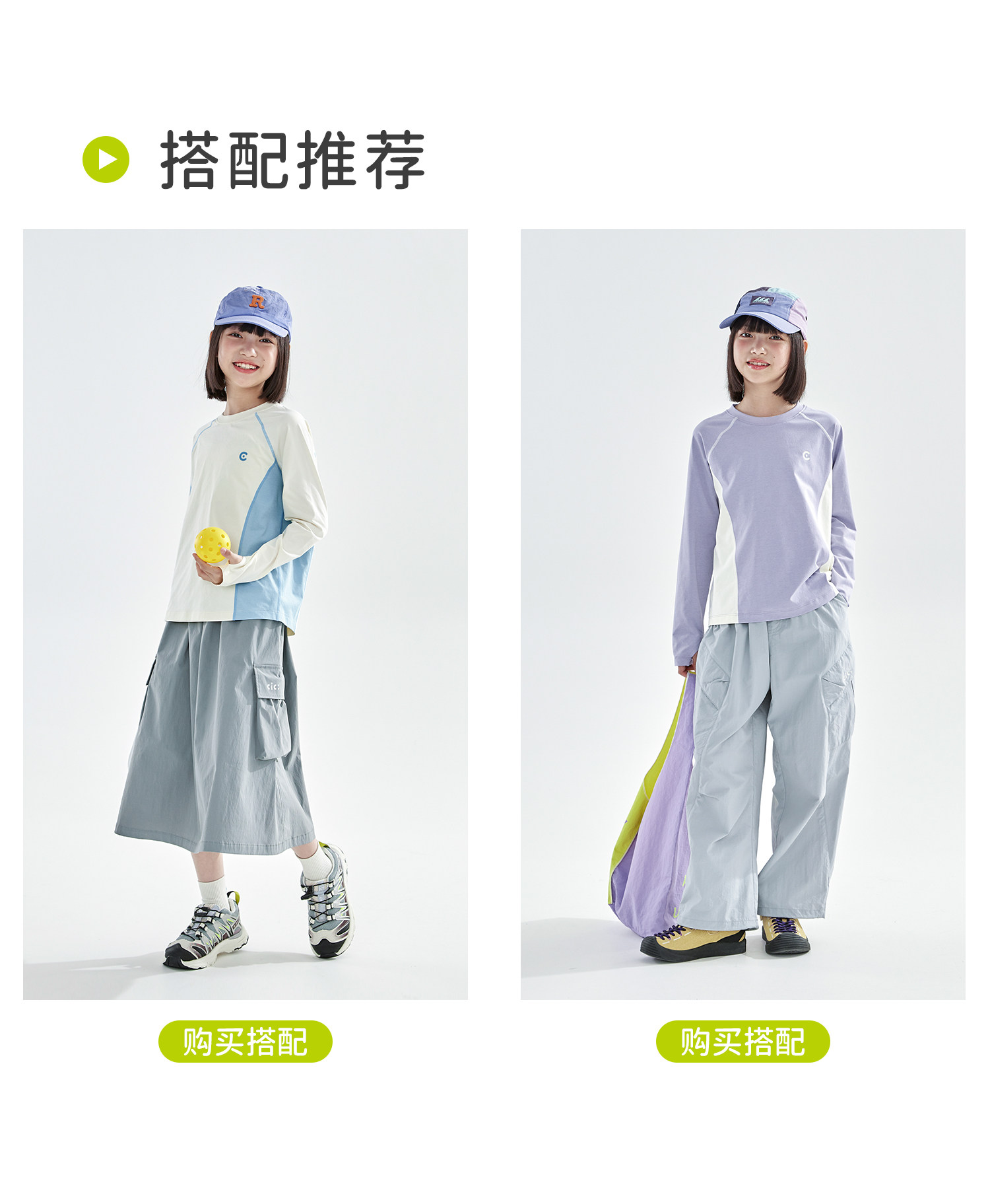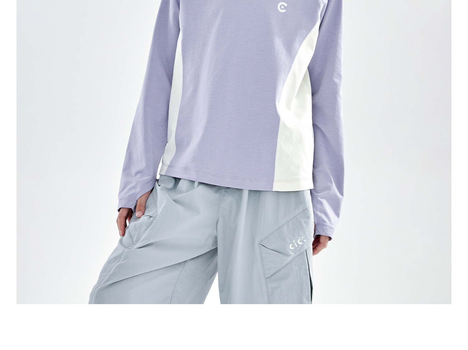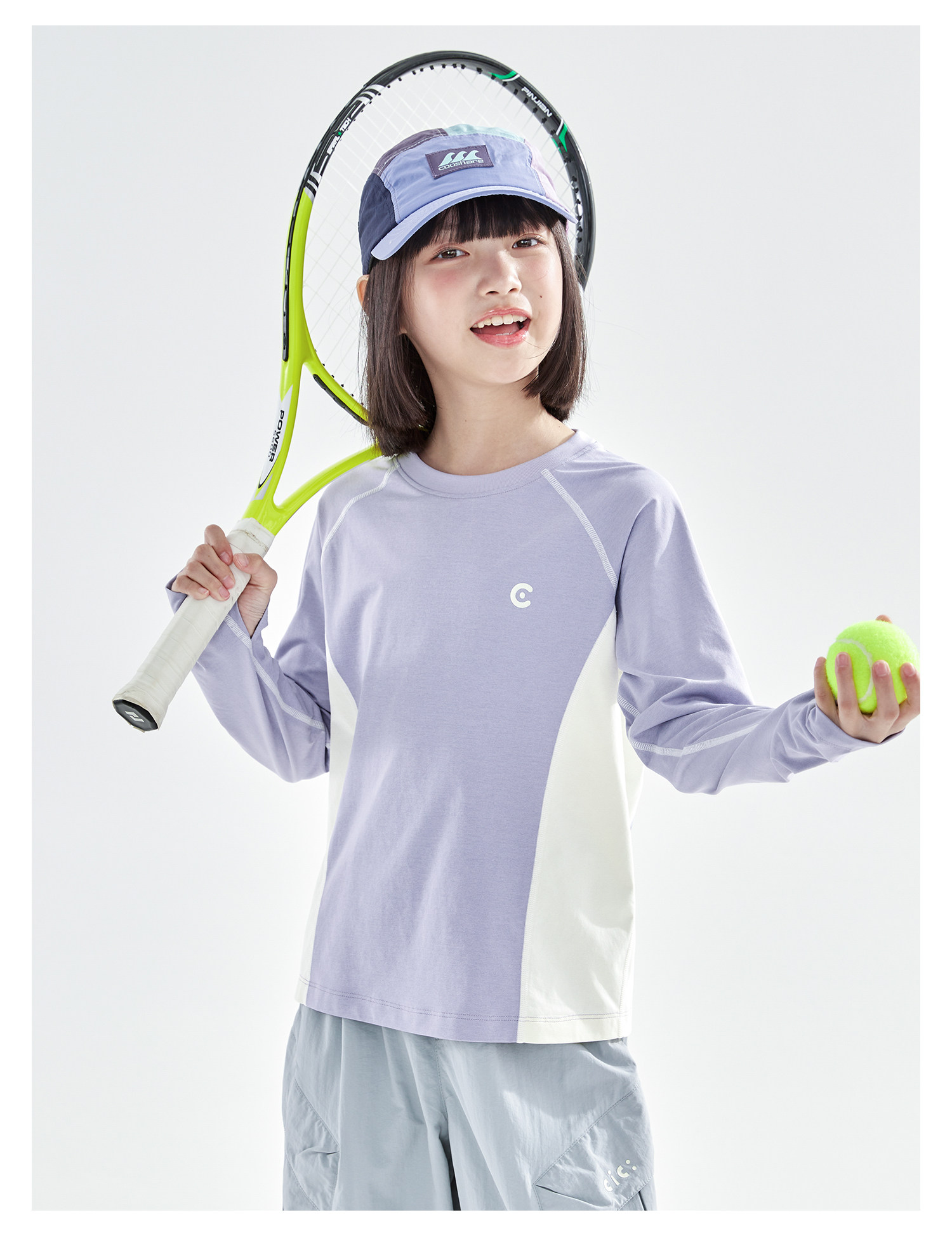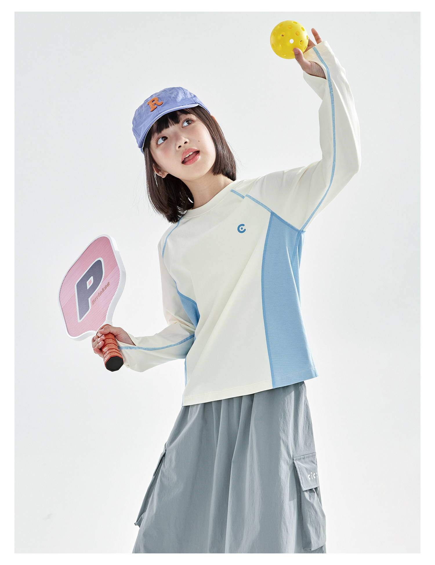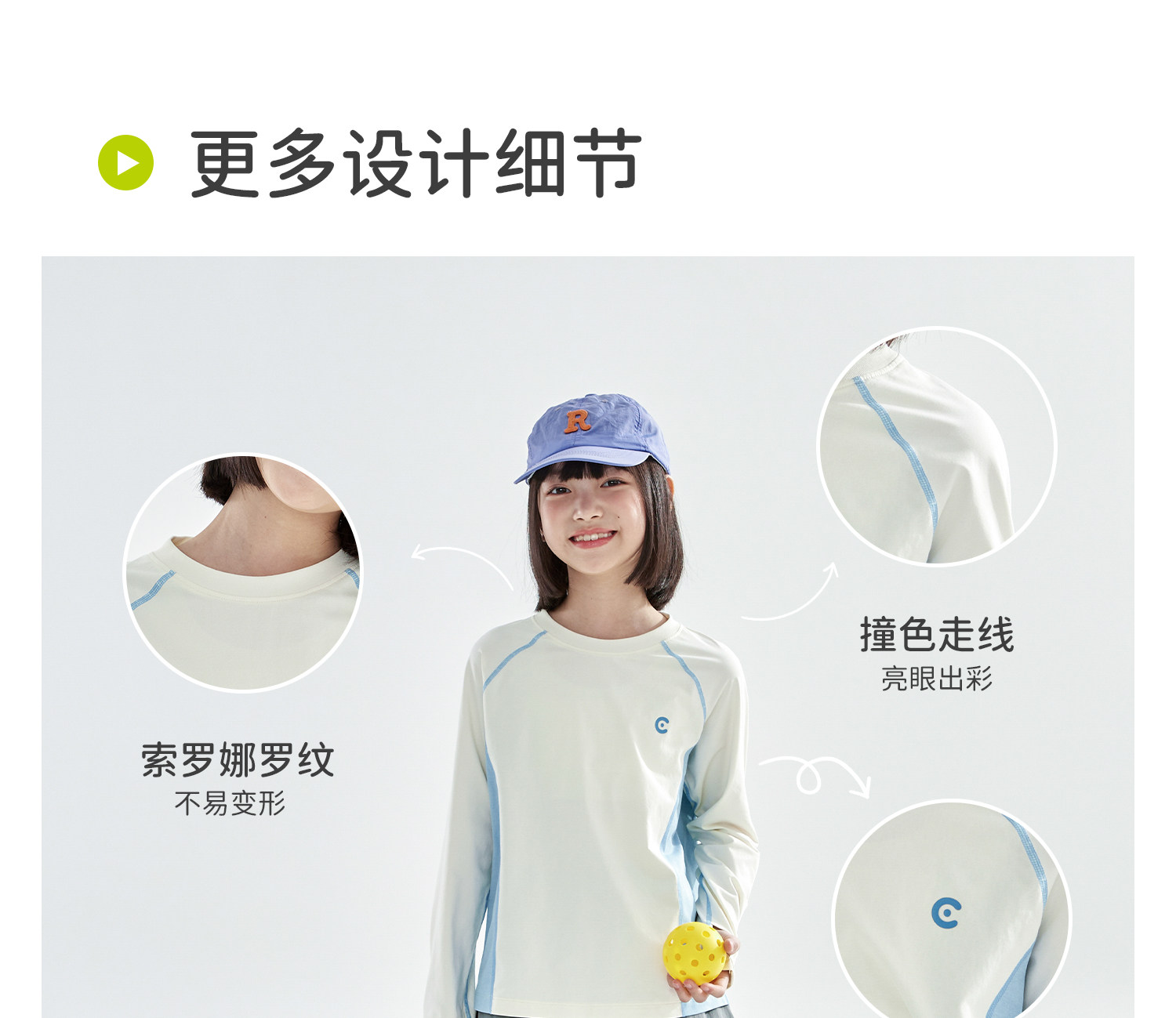 米白拼蓝预售4.7发 cicochild2026年春季新款女童棉感速干防晒T恤凉感7A抗菌拼色上衣