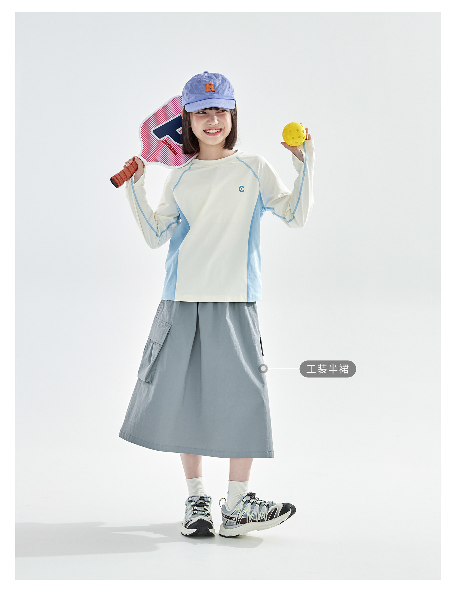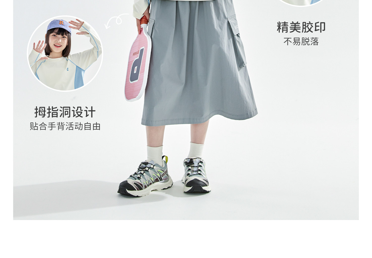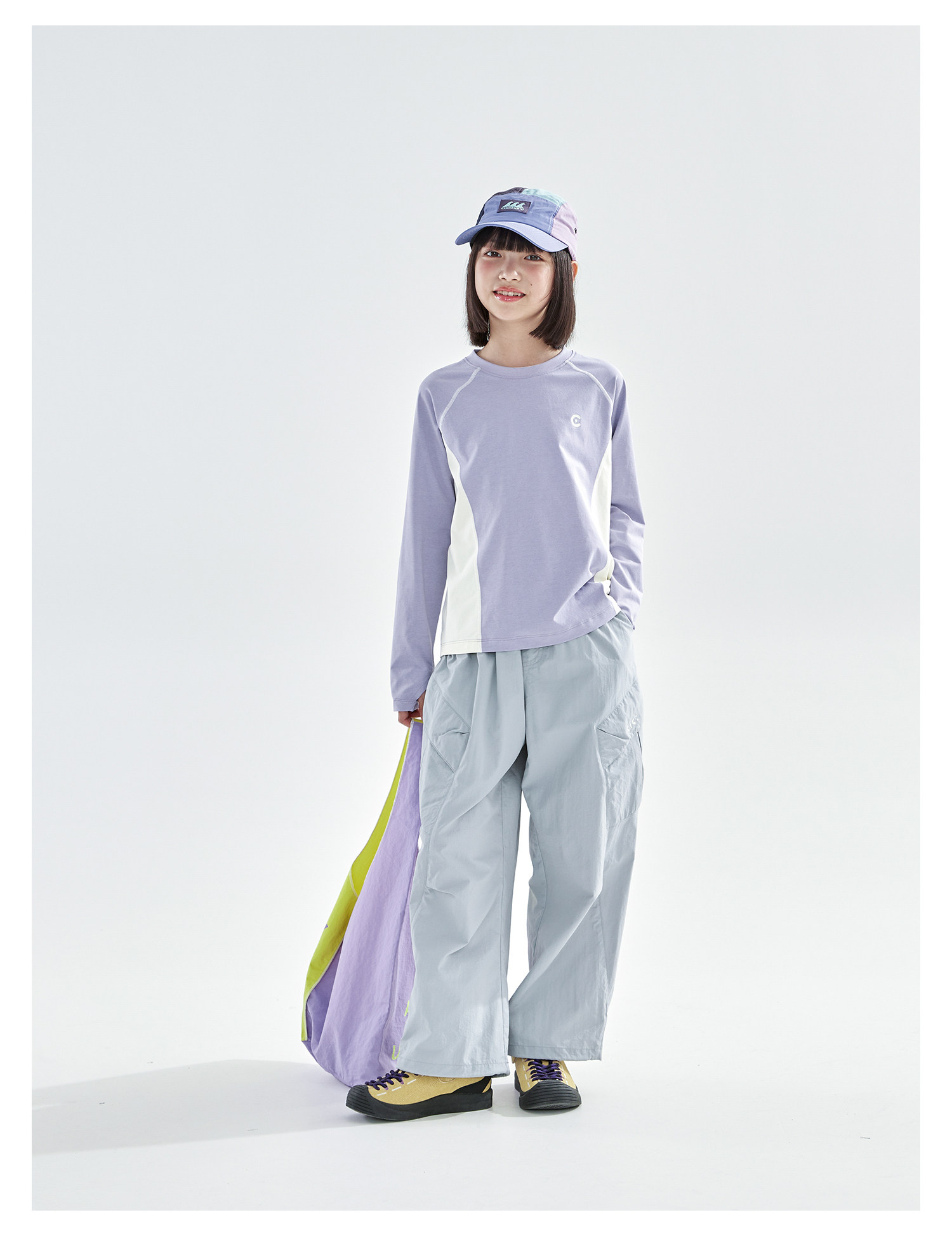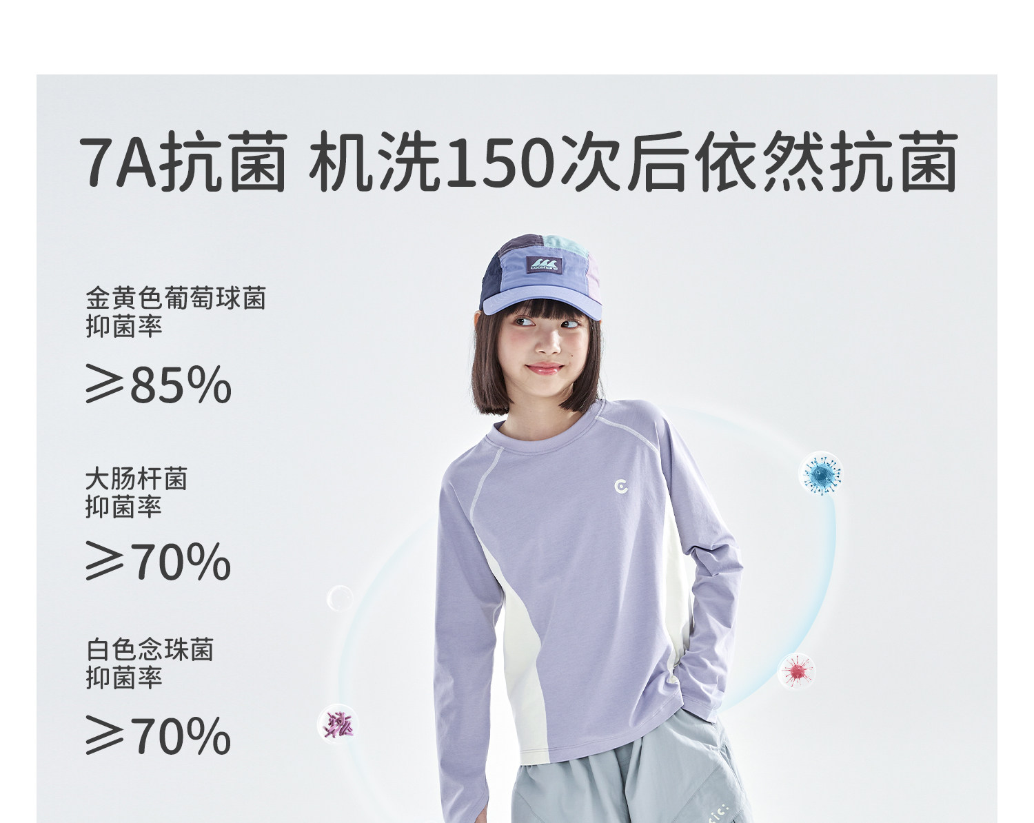 米白拼蓝预售4.7发 cicochild2026年春季新款女童棉感速干防晒T恤凉感7A抗菌拼色上衣