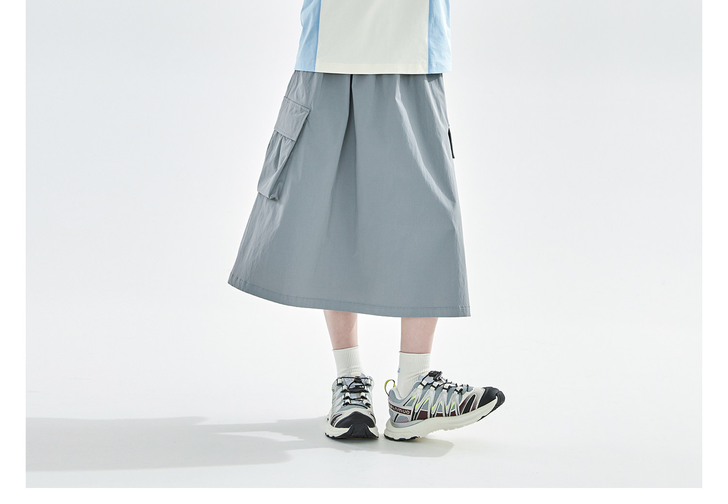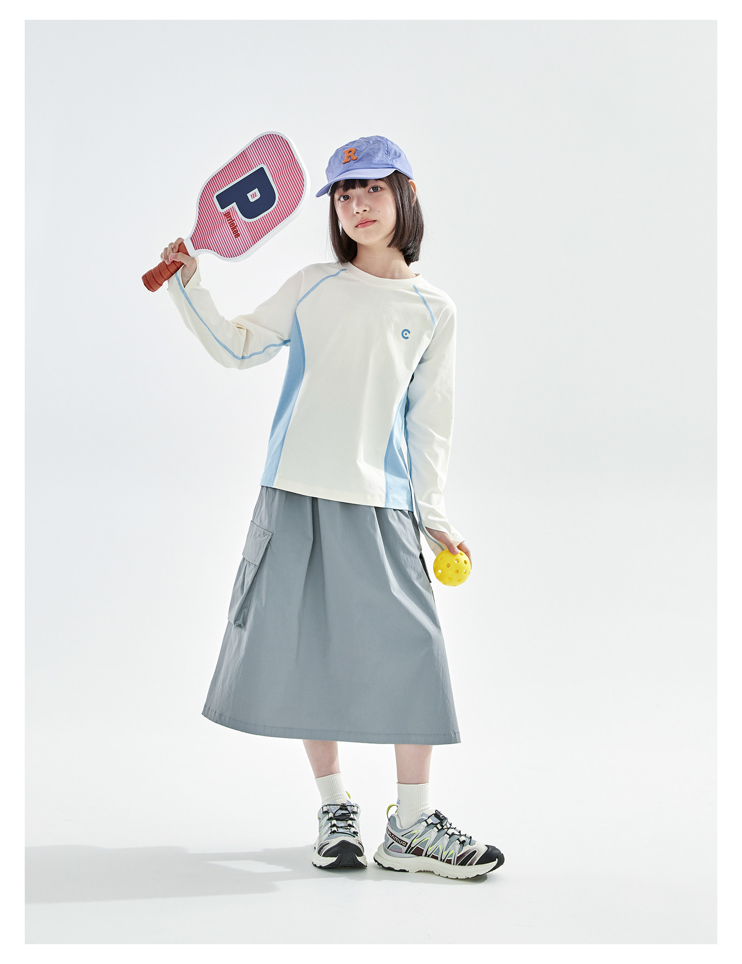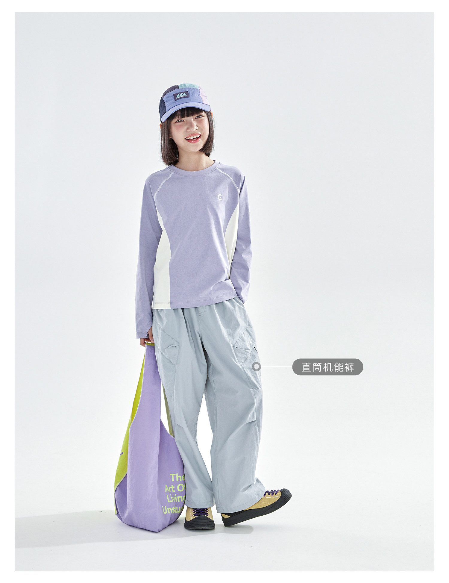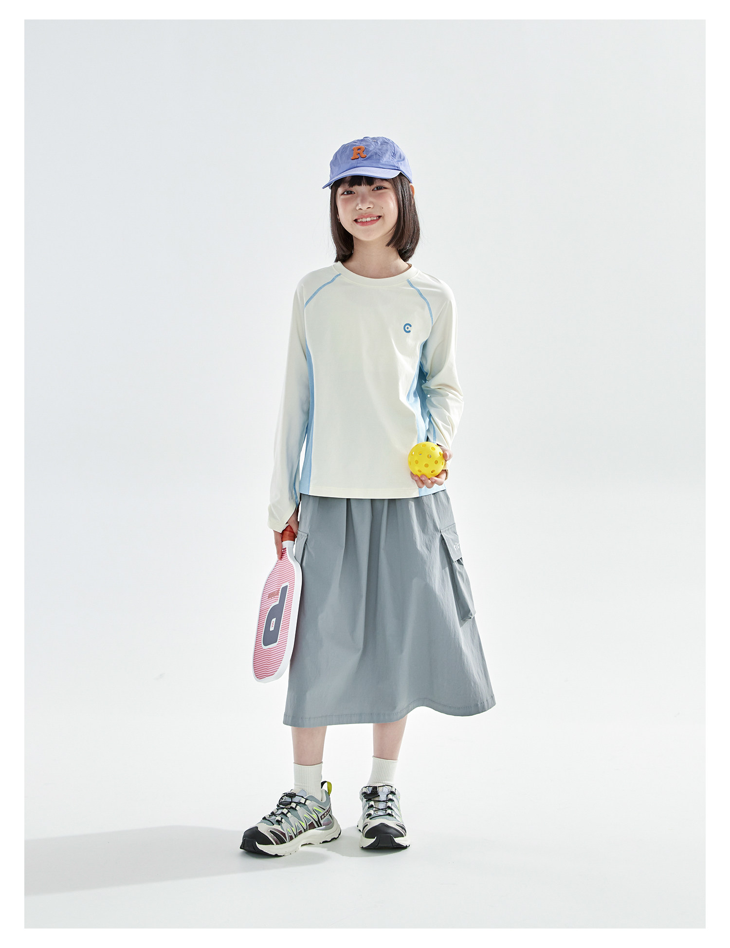 米白拼蓝预售4.7发 cicochild2026年春季新款女童棉感速干防晒T恤凉感7A抗菌拼色上衣