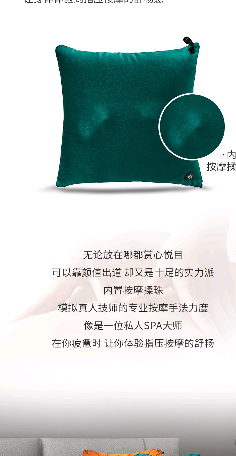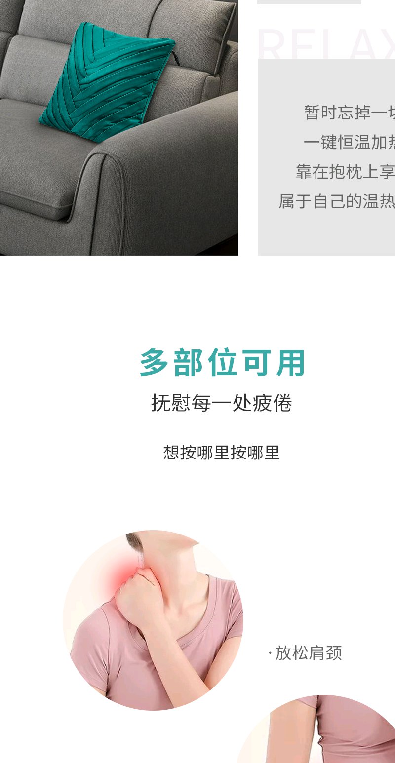 ihoco丝绒按摩抱枕家用车载多功能靠枕按摩器背部按摩靠垫无线