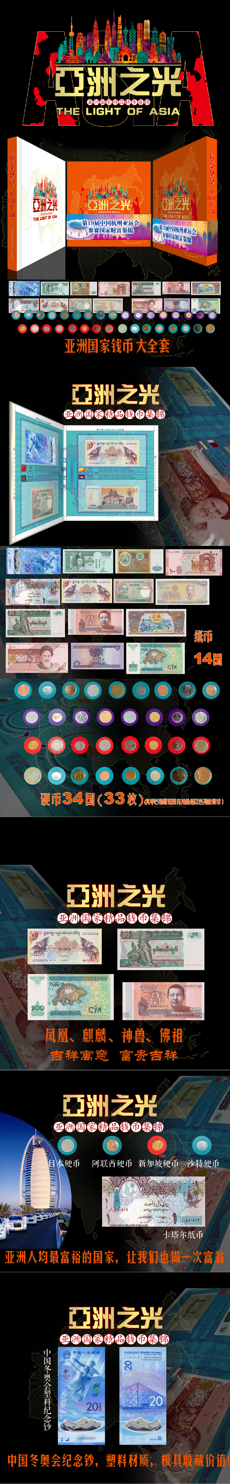 亚洲之光钱币册 14个经典国家纸币 34个经典国家硬币