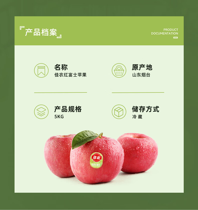 佳农 烟台红富士苹果 5kg装 一级果 单果重160g以上 100001919835