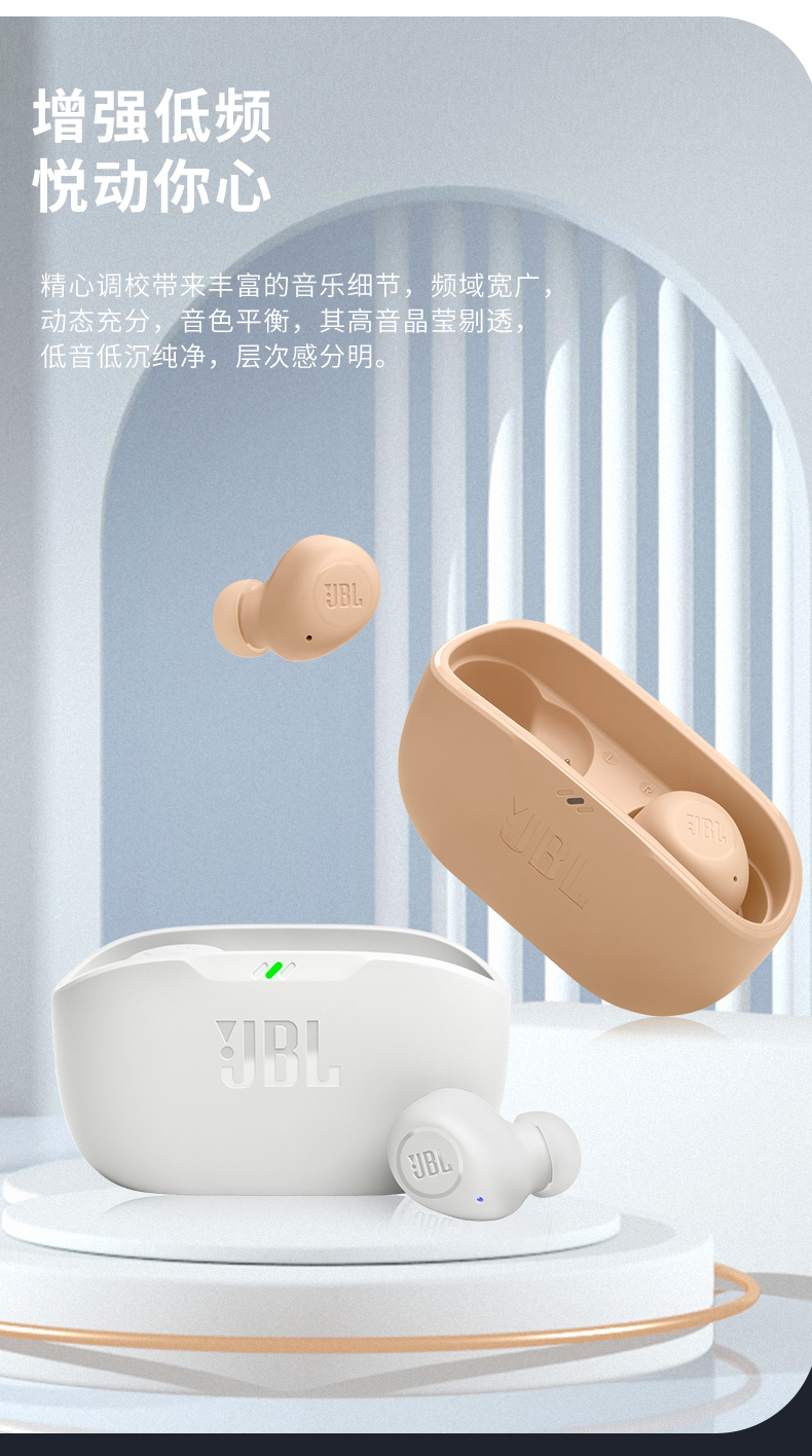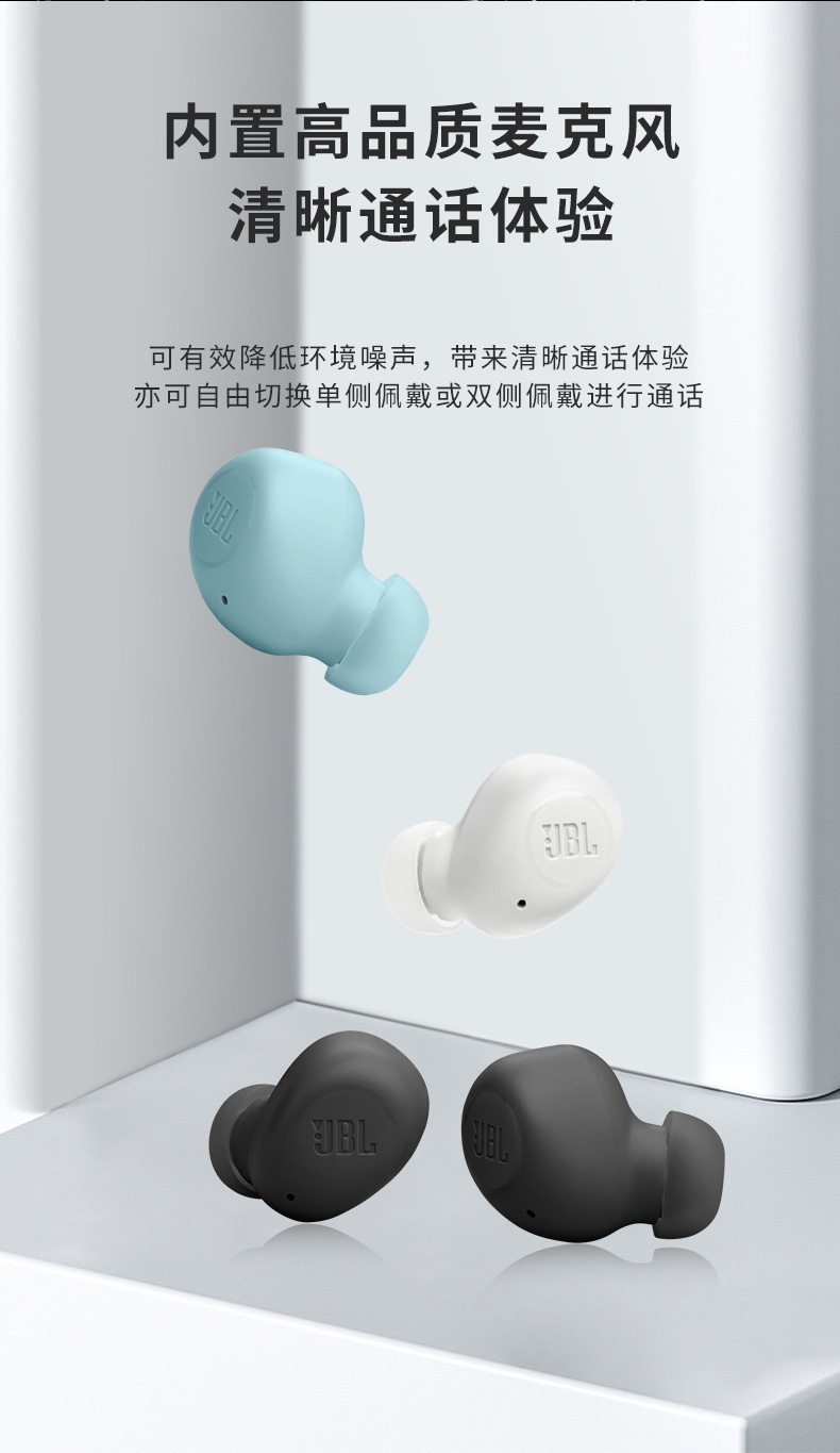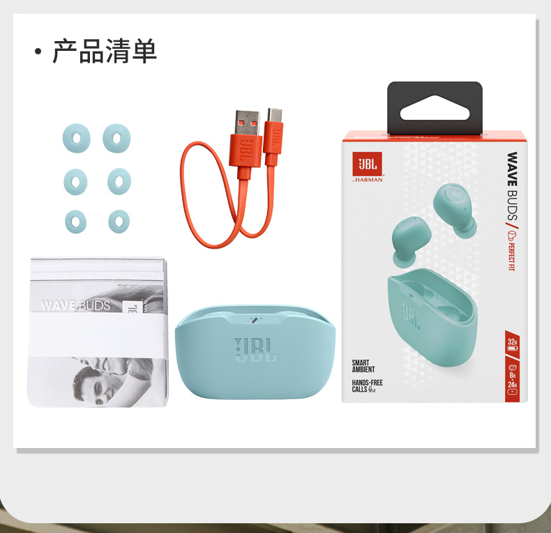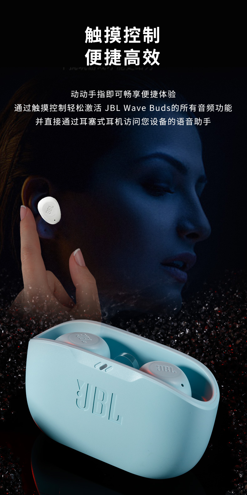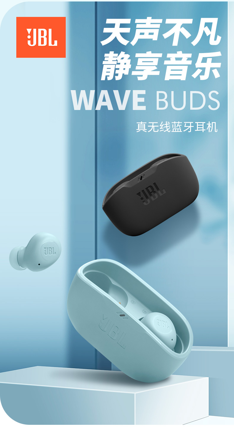 JBL 真无线蓝牙耳机WAVE BUDS 入耳式音乐耳机智能环境音双耳传输适用苹果安卓手机