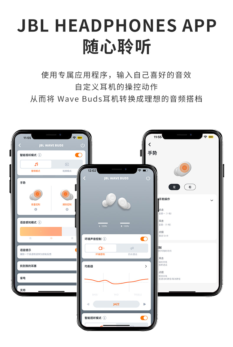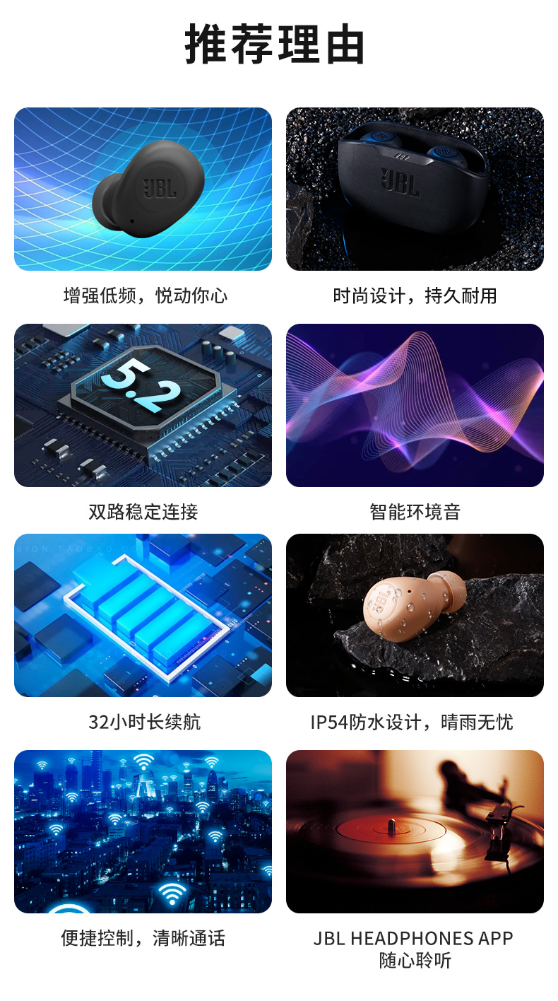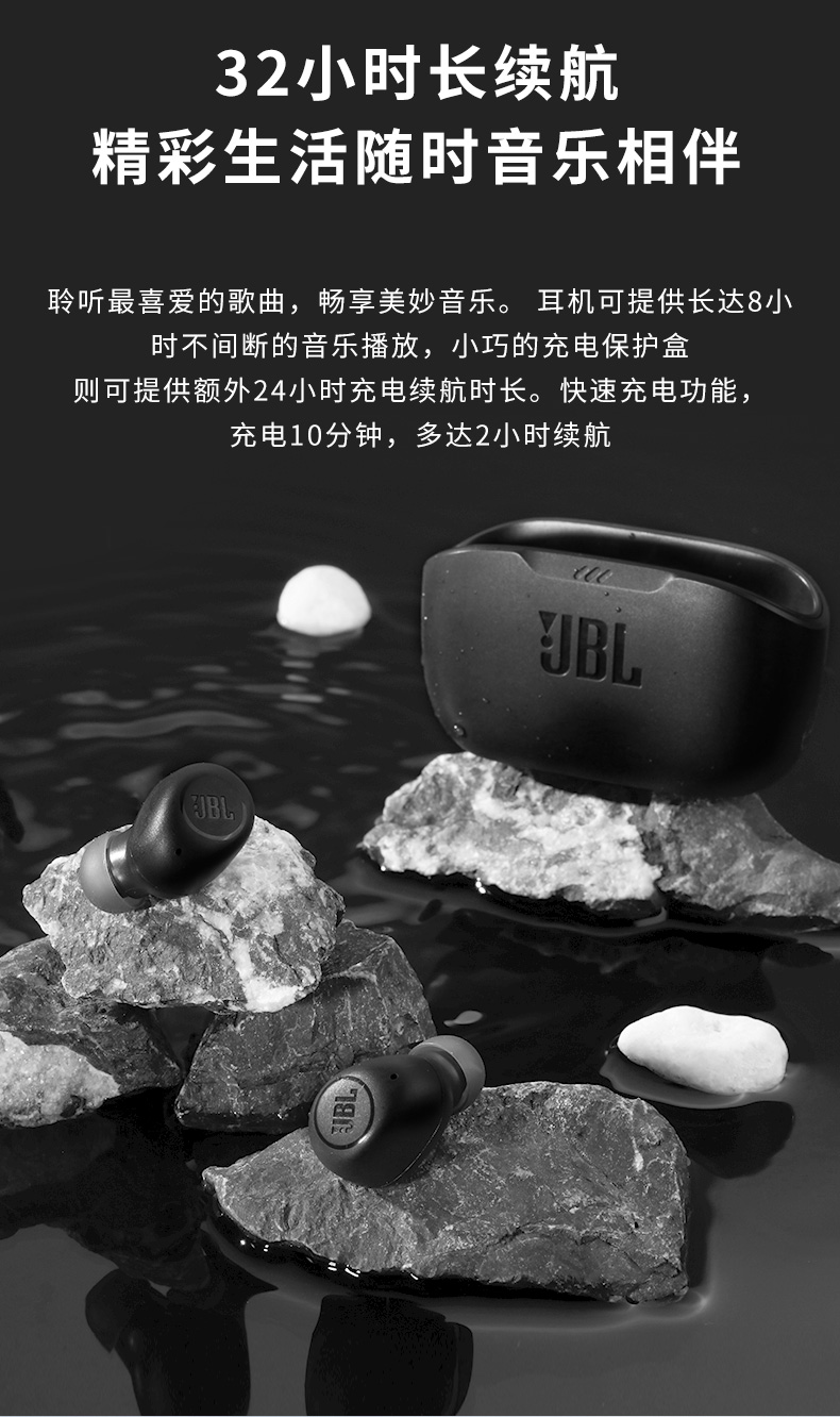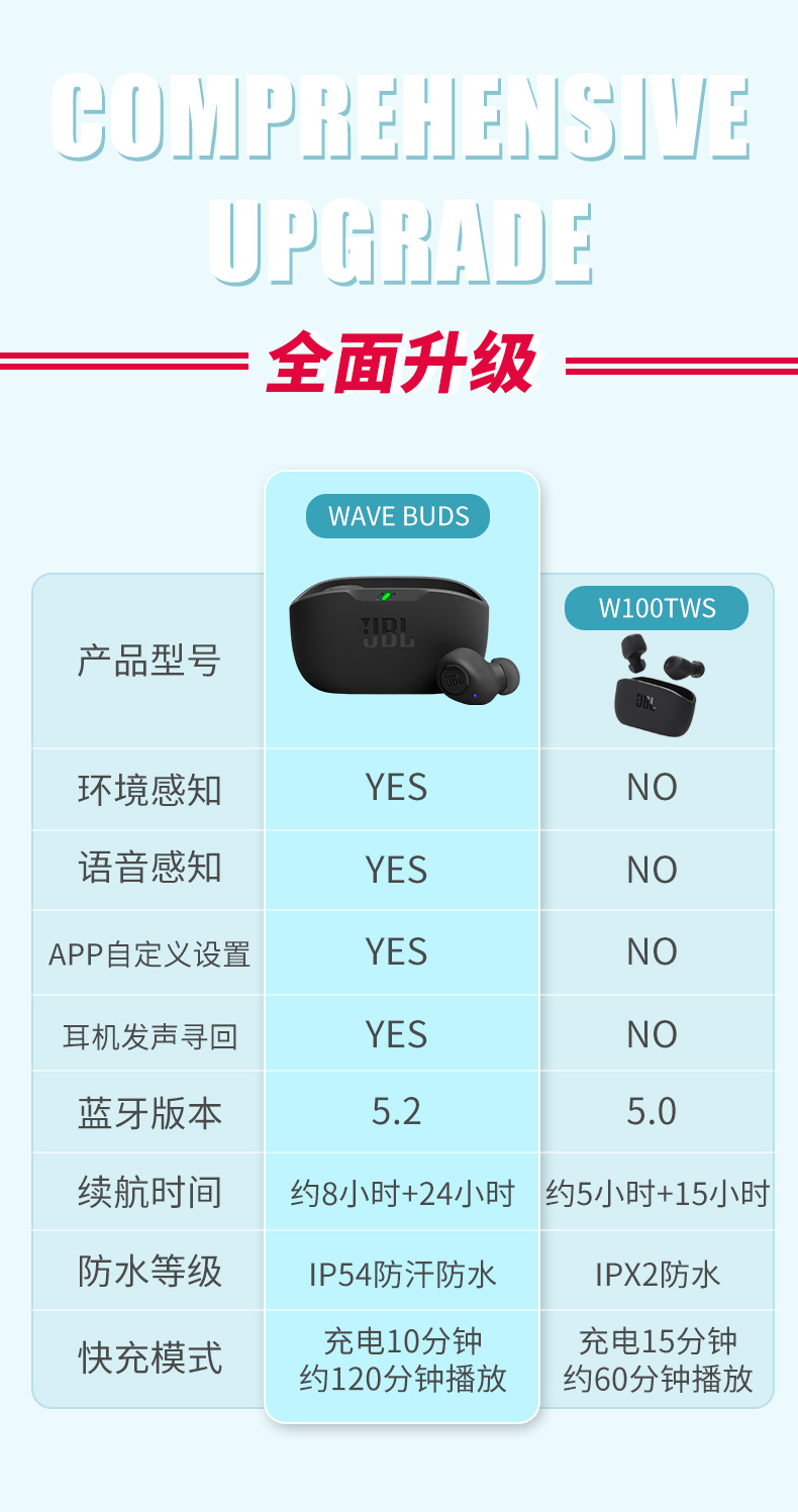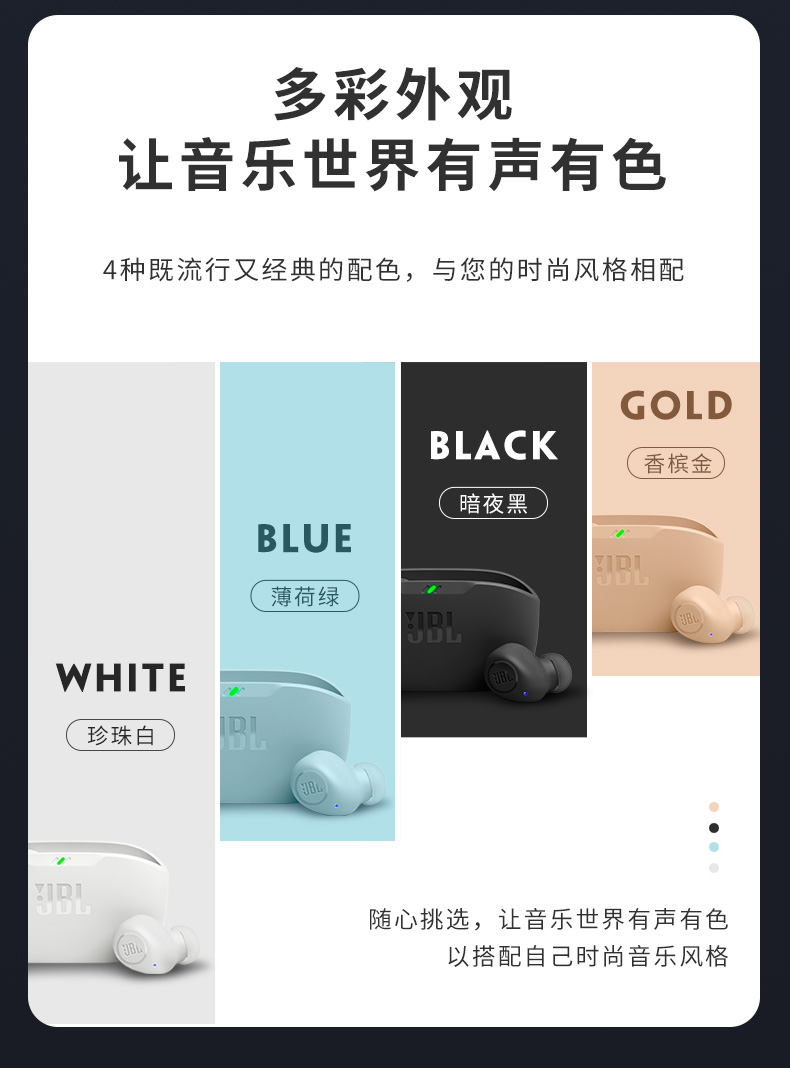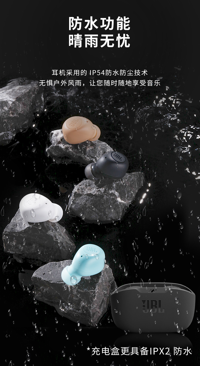 JBL 真无线蓝牙耳机WAVE BUDS 入耳式音乐耳机智能环境音双耳传输适用苹果安卓手机