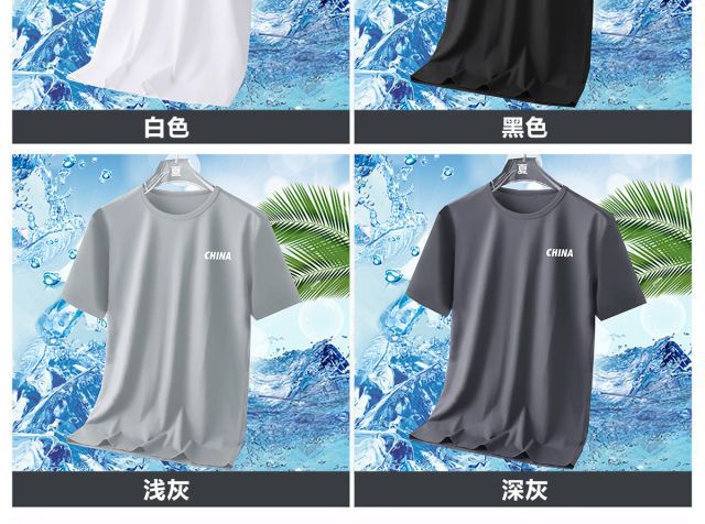 【倍感清凉❗️男士冰丝短袖T恤】网眼透气,亲肤舒适,冰爽不闷热,夏季宽松大码男装休闲百搭体恤衫韩版潮流衣服男T上衣父亲节礼物新年礼盒年货礼盒
