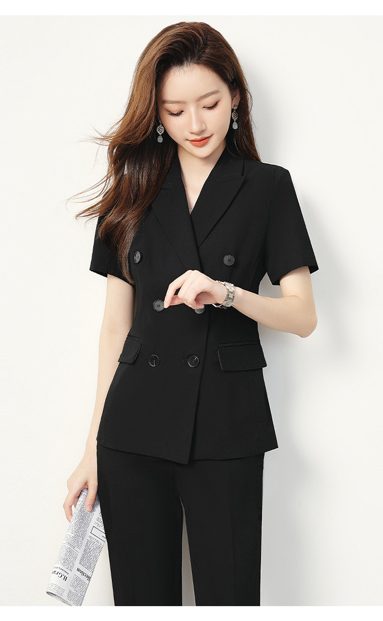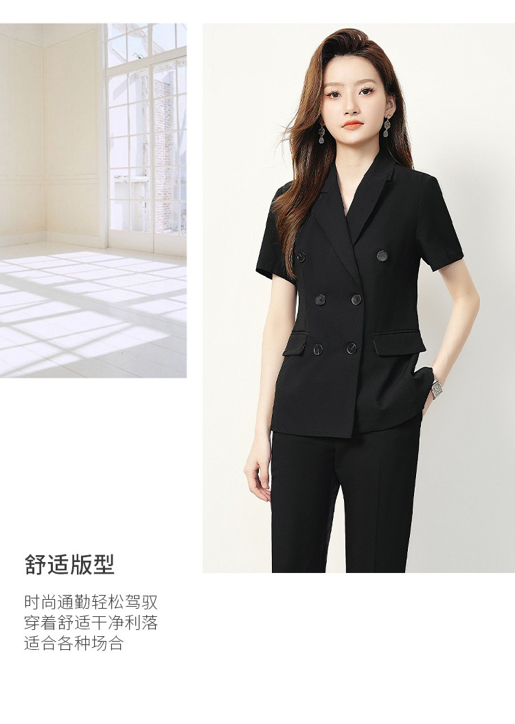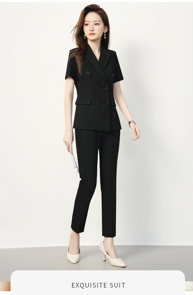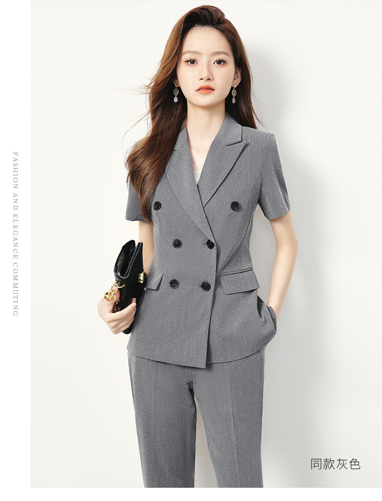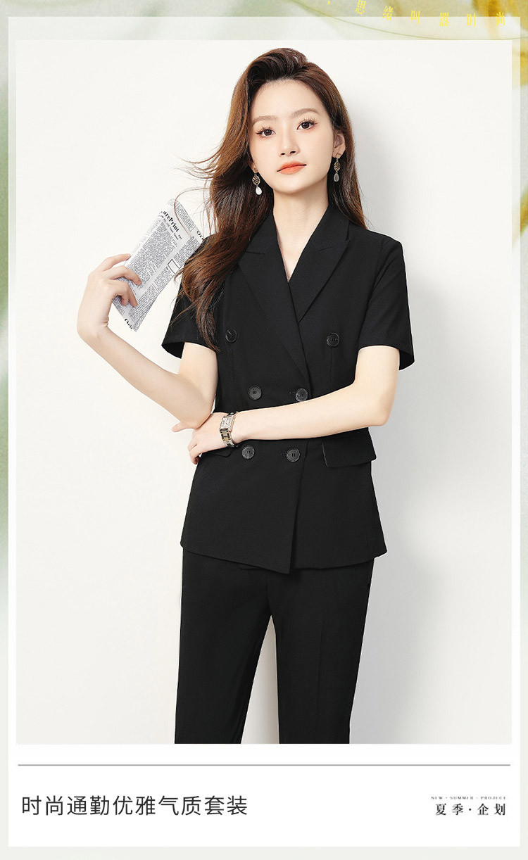 【双排扣短袖西服+长裤】罗蒙夏季女士套装商务时尚百搭两件套女