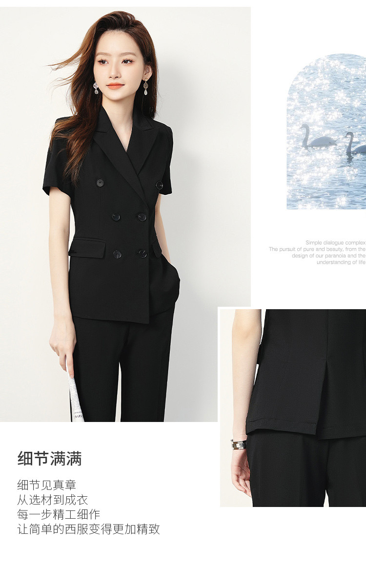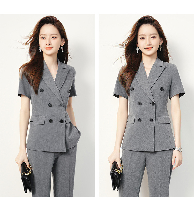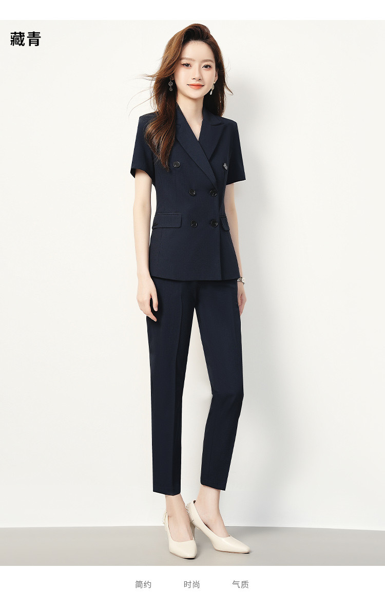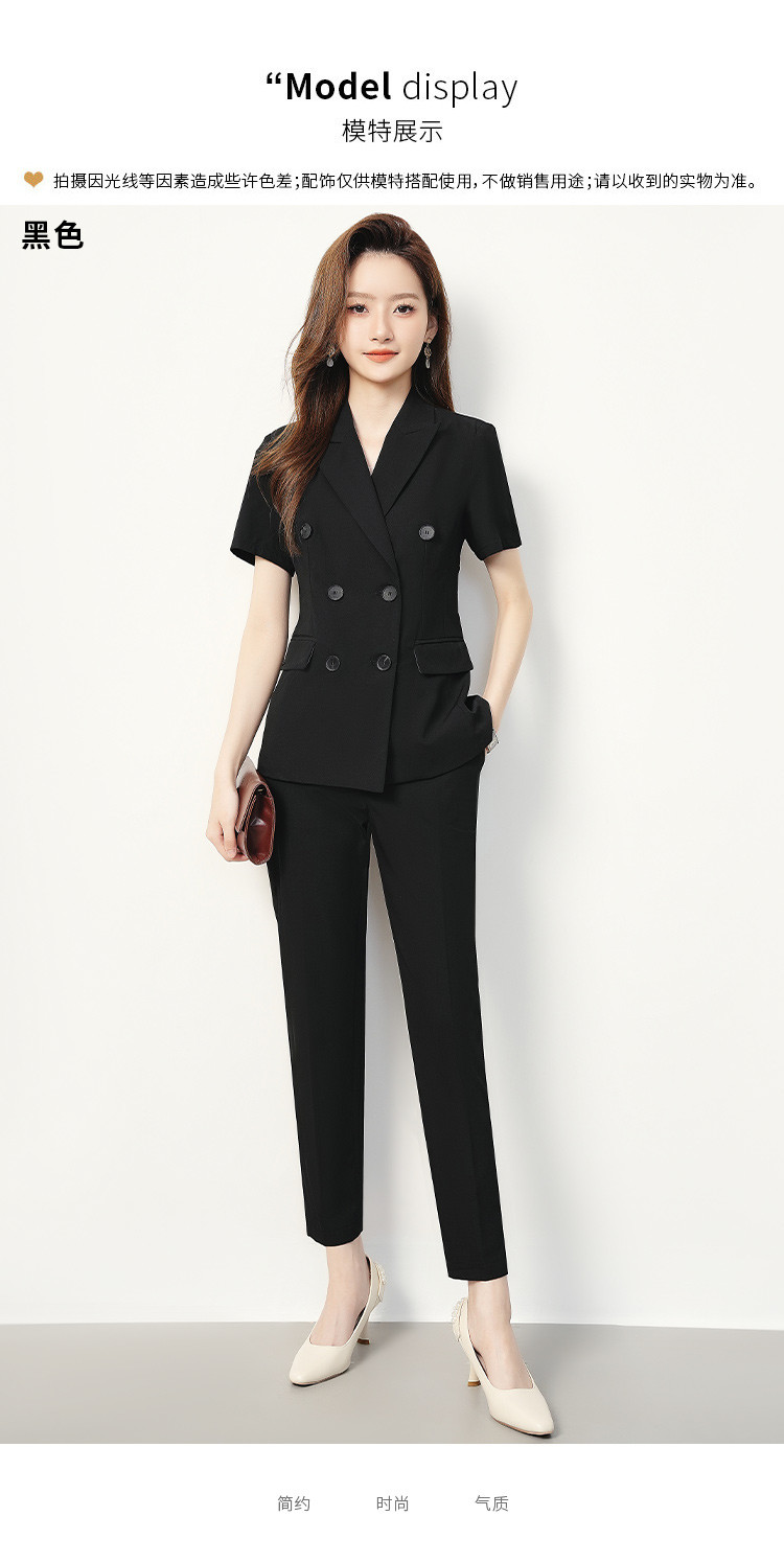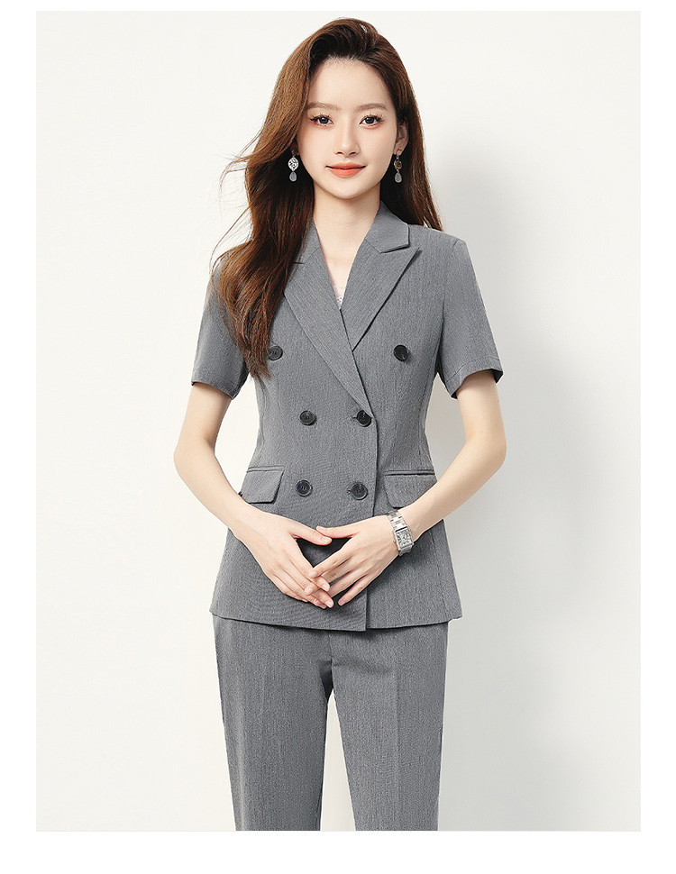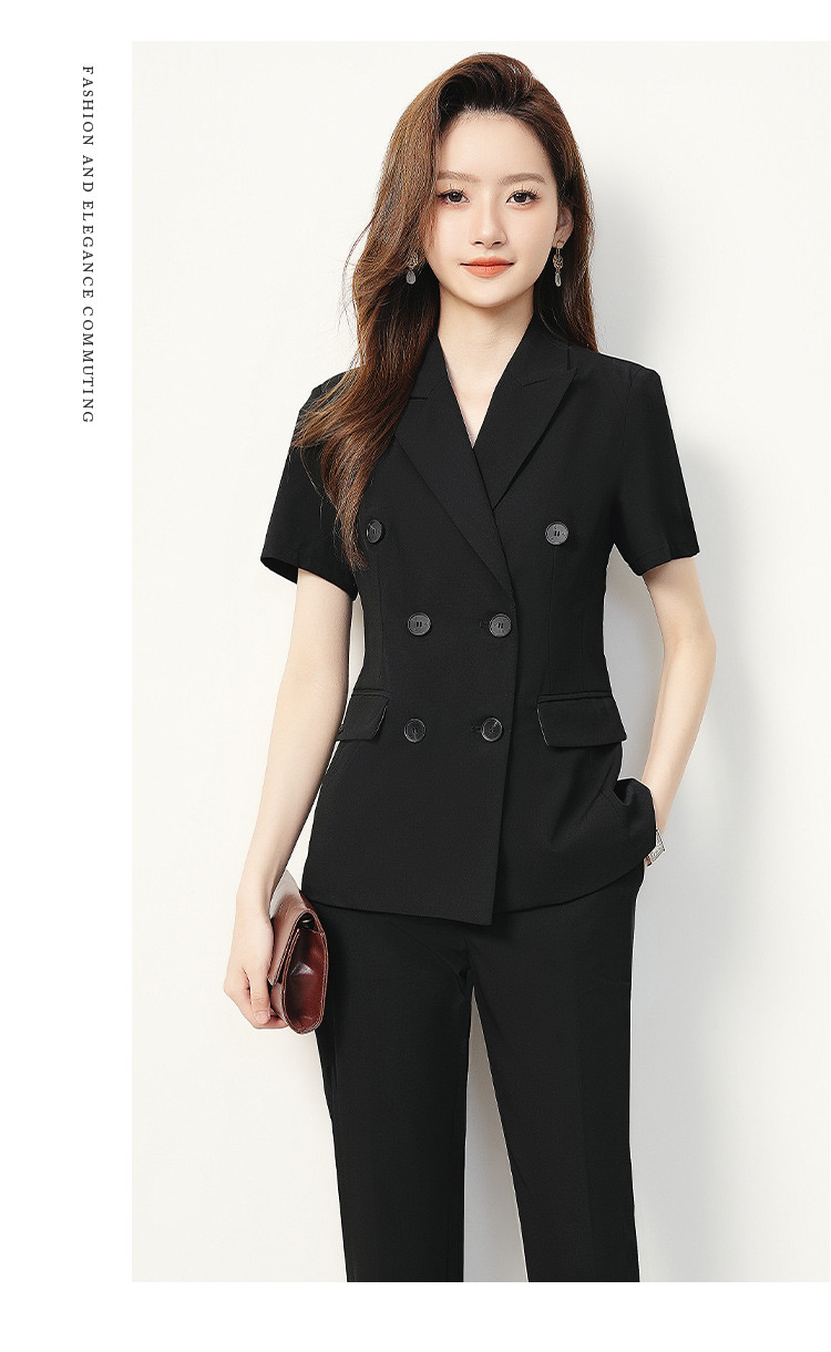 【双排扣短袖西服+长裤】罗蒙夏季女士套装商务时尚百搭两件套女