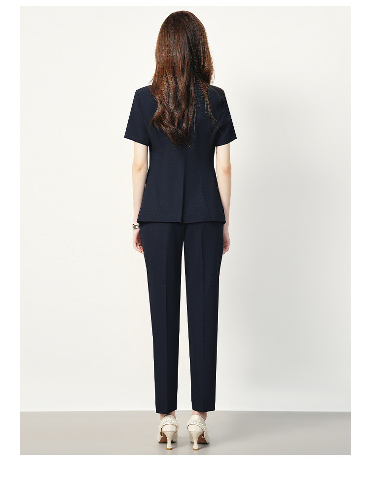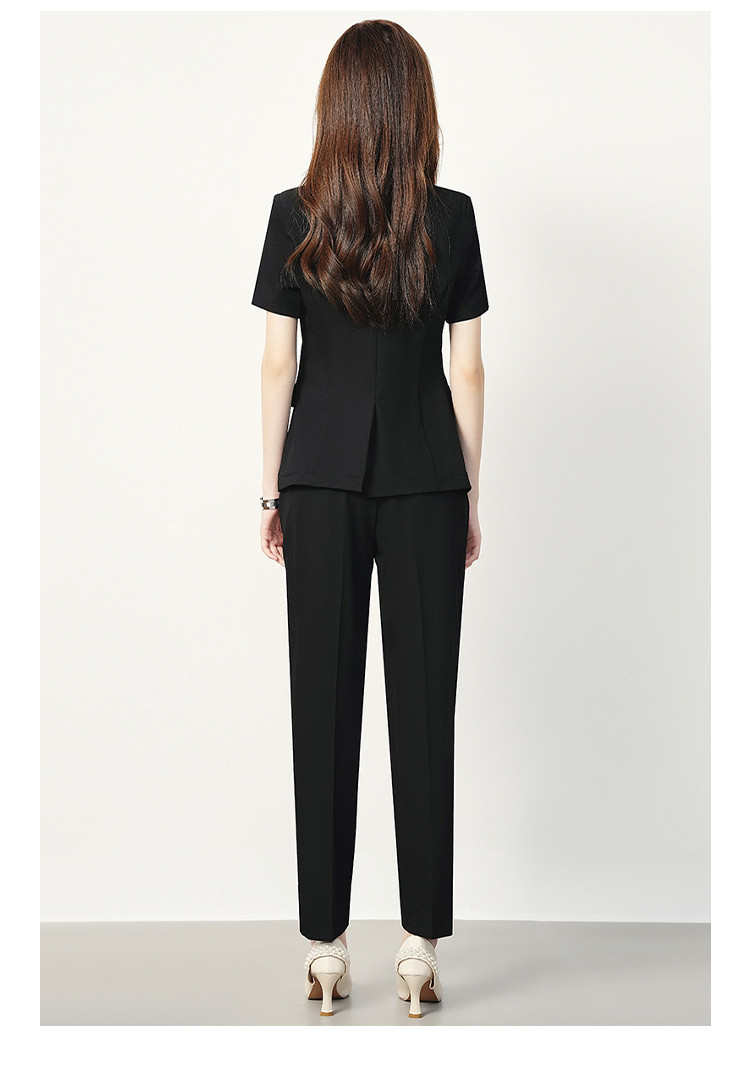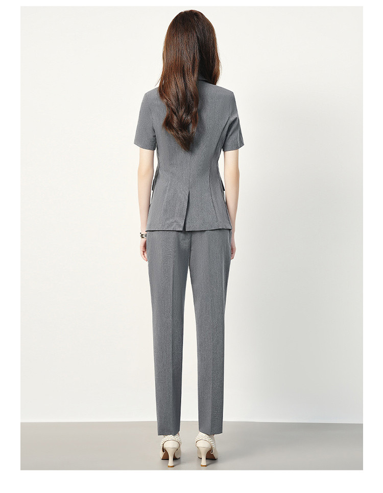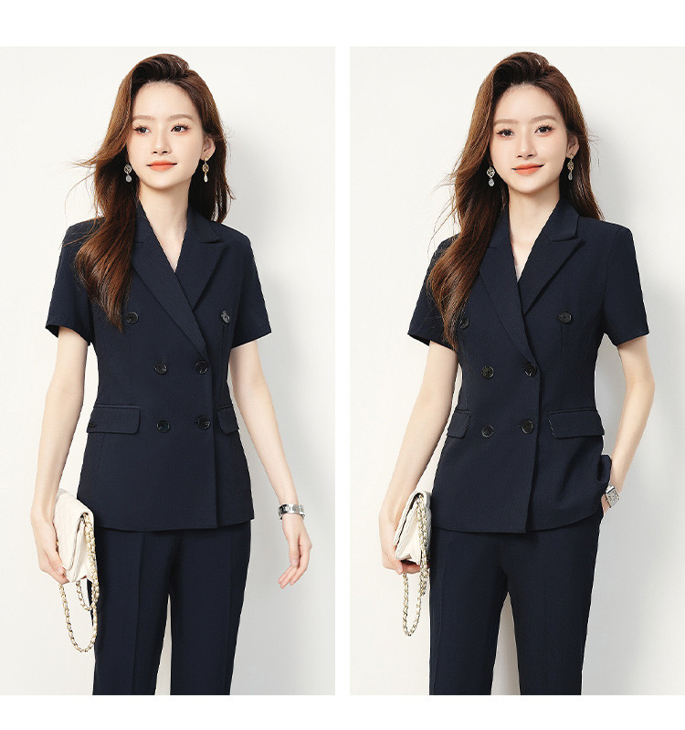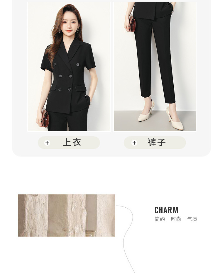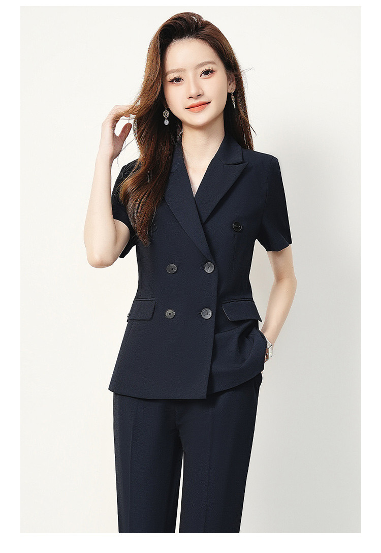 【双排扣短袖西服+长裤】罗蒙夏季女士套装商务时尚百搭两件套女