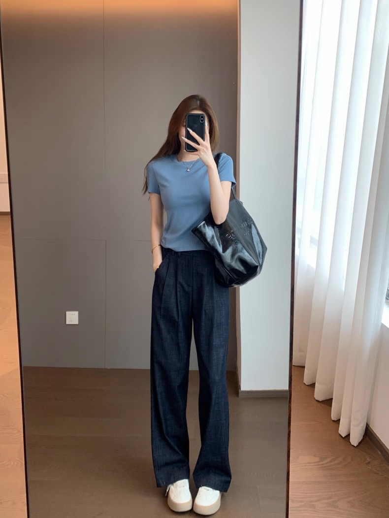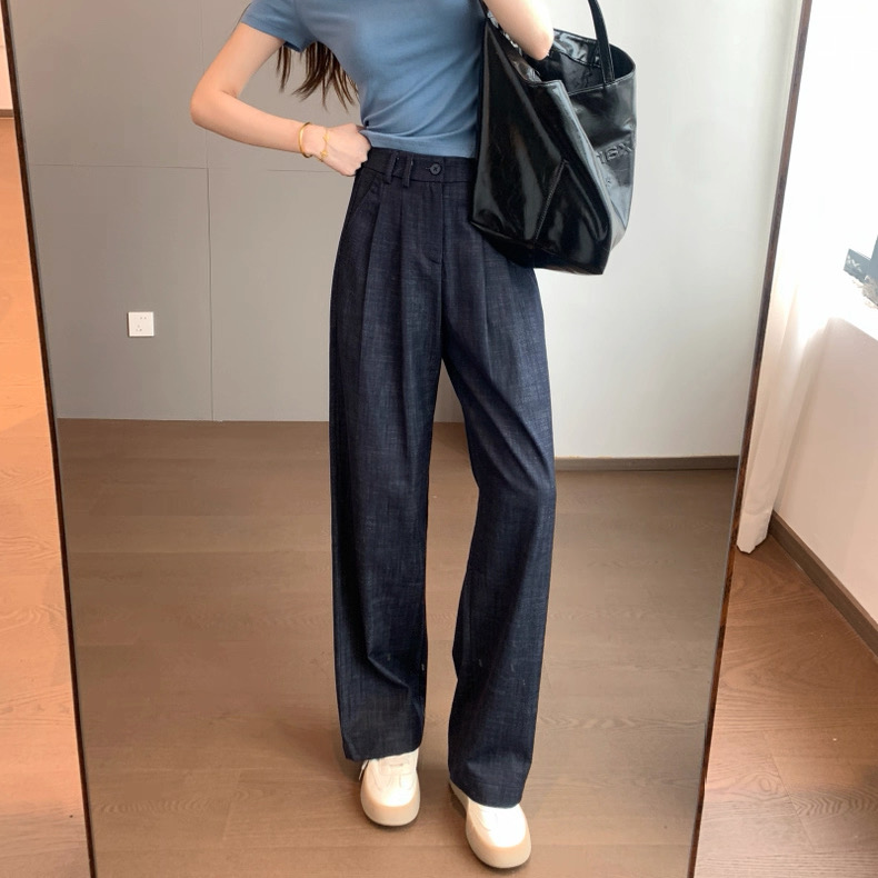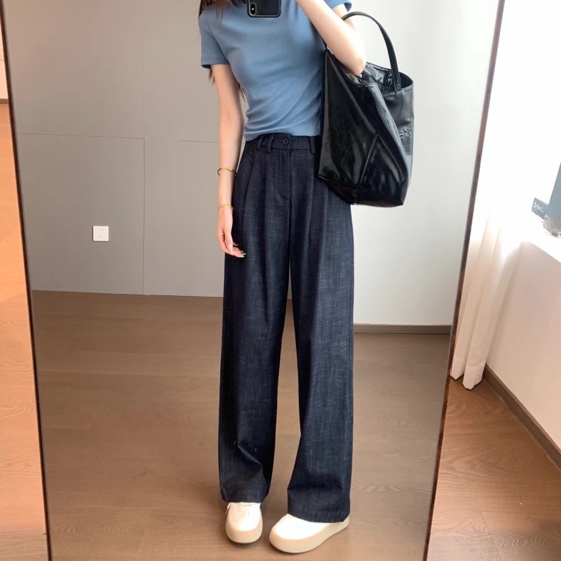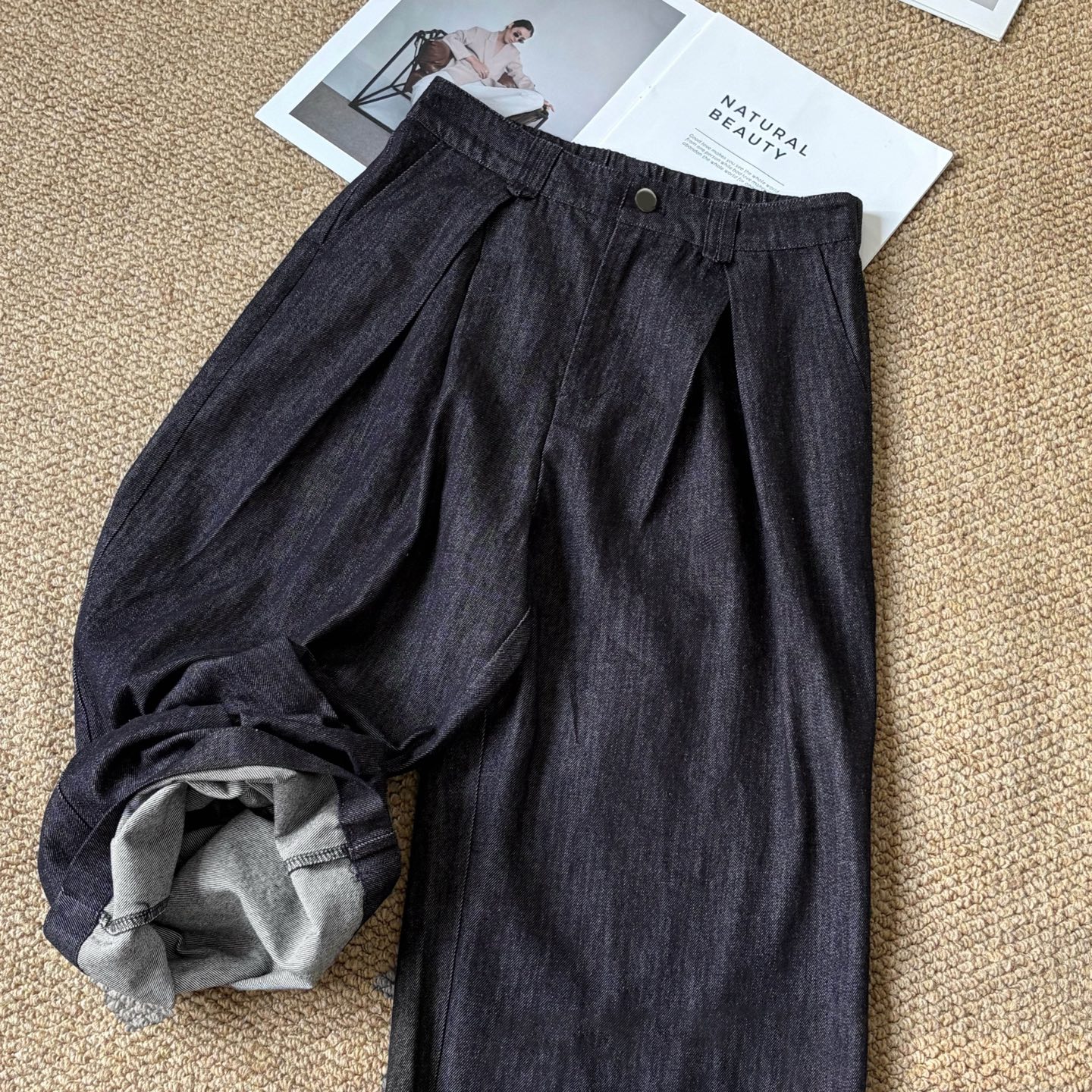 💰118元包邮, 慵懒老钱风 薄款褶皱显瘦防褪色牛仔裤直筒阔腿裤【JS3693420】 爱穿裤子的亲, 这款绝对让大家放心入 薄款的面料, 带点竹节纹理的竖纹hen显瘦哈 厚度的话很适合春夏季节穿的
