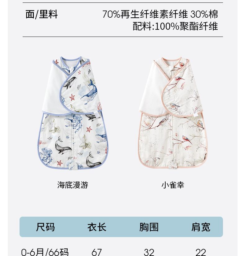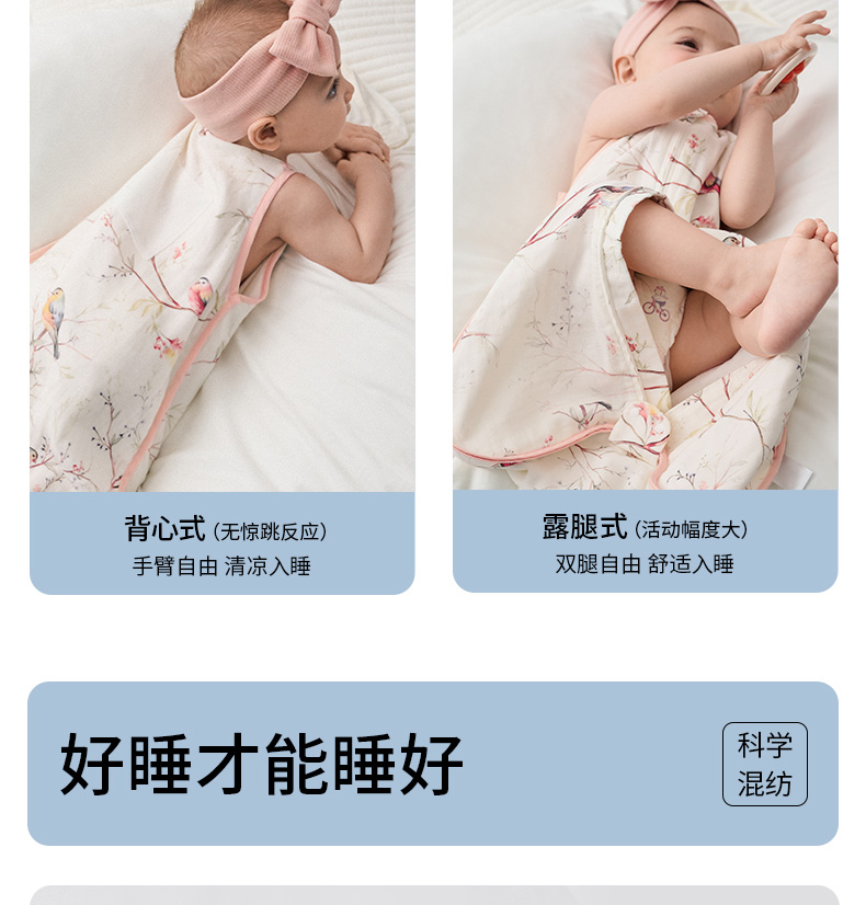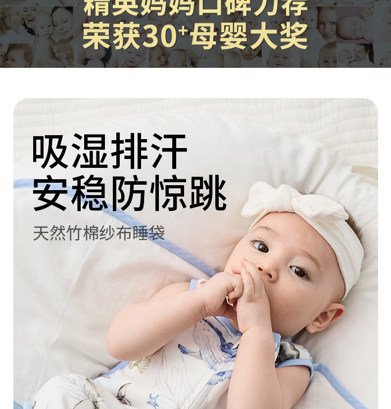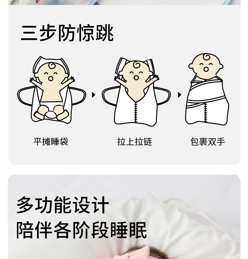 【宝宝安睡】嫚熙婴儿睡袋新生儿防惊跳神器初生儿防踢被宝宝纱布睡袋四季通用