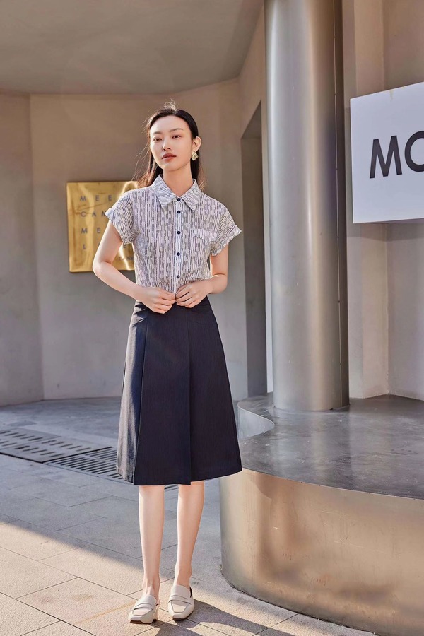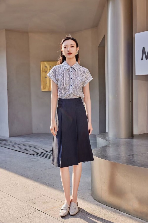 Le Malene 通勤简约百搭藏蓝色半裙 18326