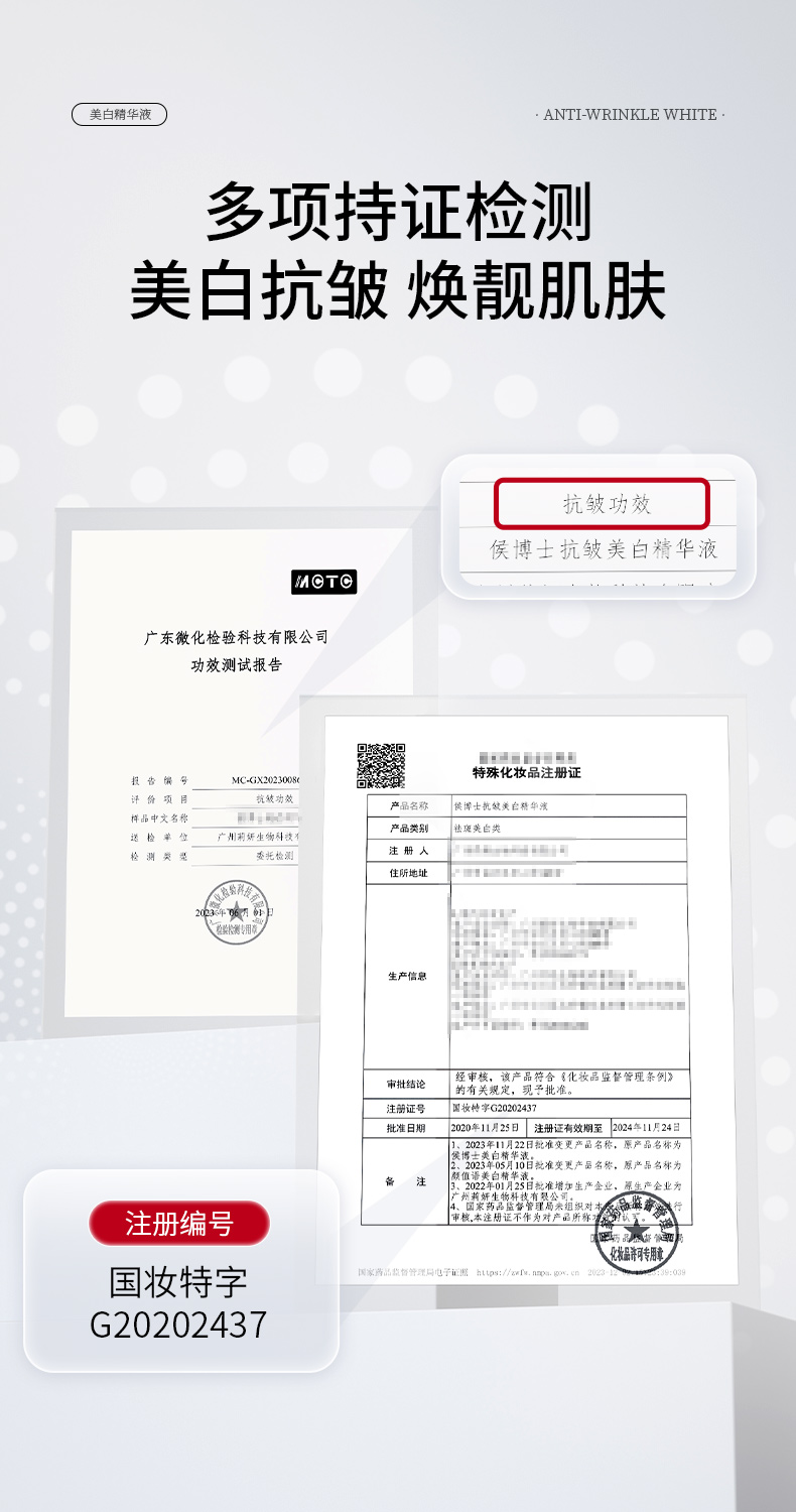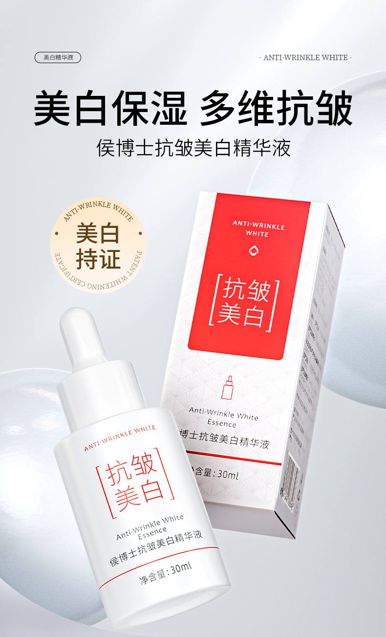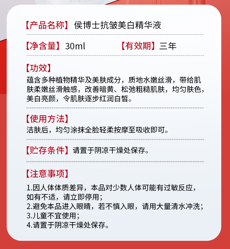 侯博士抗皱美白精华液改善皮肤暗沉温和美白亮颜补水保湿抗皱淡纹