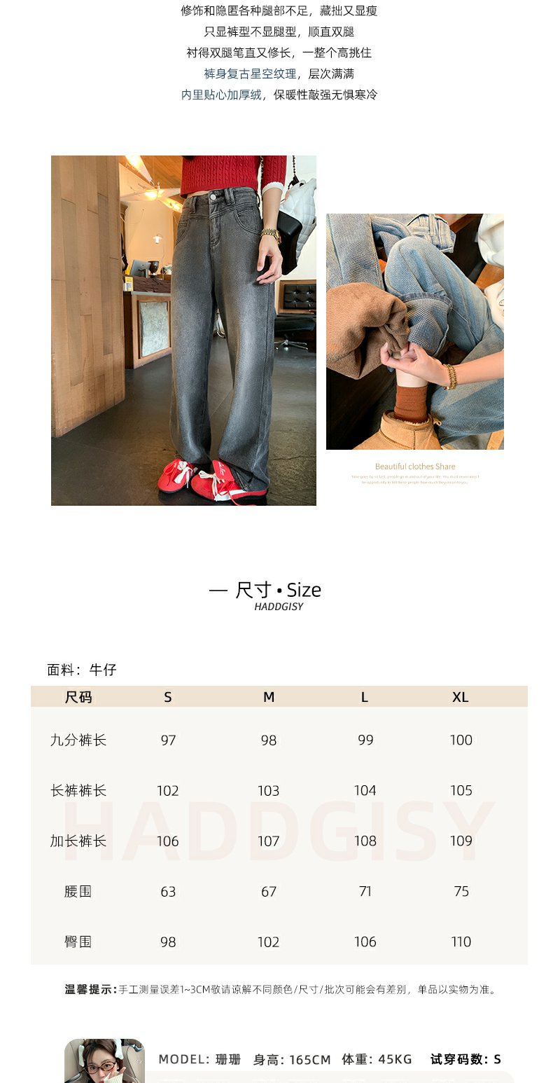 <曾小咸推荐>复古星空纹阔腿牛仔裤 不加绒109.99!加绒119.99!