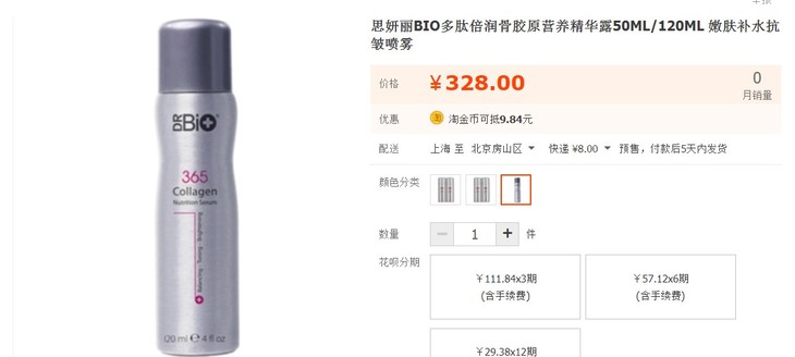 商品名称:思妍丽BIO骨胶原营养喷雾精华露120ml 无盒/*3