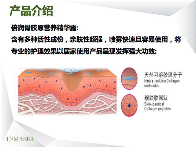 1亲肤胶原肽,有效传递肌肤再生信号并刺激肌肤自身的胶原合成,恢复肌肤活力,肌肤看起来更加年轻。
