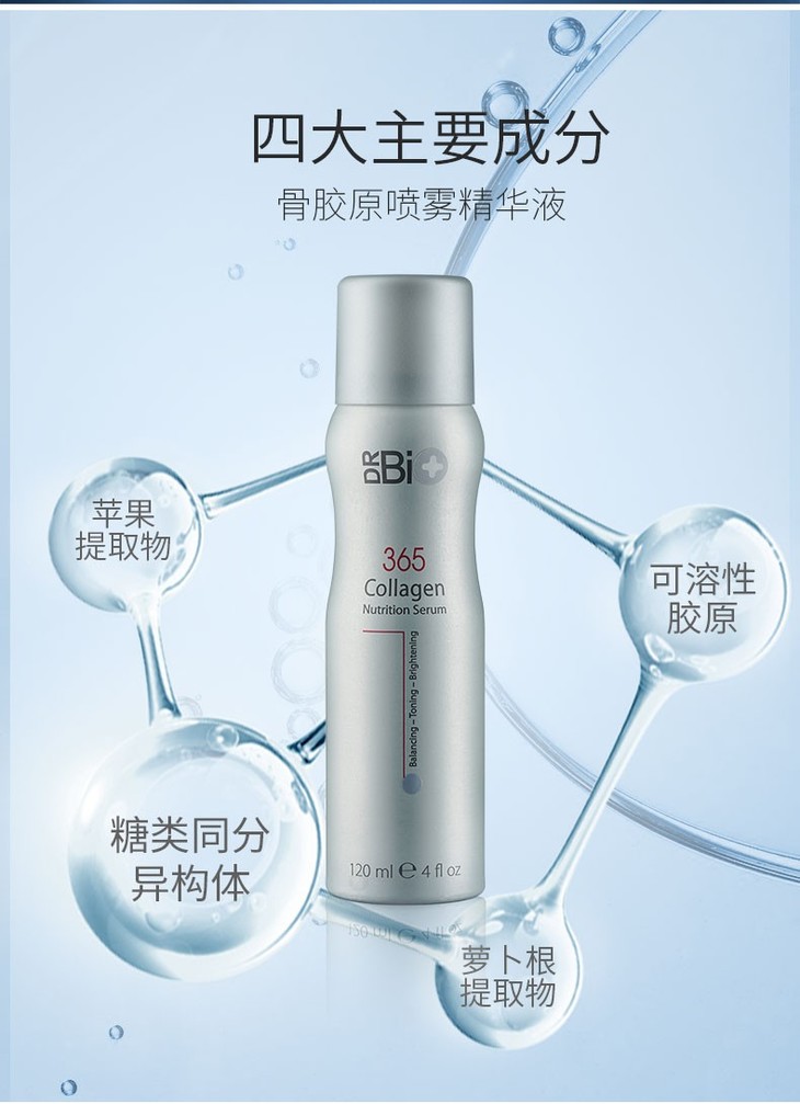 DR.Bio倍润骨胶原营养精华露是思妍丽携手德国尖端生物实验室独家推出的精华喷雾,产品配方由自然科学家精心设计、研发,生产均在德国完成,上市前由皮肤科及眼科医师测试,确保成分安全有效。