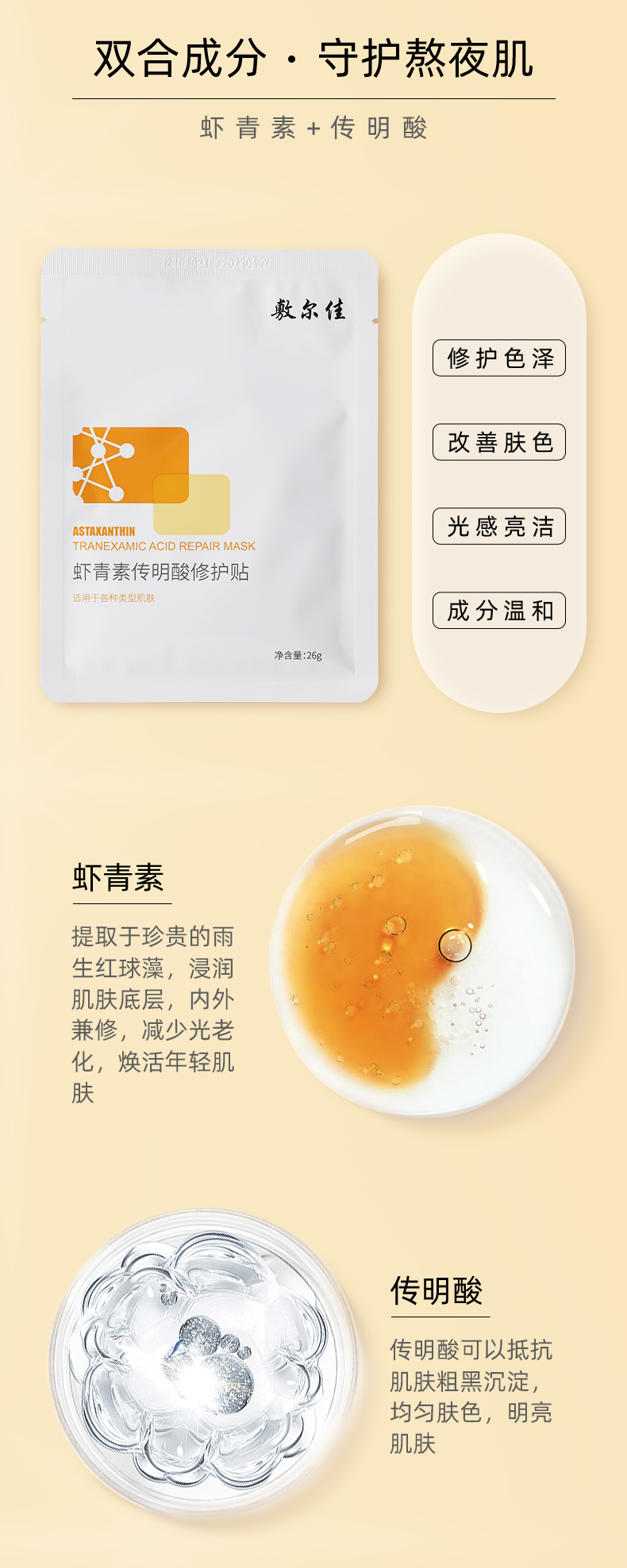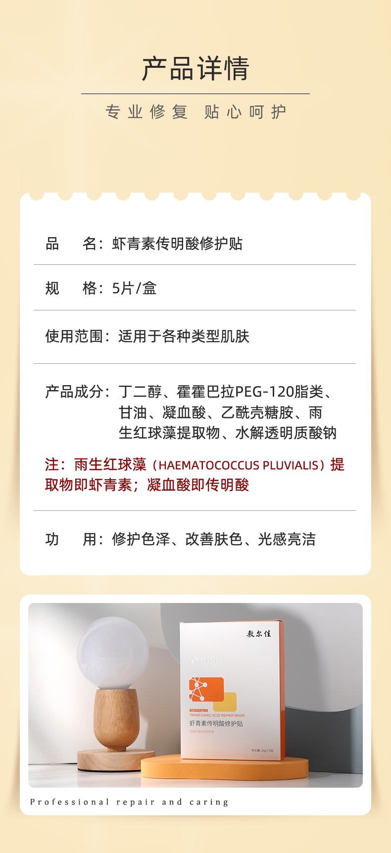 【买1赠1】敷尔佳 花季虾青素传明酸修护贴(灯泡)5片/盒