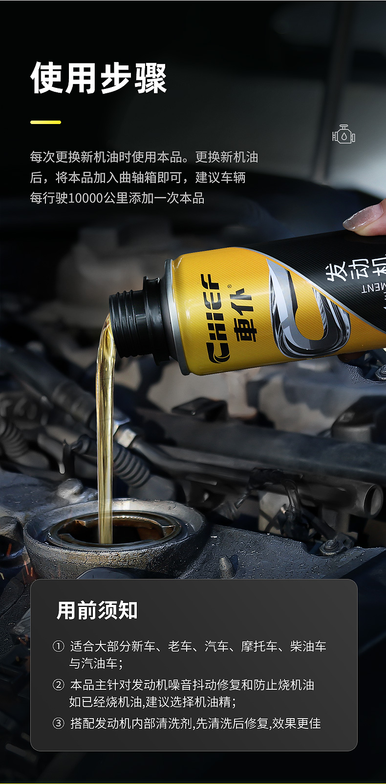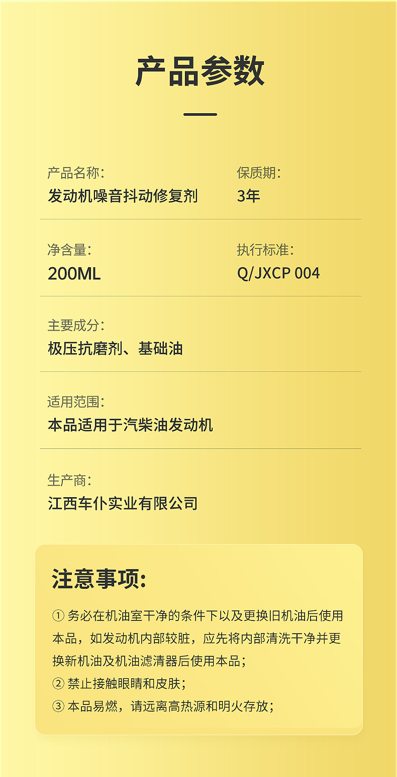 车仆发动机噪音抖动修复剂冒蓝烟保护发动机烧机油降低磨损减噪音
