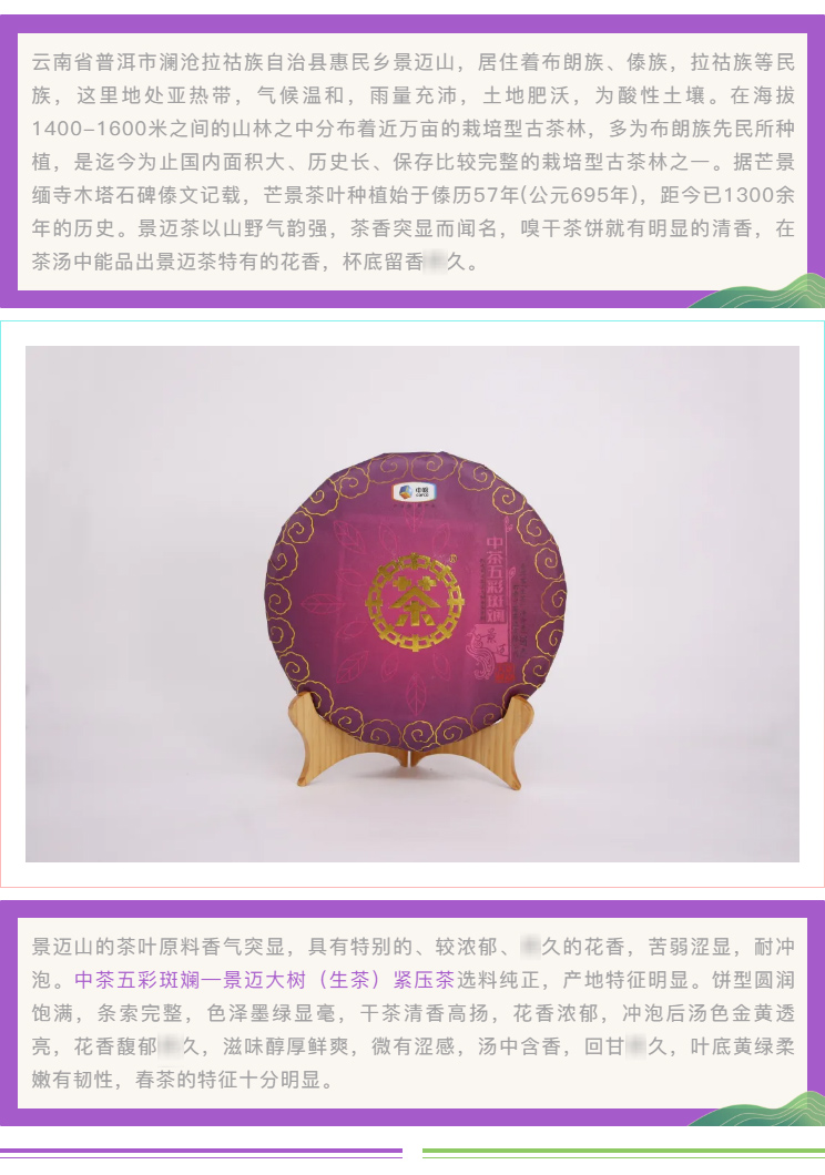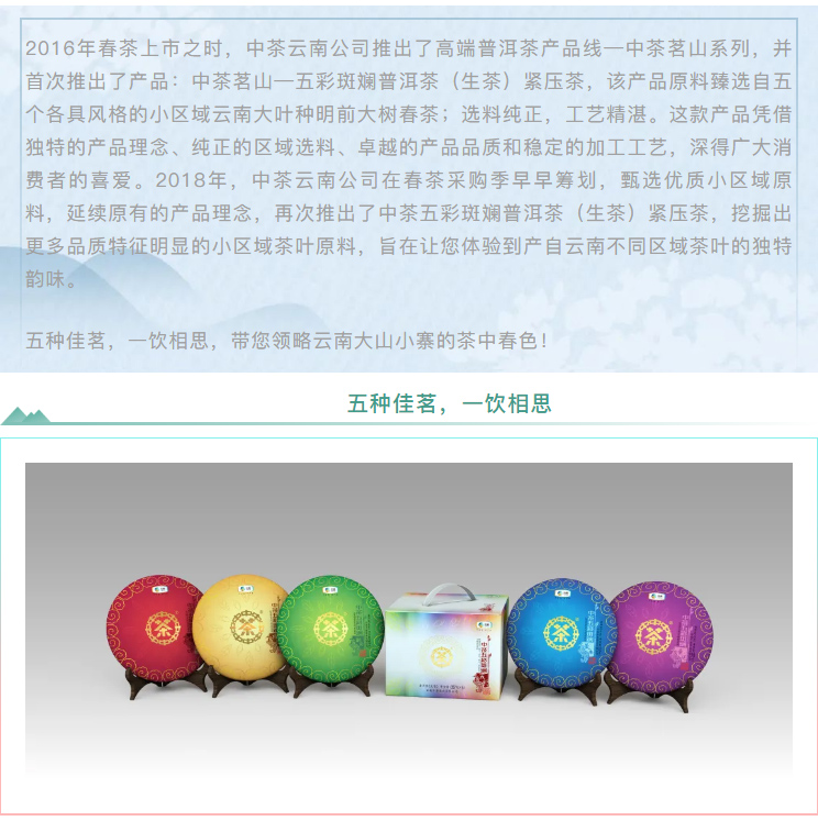中茶普洱茶生茶 2018年中茶茗山五彩斑斓普洱生茶饼套装一提5饼装