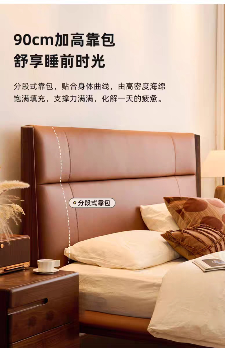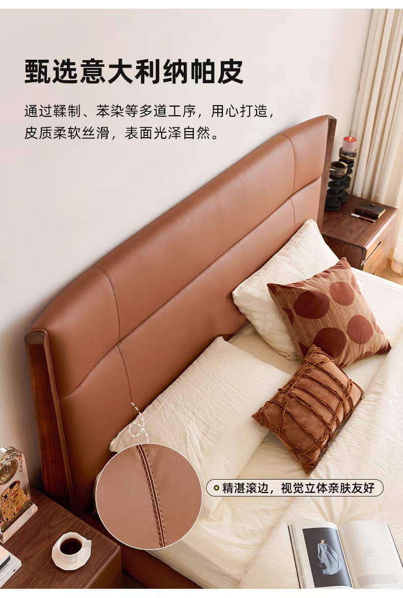 【中古风-软床CH-08】中古风格/杠体床/纳帕半皮/1.8米床