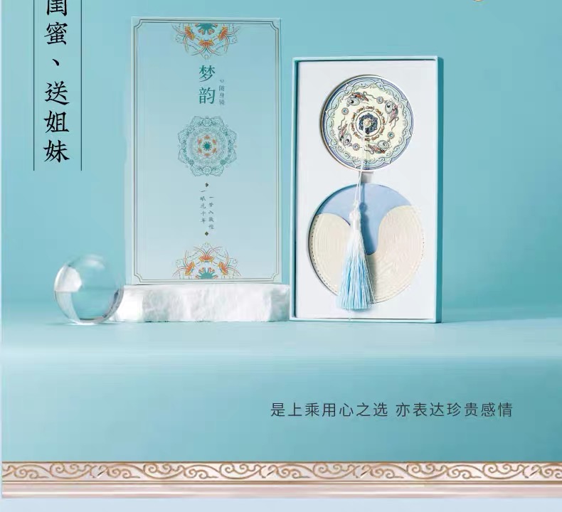 敦煌研究院梦韵随身镜便携小镜子带流苏皮套国风生日礼物送闺蜜