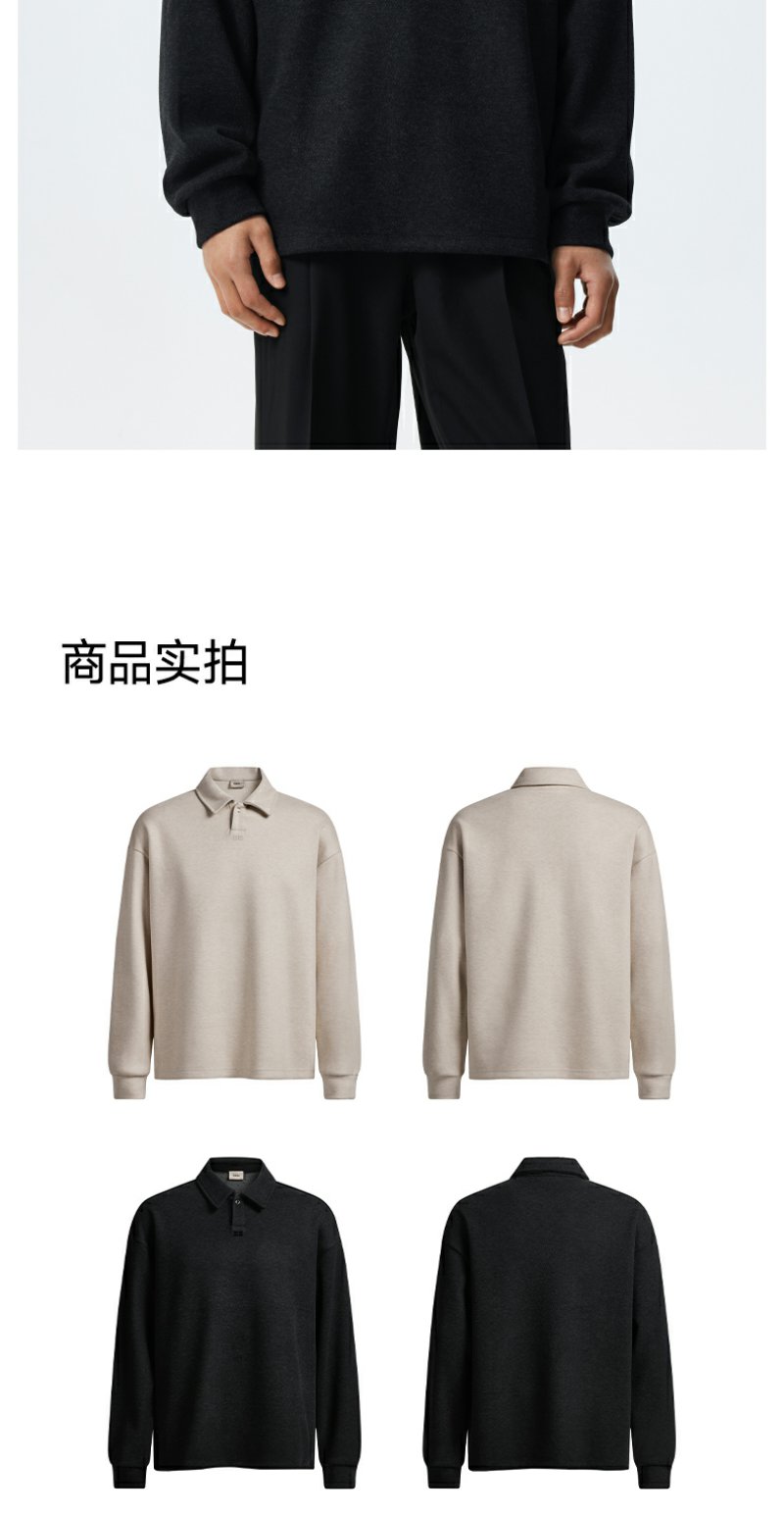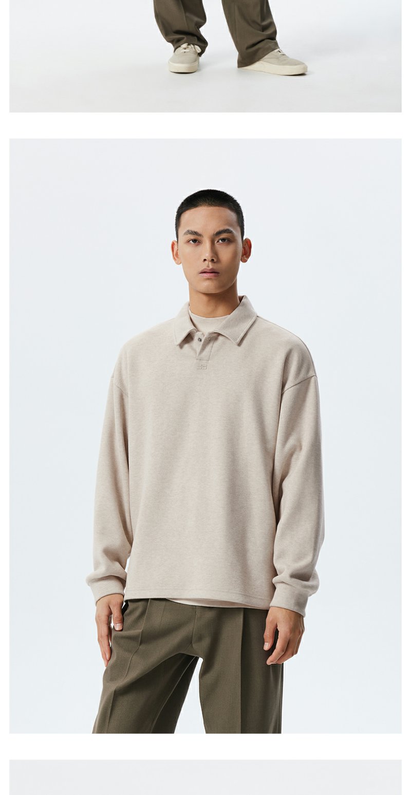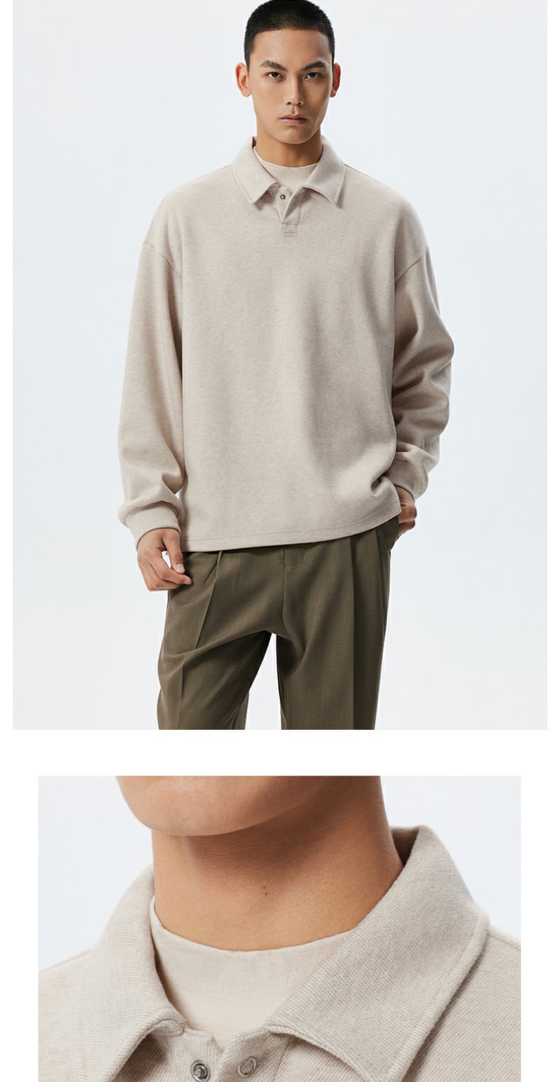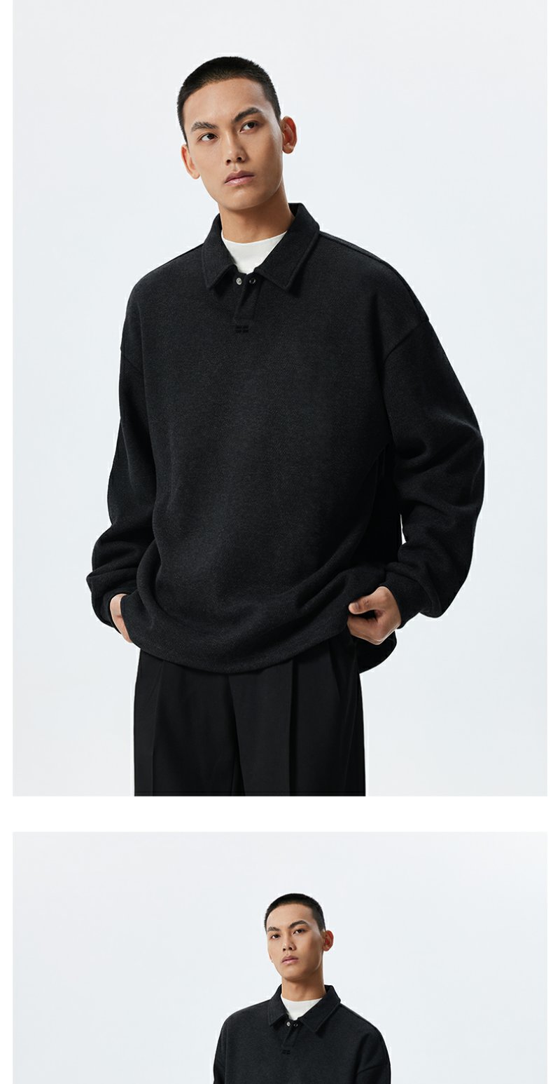 CHINISM赤尘 easy系列 仿毛织POLO领卫衣男春季套头磨毛翻领上衣