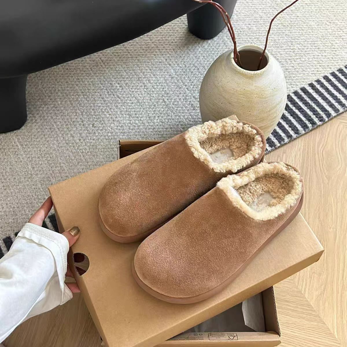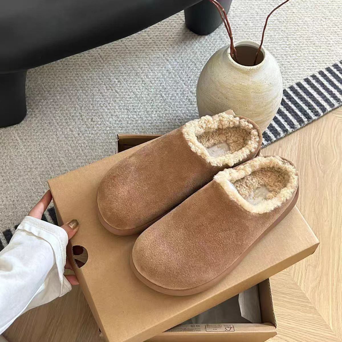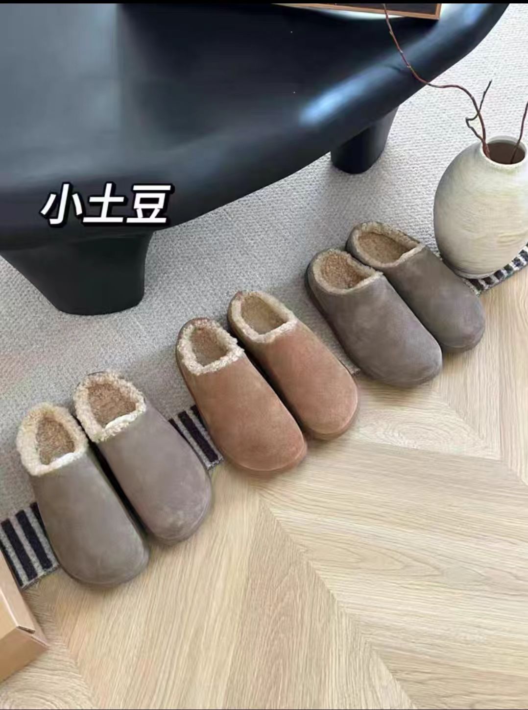 小土豆勃肯鞋皮毛一体雪地靴包头半拖