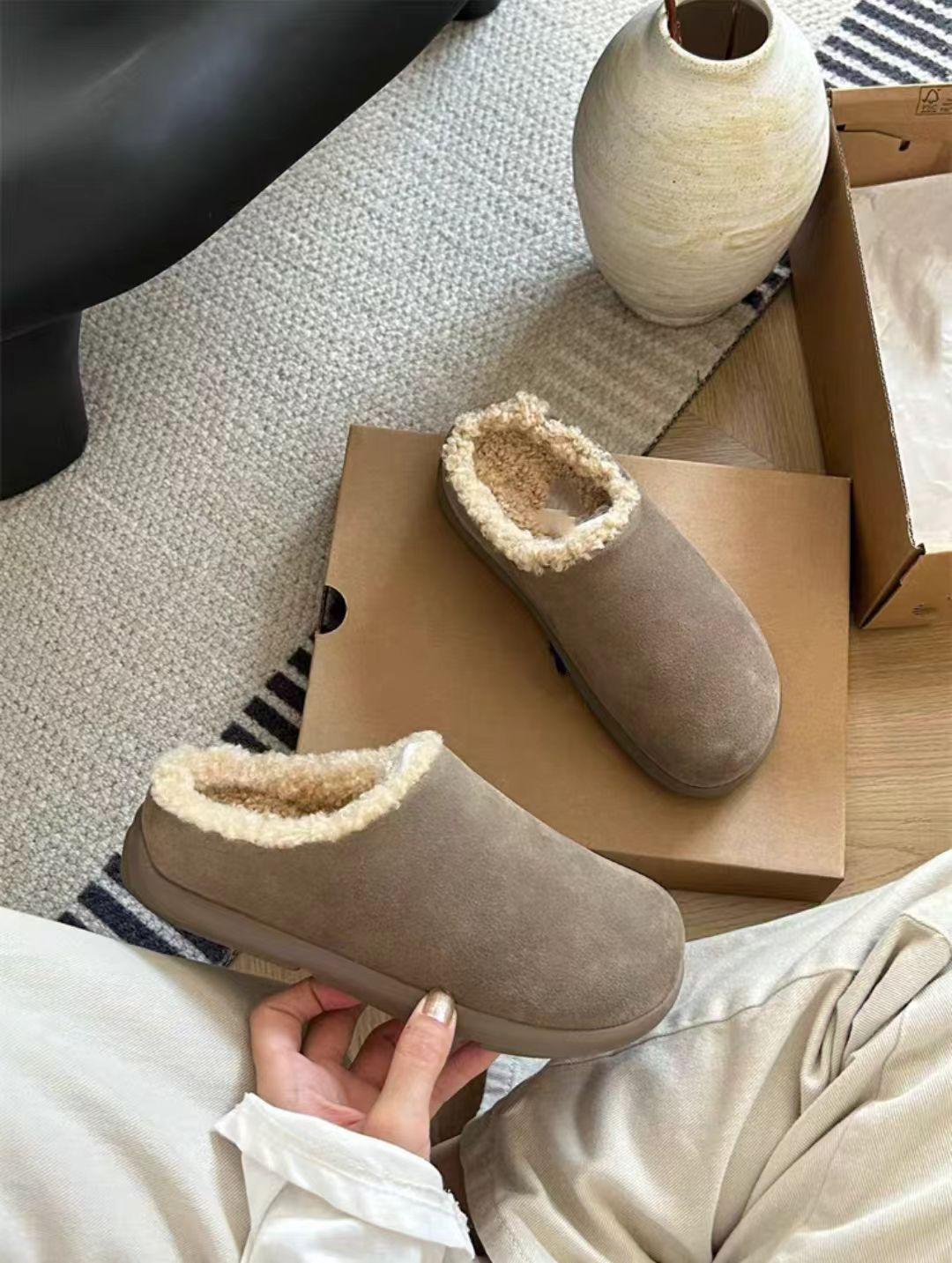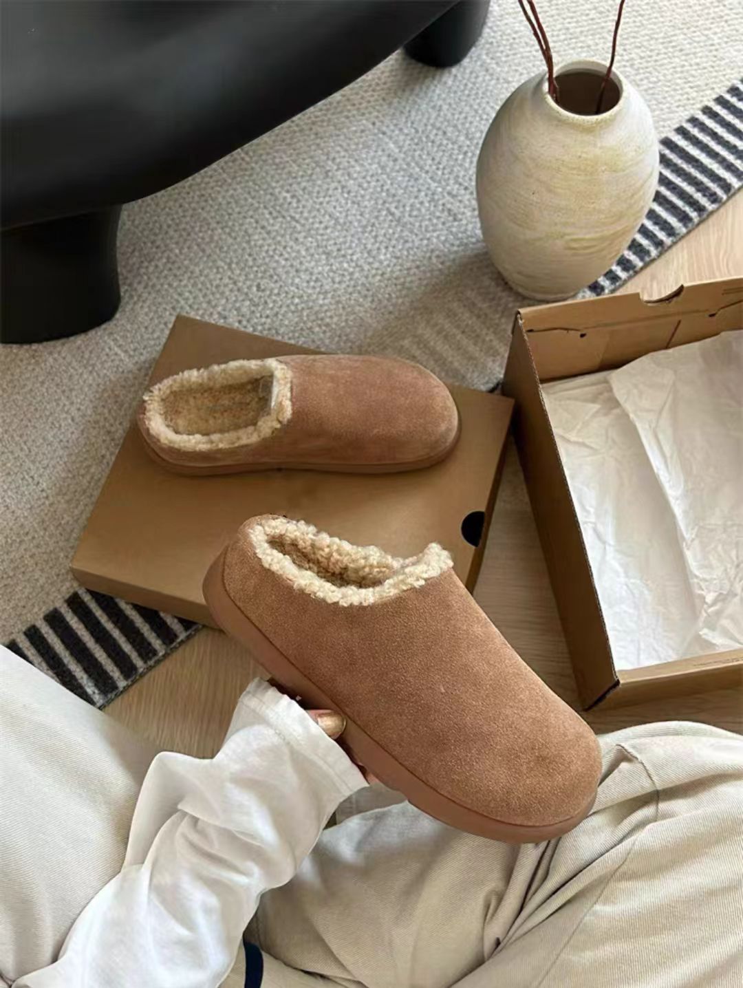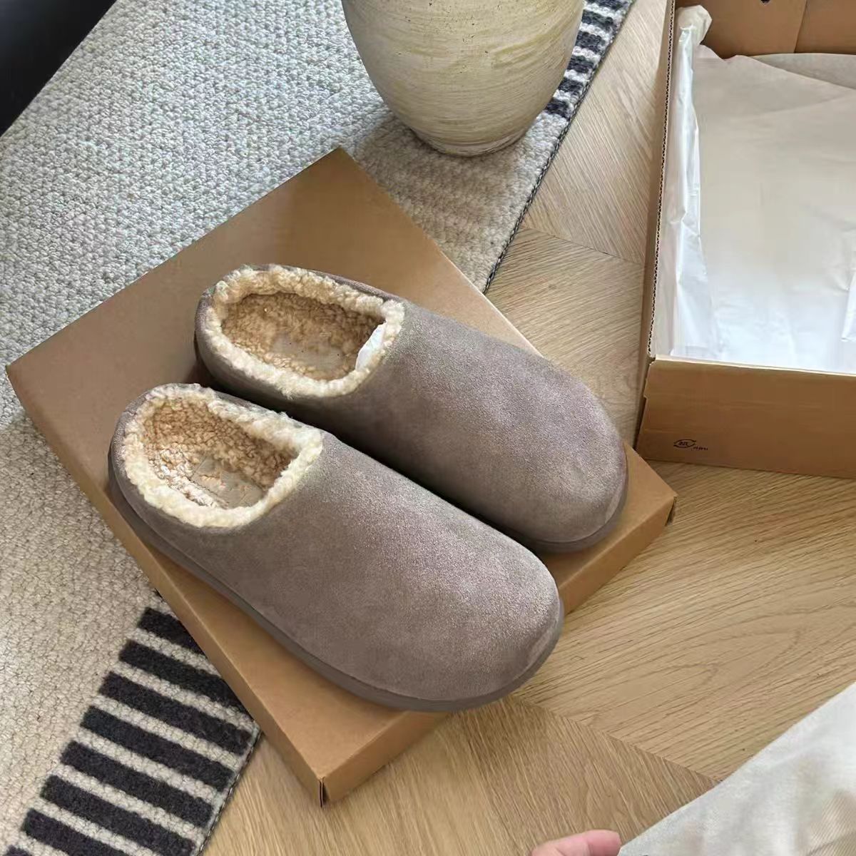 小土豆勃肯鞋皮毛一体雪地靴包头半拖