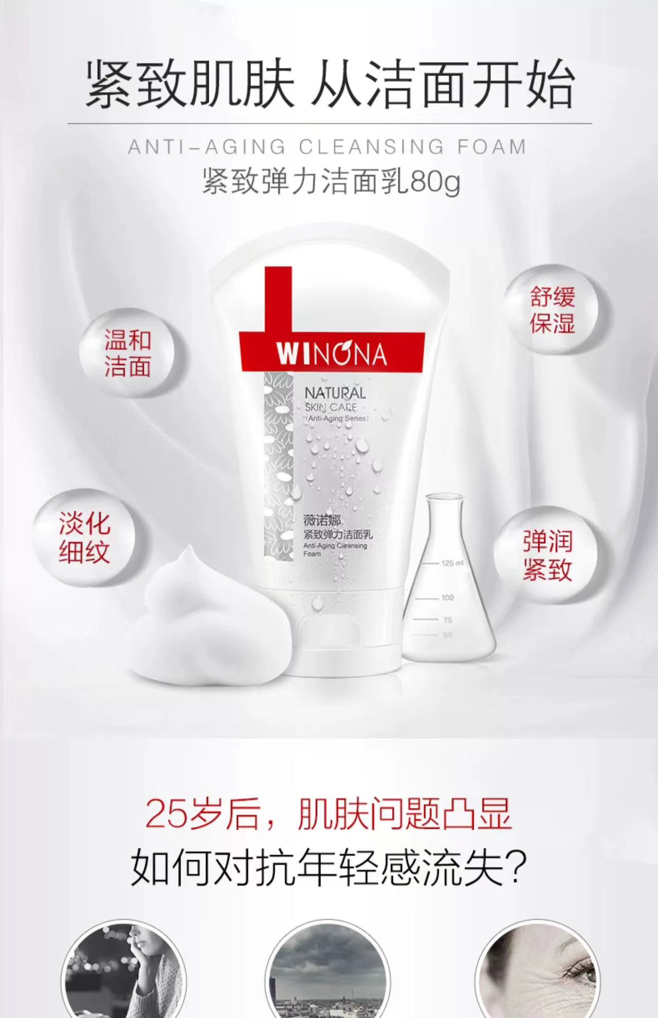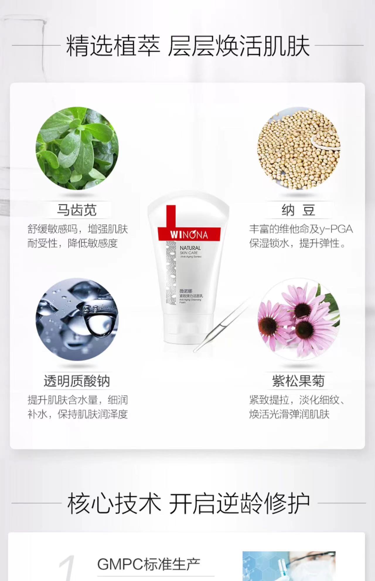 薇诺娜·紧致弹力洁面乳提拉淡化细纹温和清洁舒缓保湿洗面奶80g