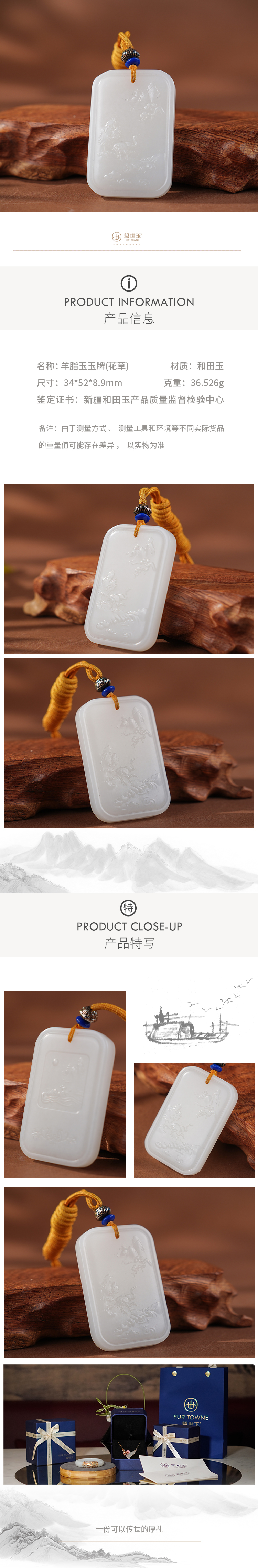 「年礼优选」【鹤云杉】羊脂白玉仙境山水牌