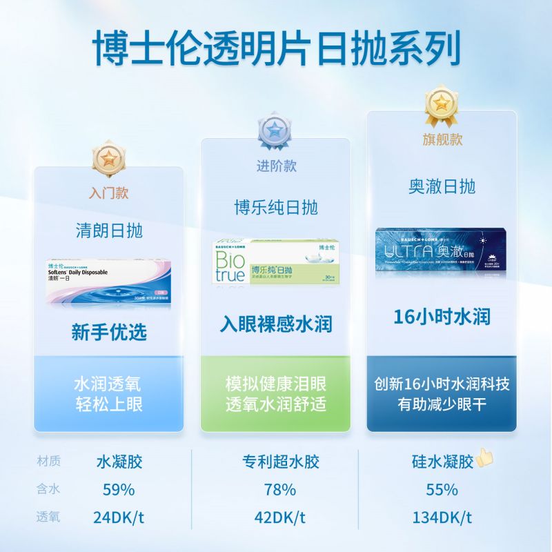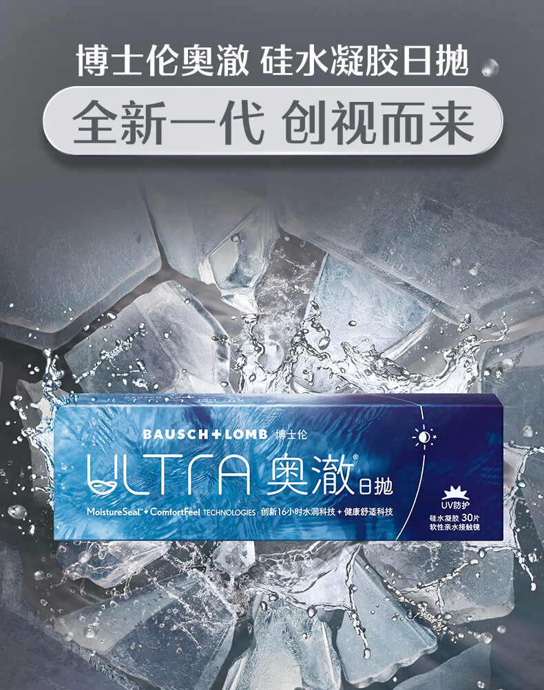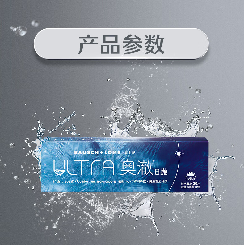【买2件7折】博士伦ULTRA奥澈硅水凝胶日抛隐形近视眼镜30片/盒