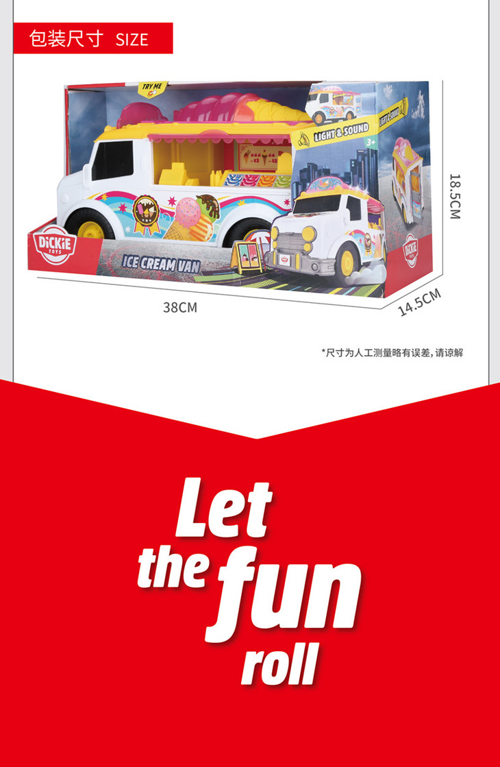 德国DICKIETOYS音乐冰淇淋车冲浪车过家家玩具男孩女孩生日礼物