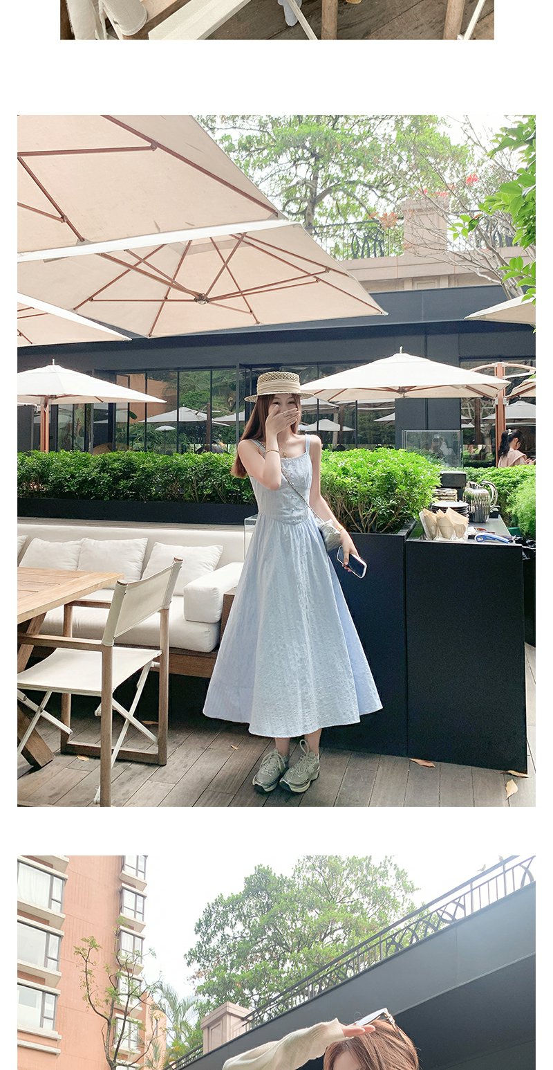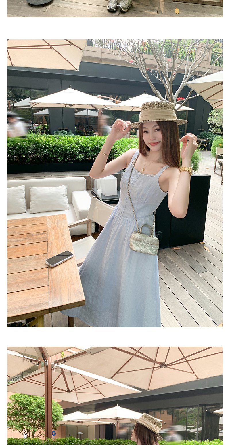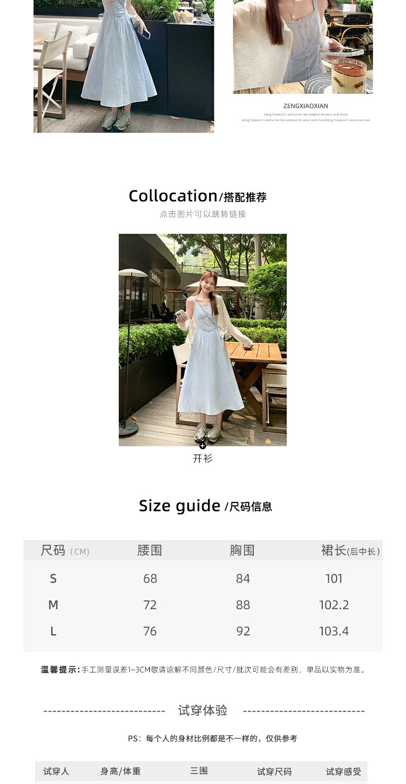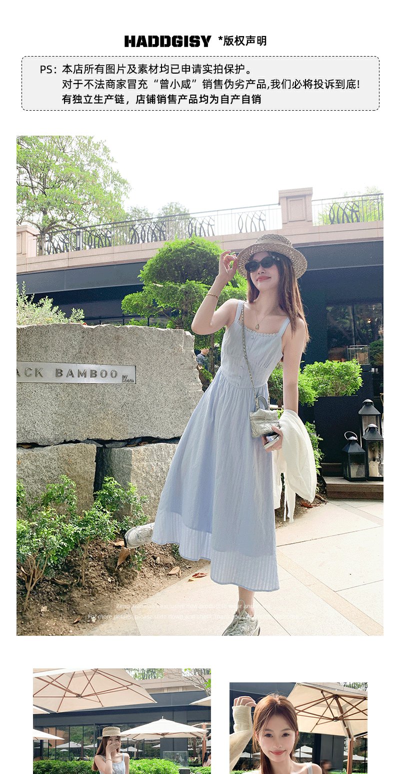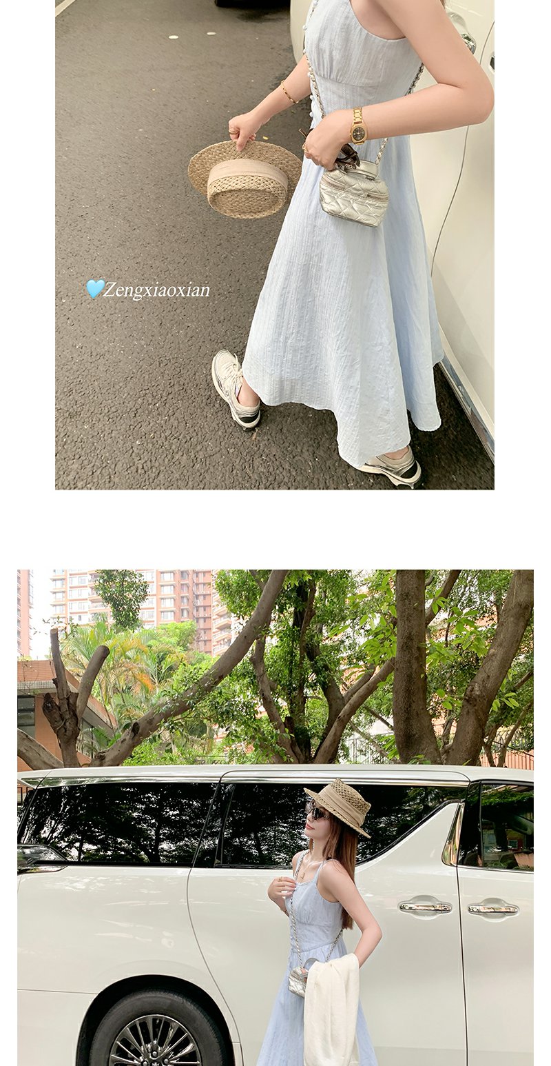 <曾小咸推荐>法式气质浅蓝色收腰显瘦吊带连衣裙
