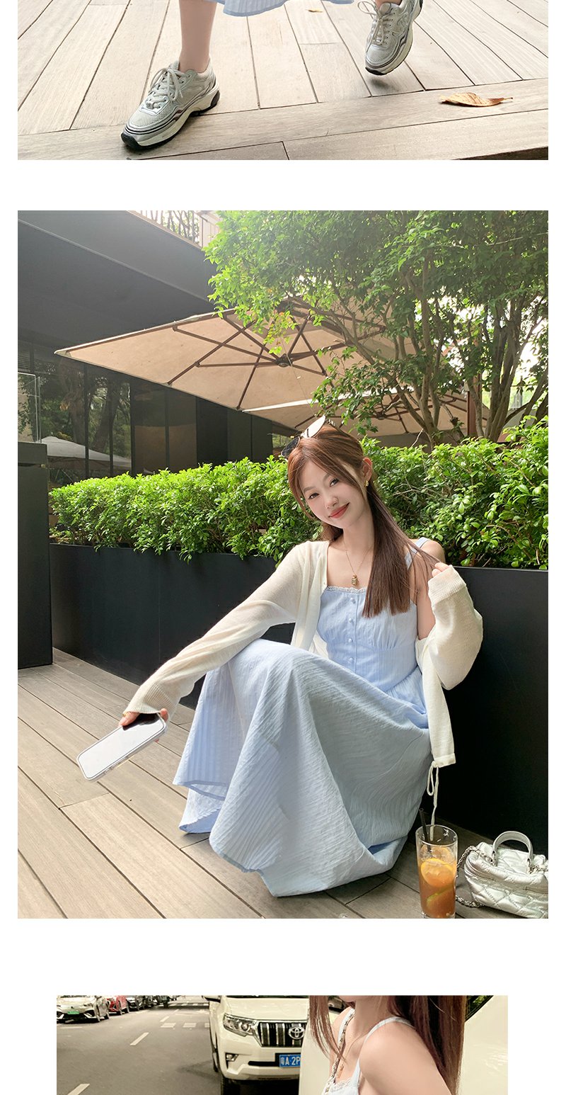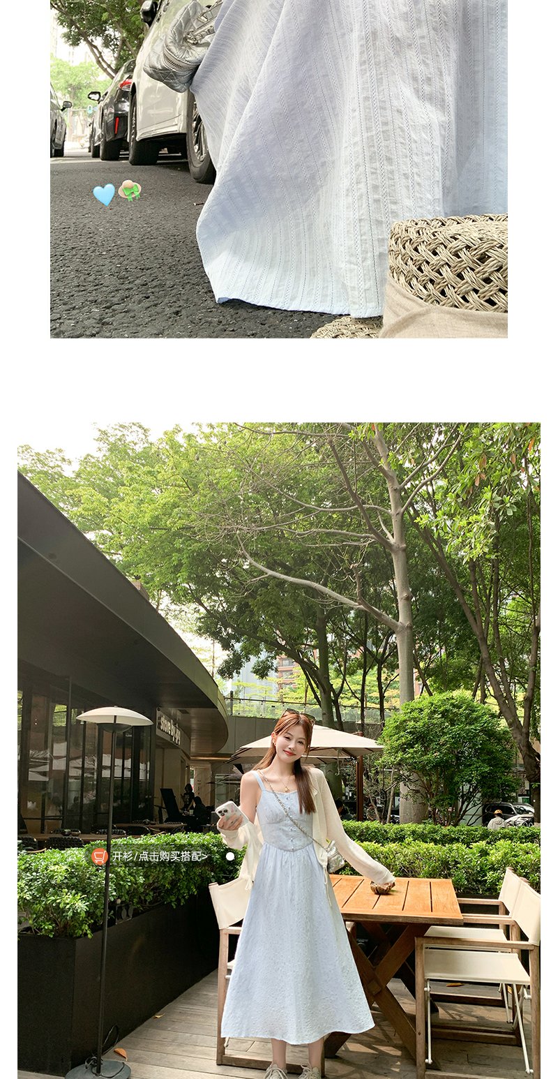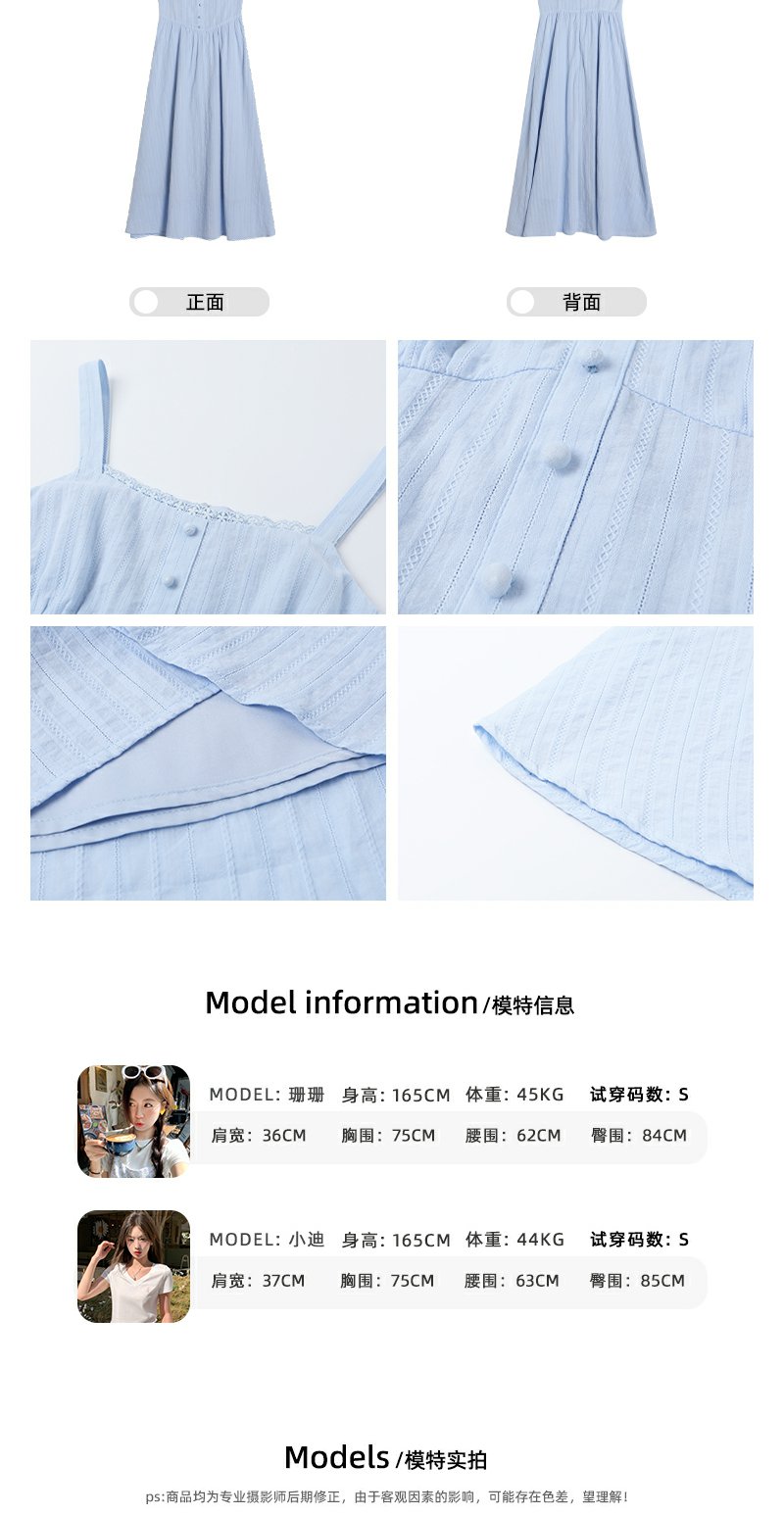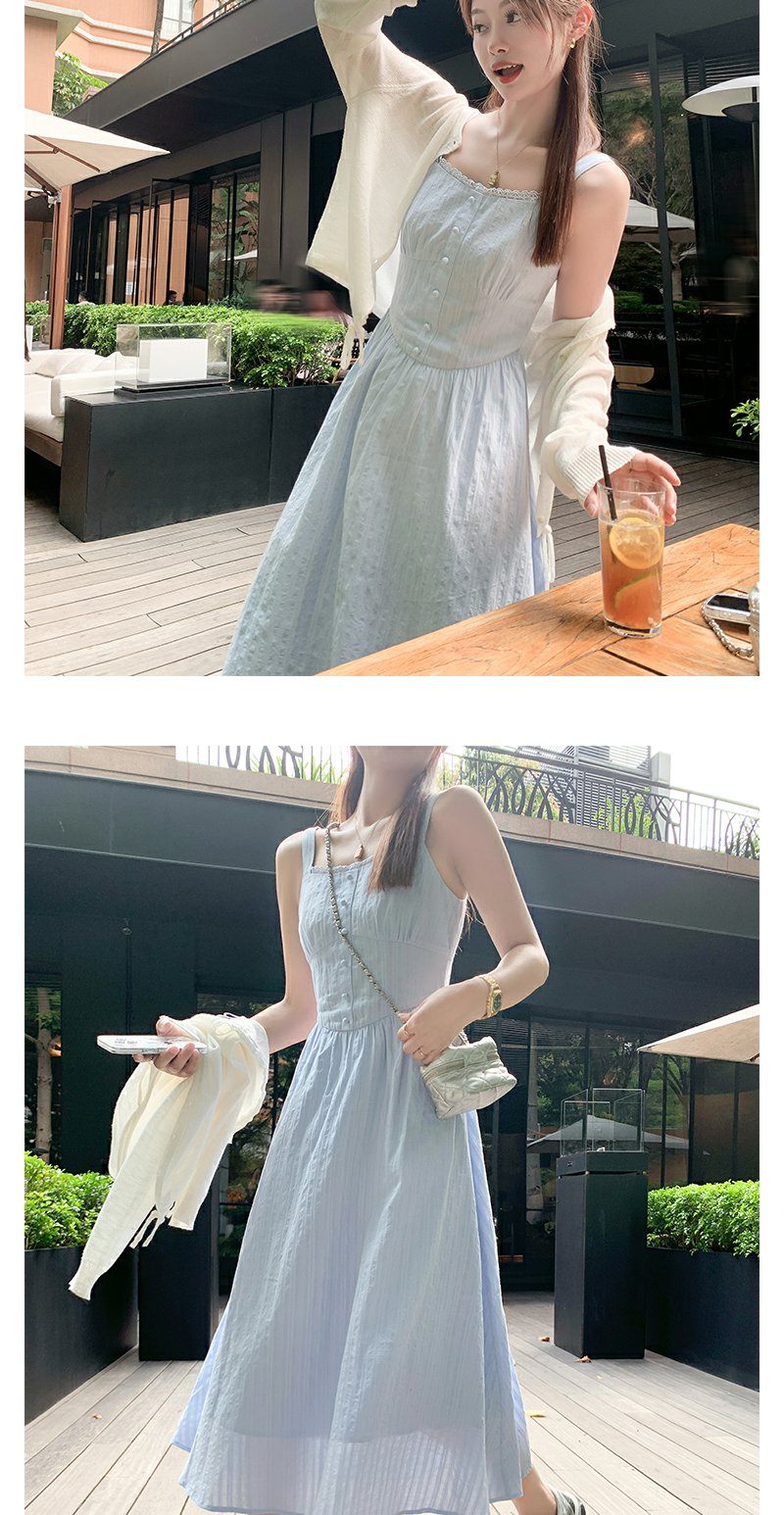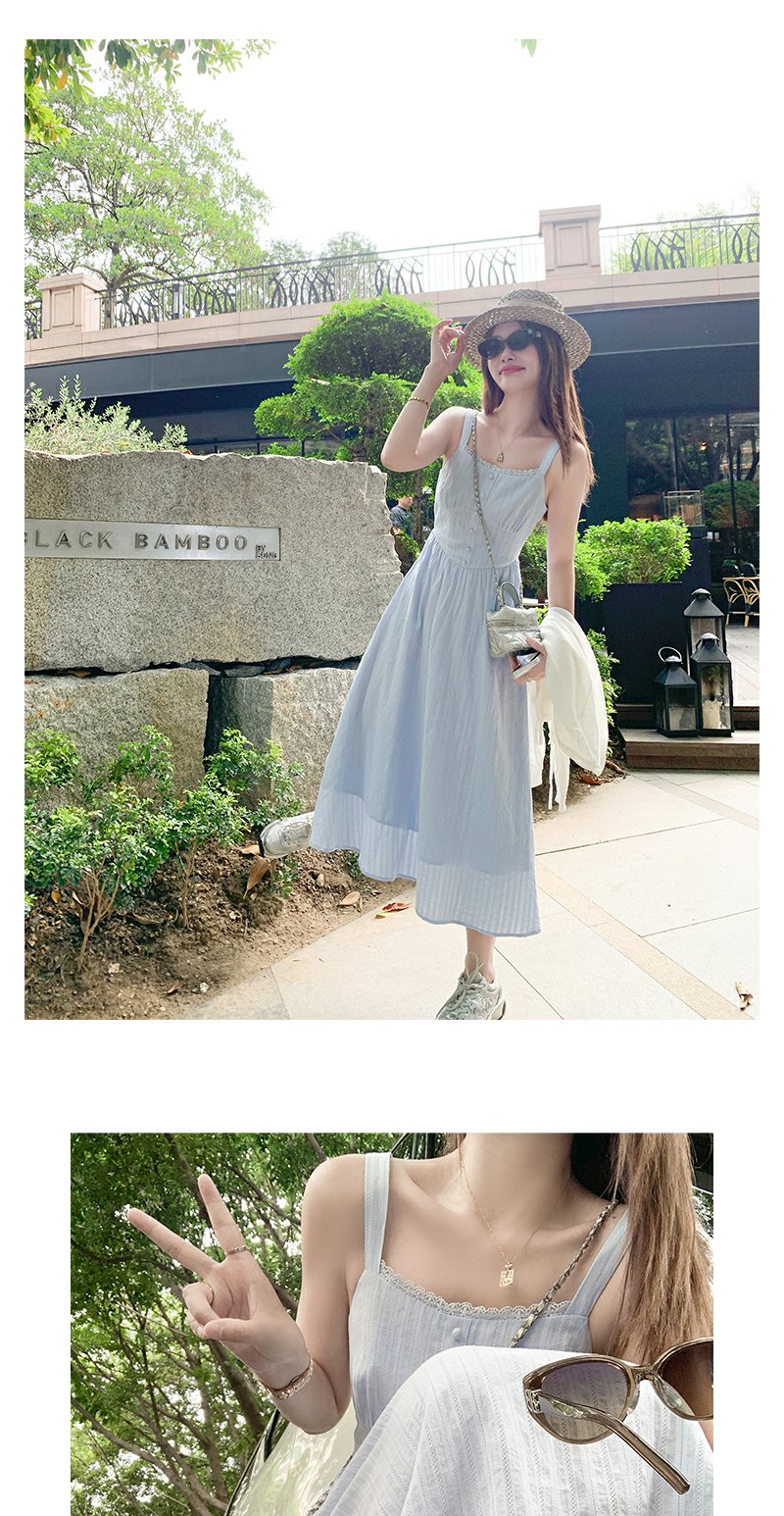 <曾小咸推荐>法式气质浅蓝色收腰显瘦吊带连衣裙