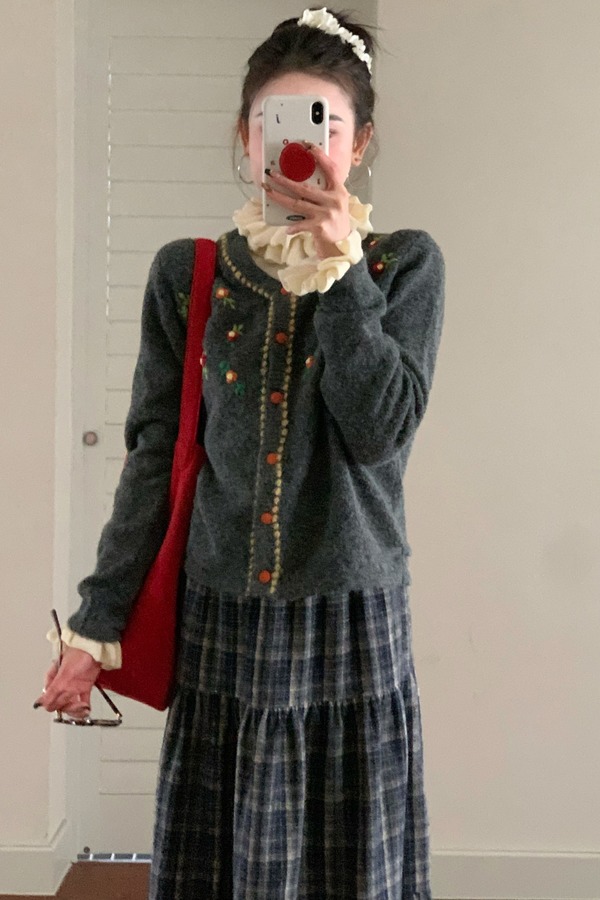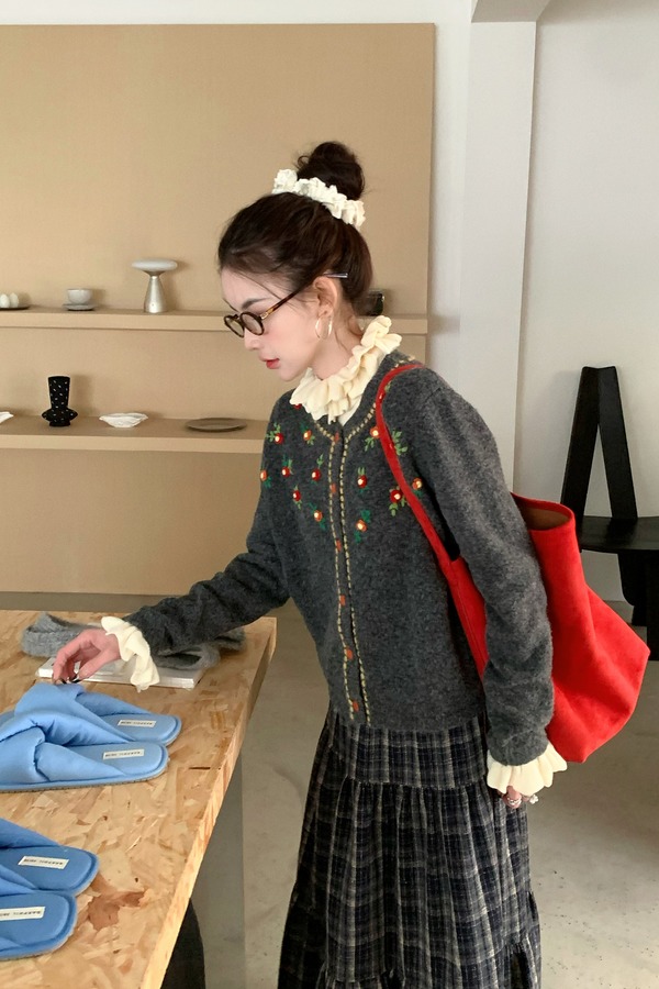ANSUABEL 重工立体花朵软糯休闲针织开衫 21942
